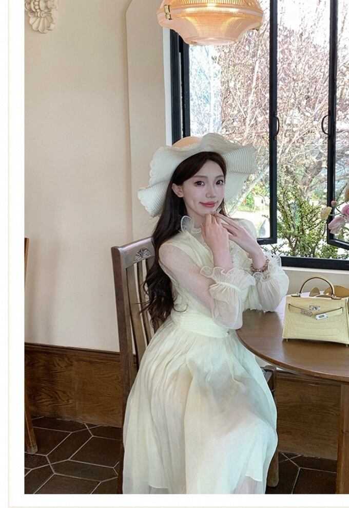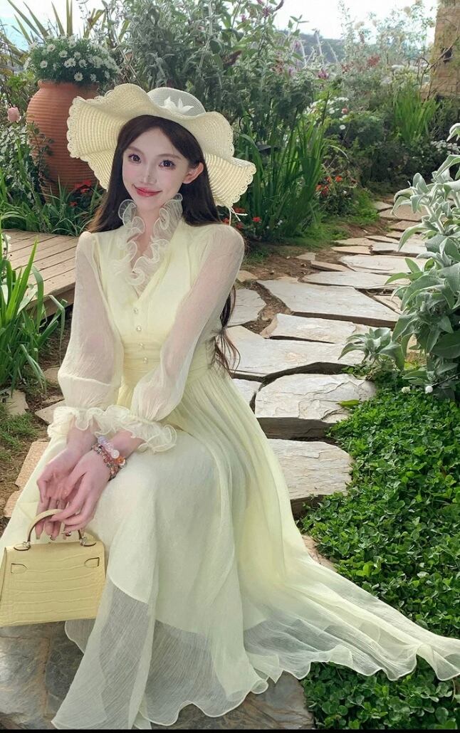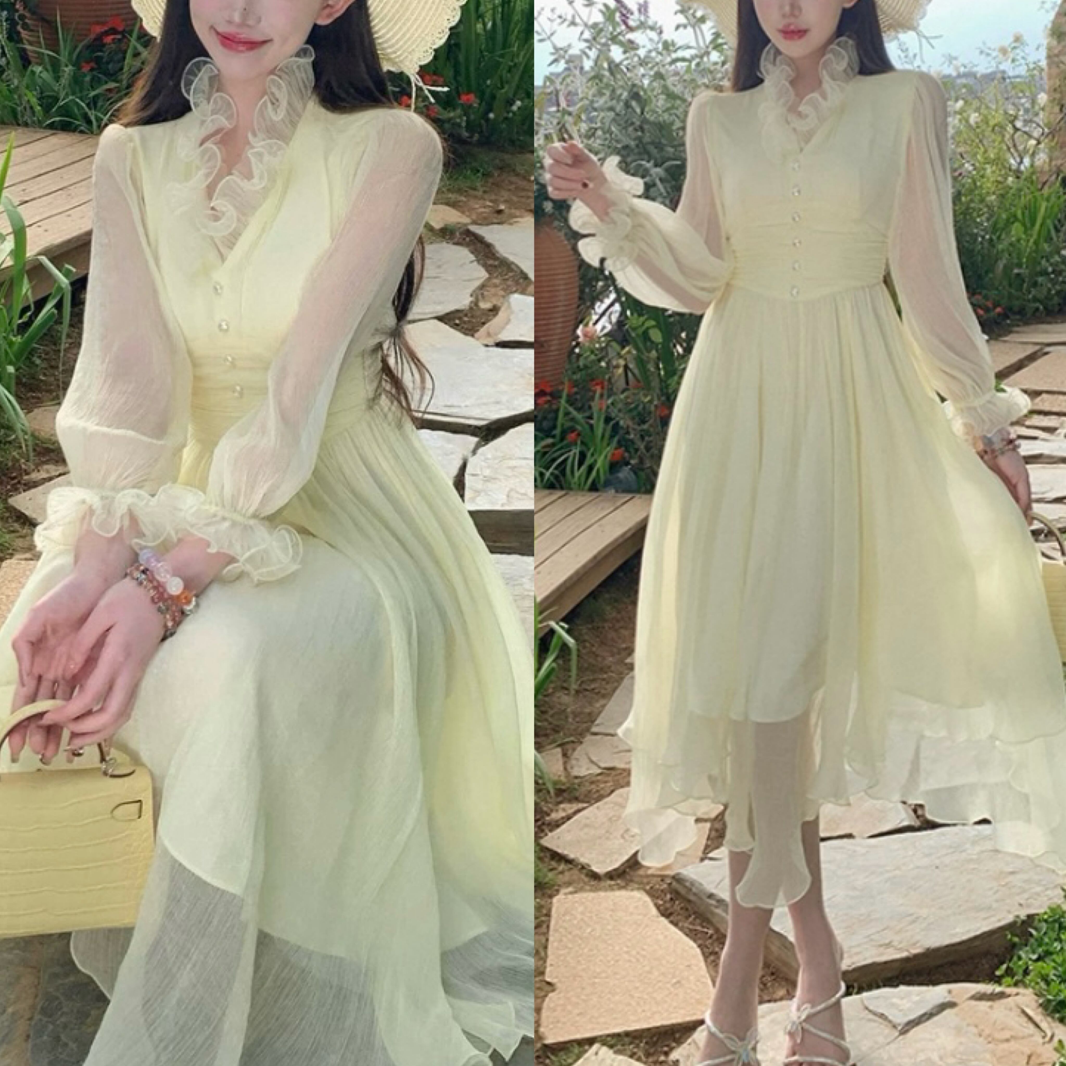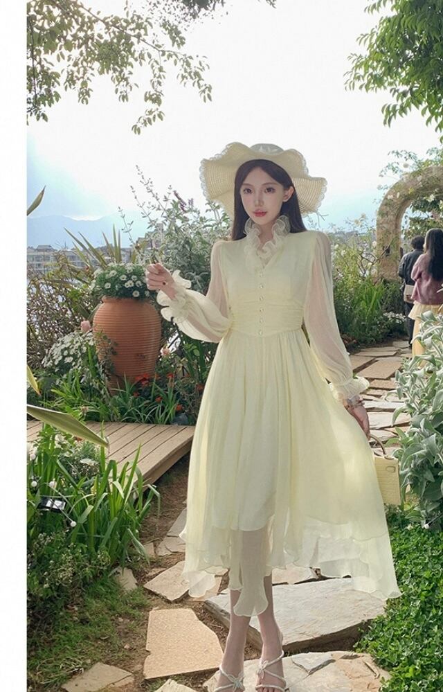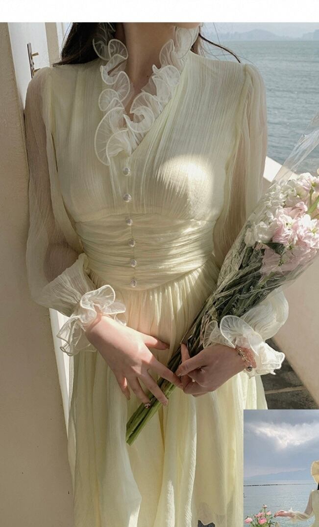 黄色 フリル ワンピース ガーリー、XS かわいい