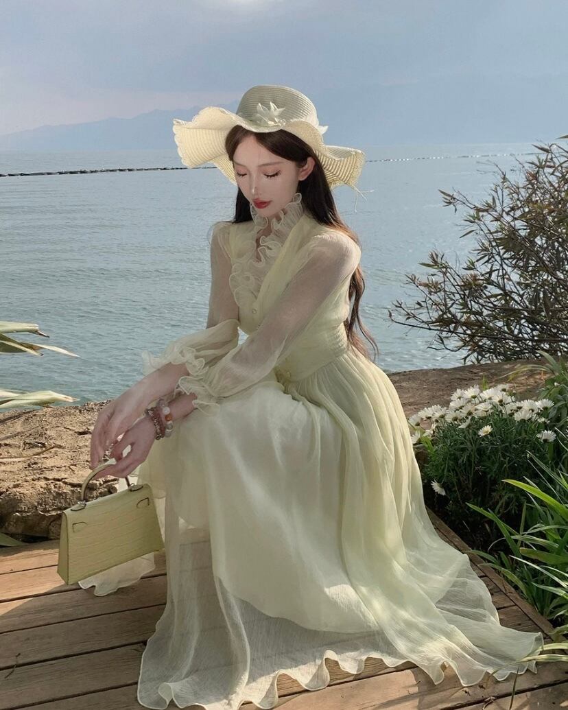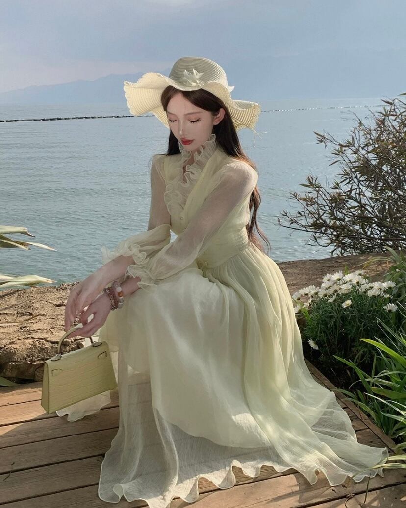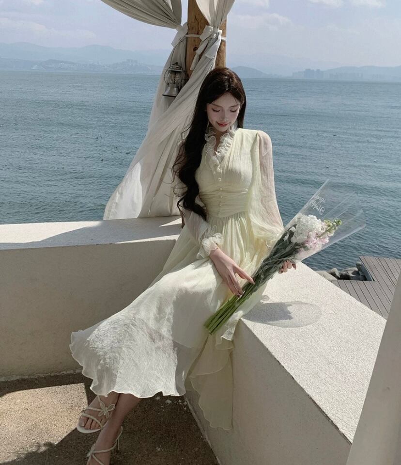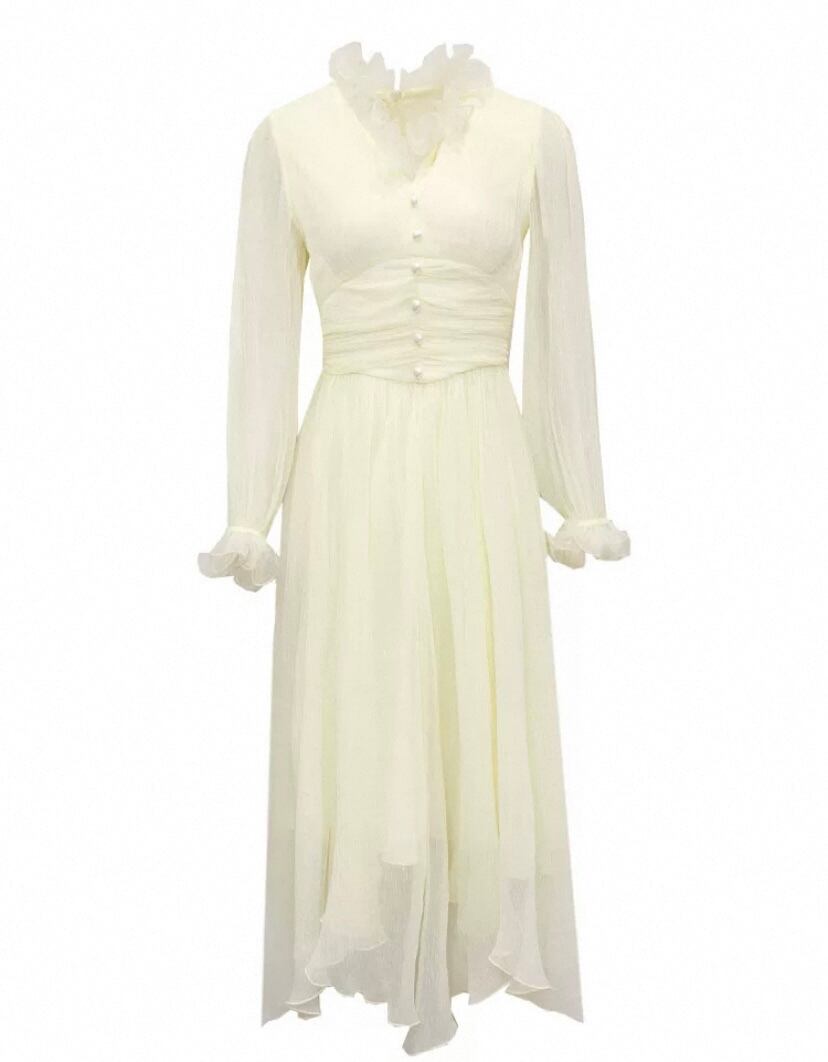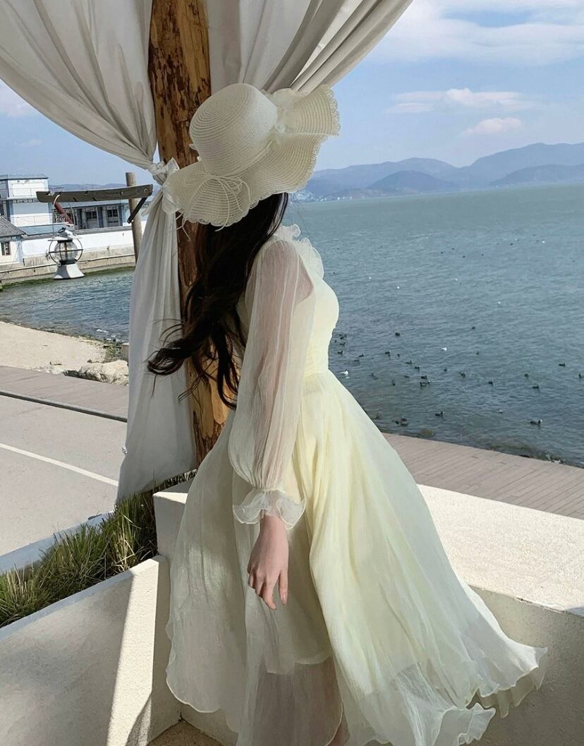 黄色 フリル ワンピース ガーリー、XS かわいい