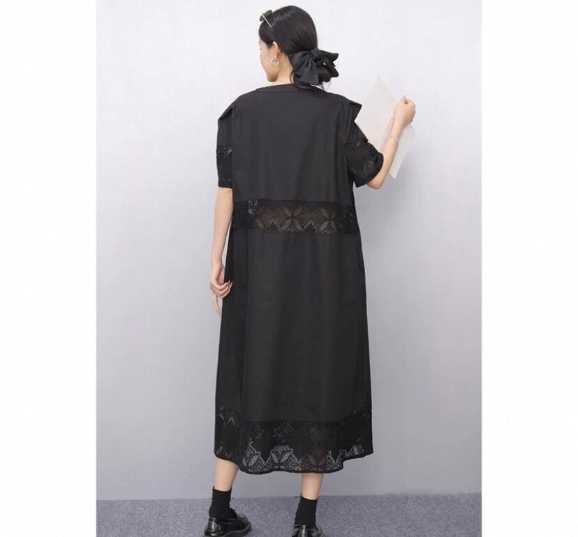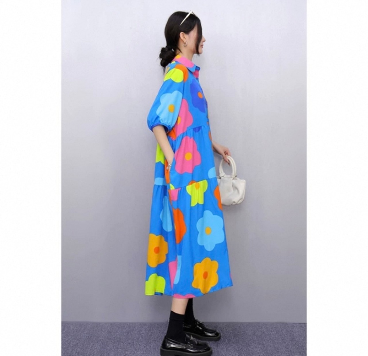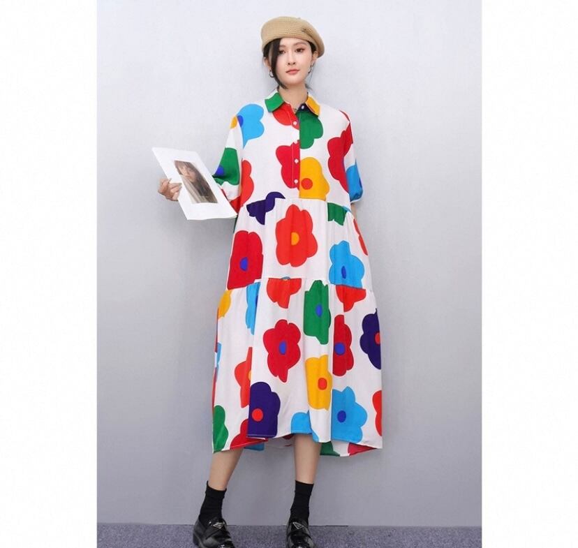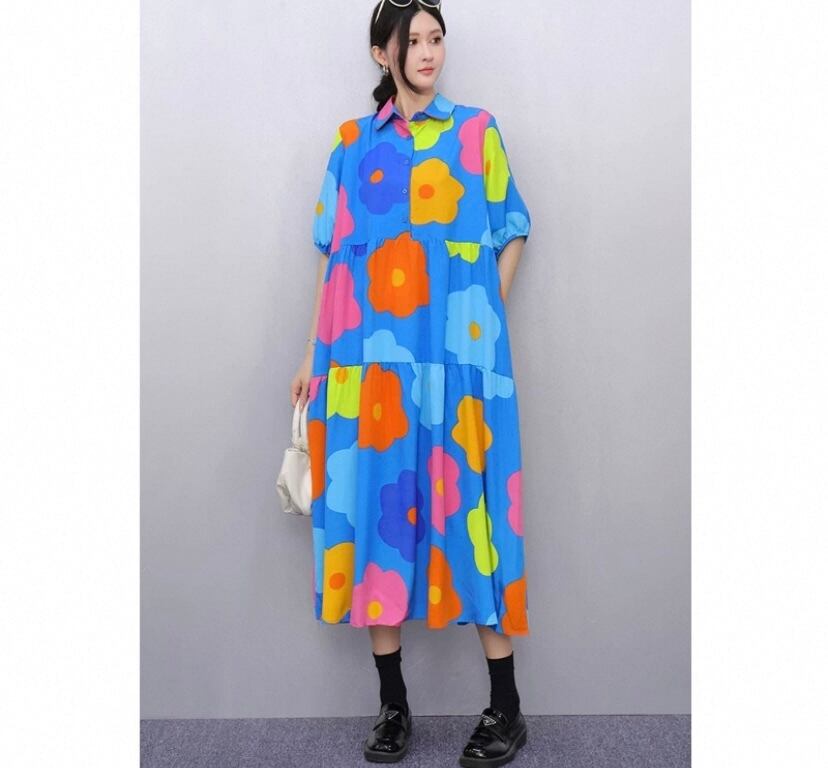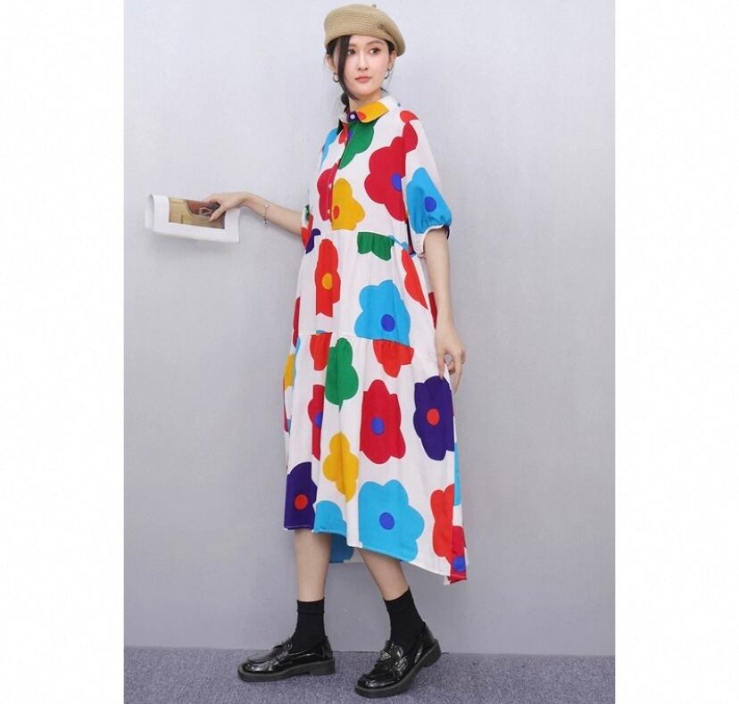 カラフル 白 水色、黒 ワンピース、ゆったり シャツ ブラウス