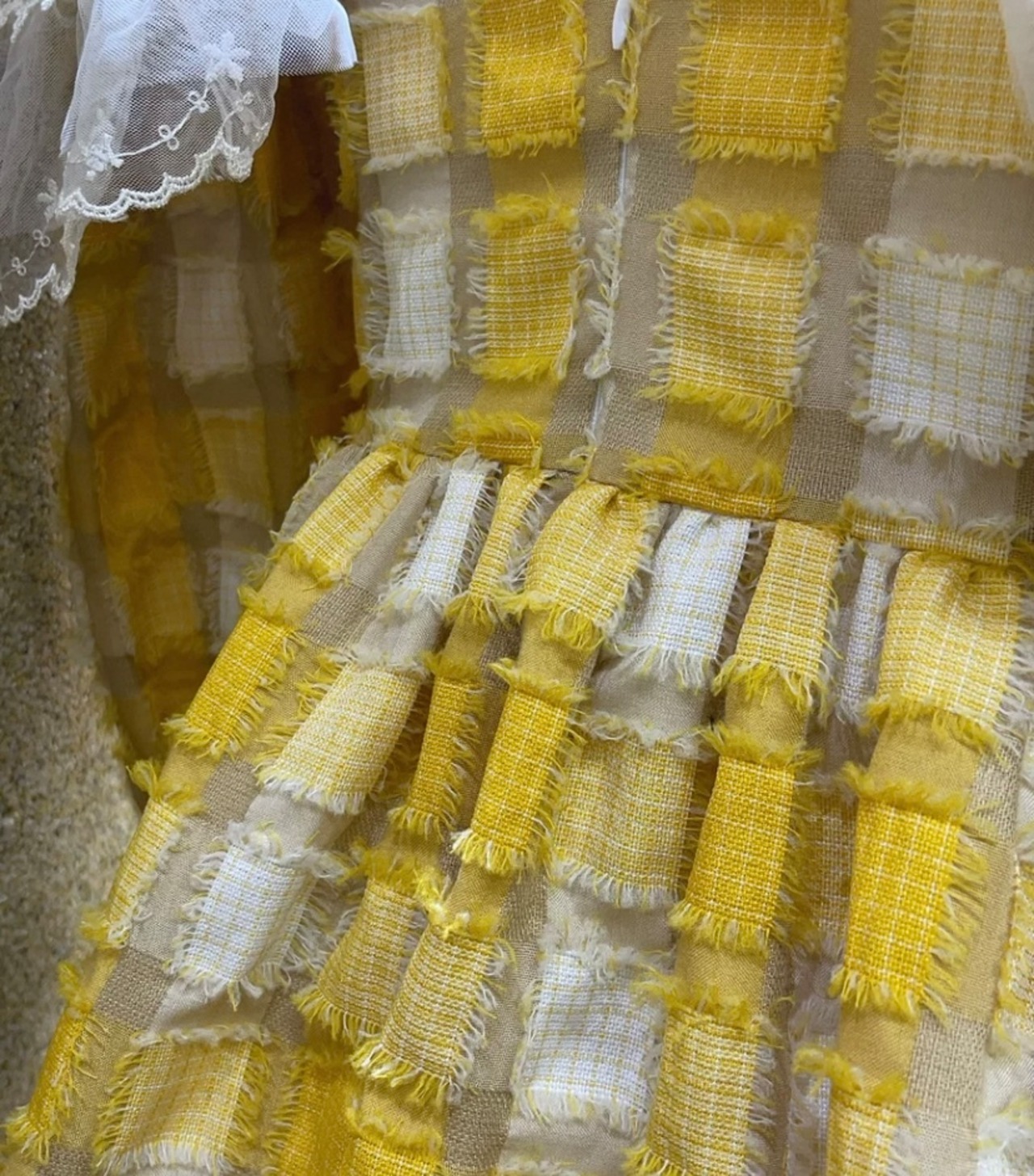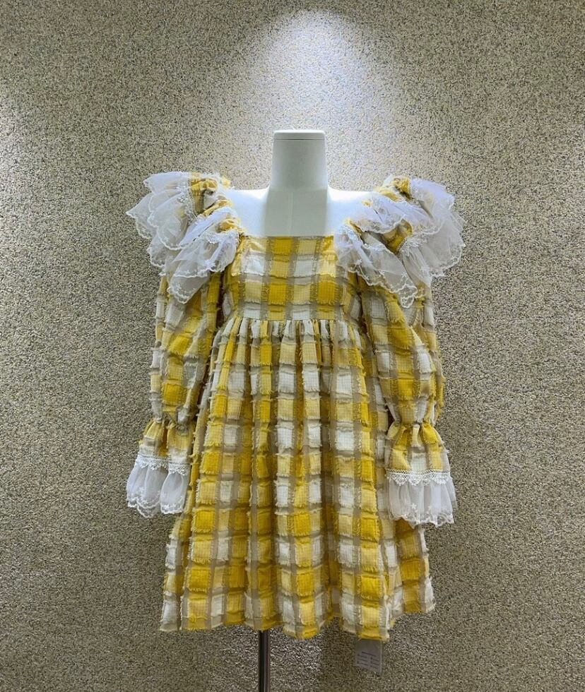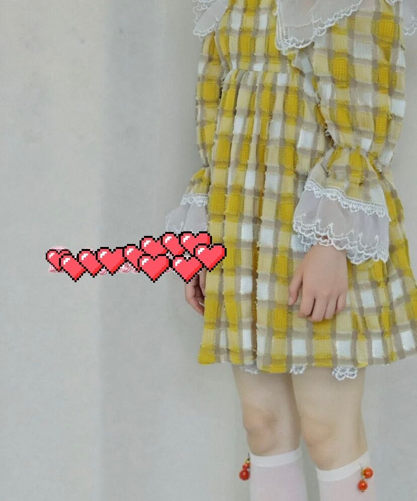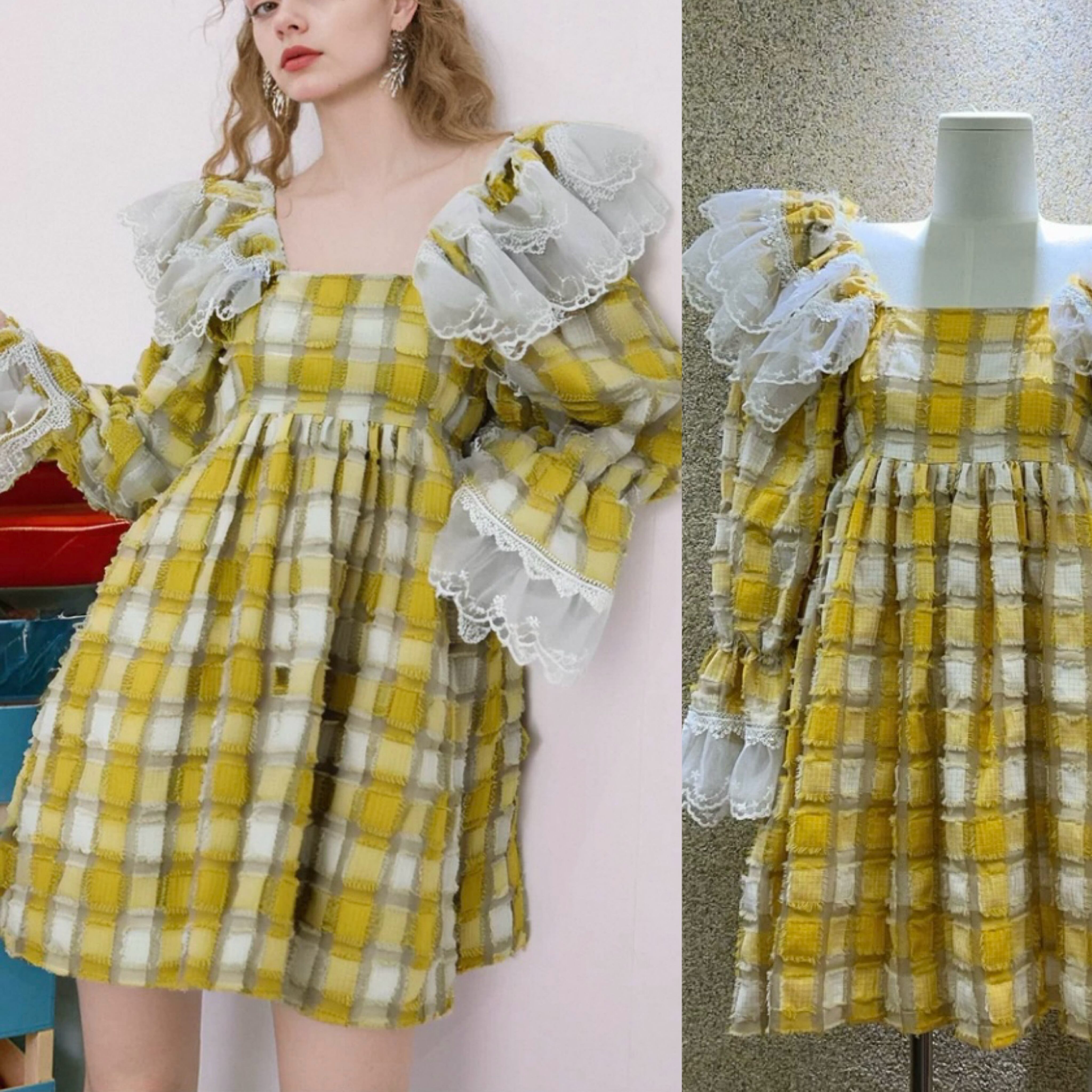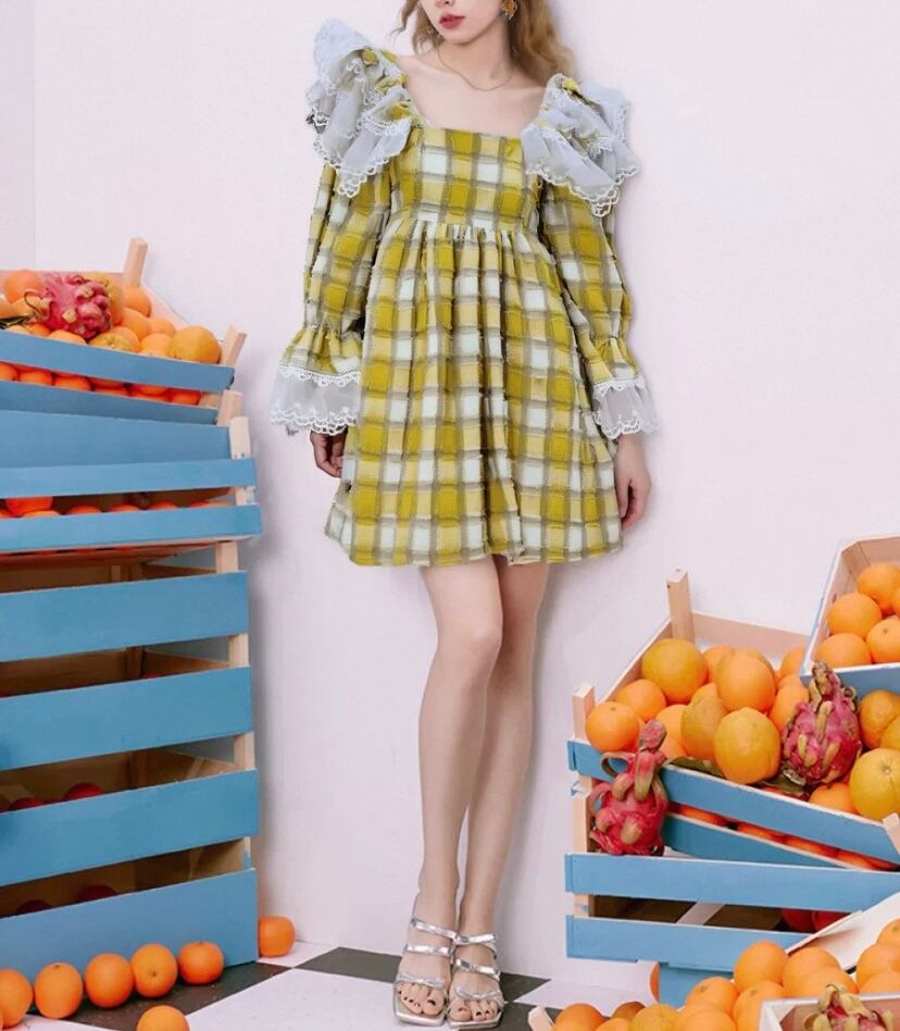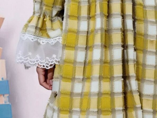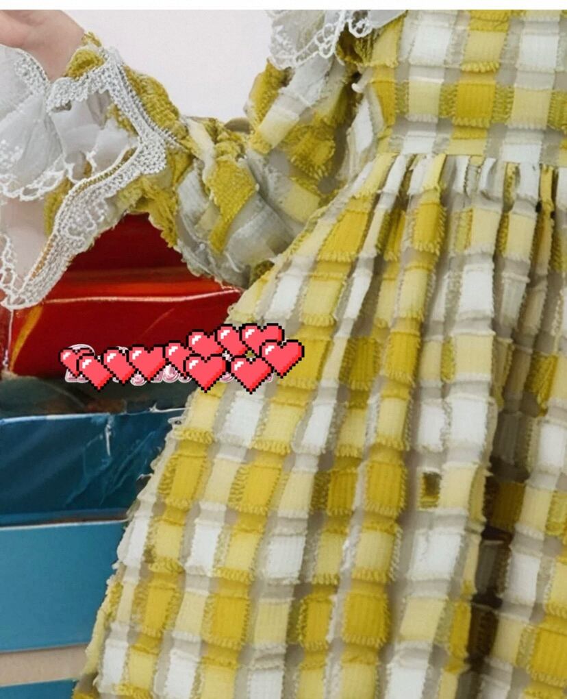 黄色 チェック フリル ブラウス、トップス ワンピース かわいい