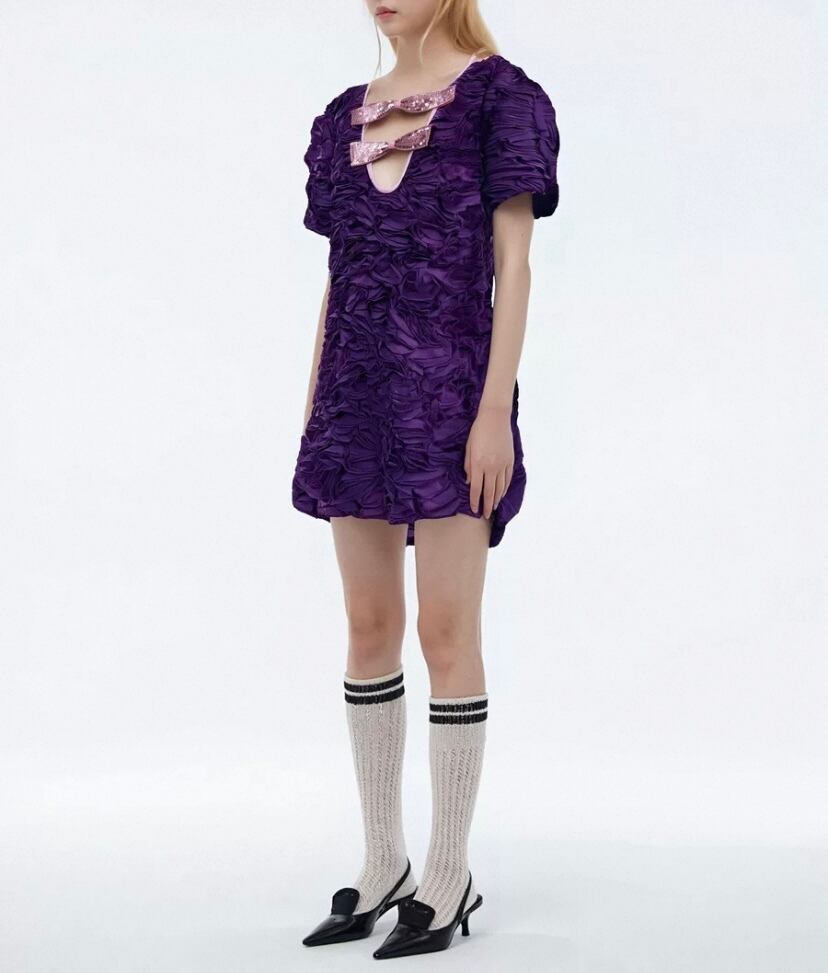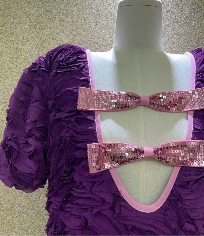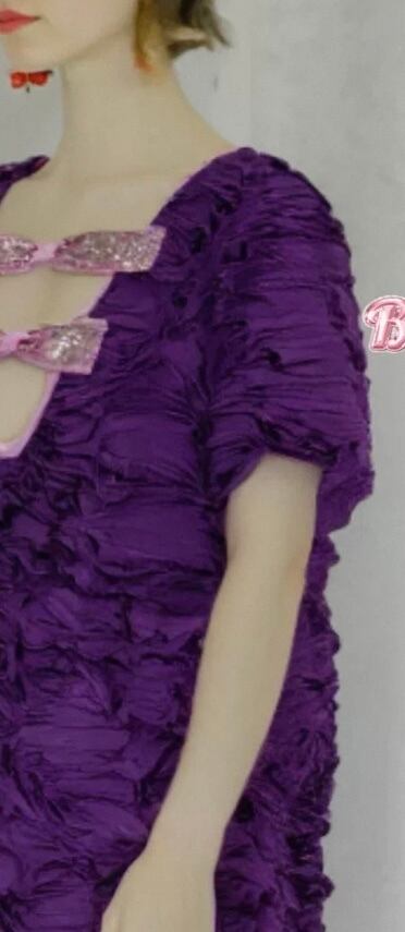 紫 花柄、リボン ピンク ワンピース チュニック ブラウス