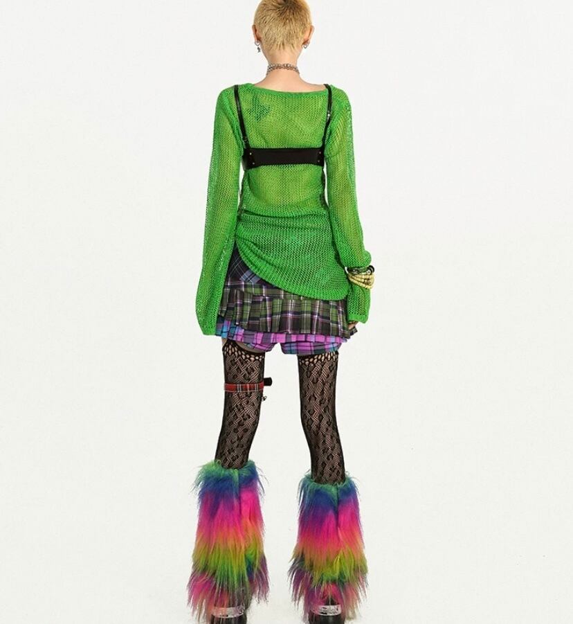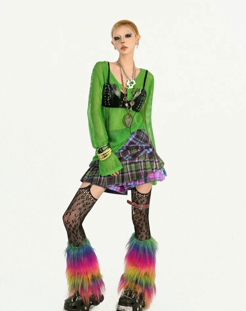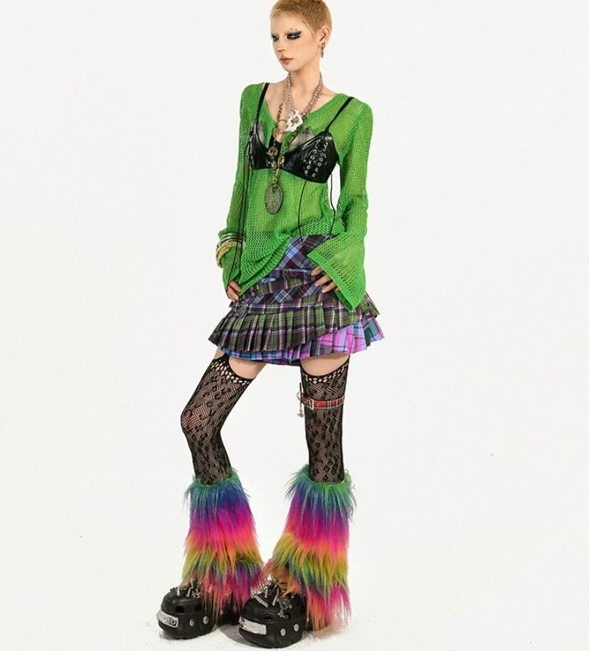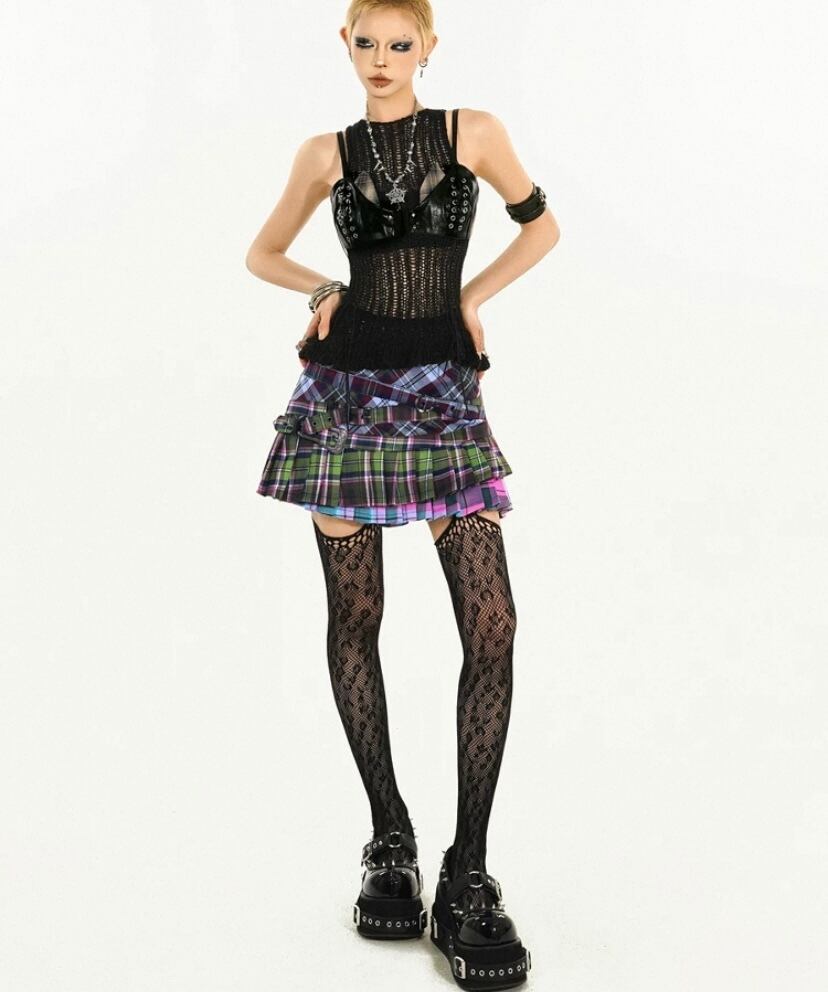 ミニスカート ボトムス、プリーツスカート、紫 緑 黒 チェック