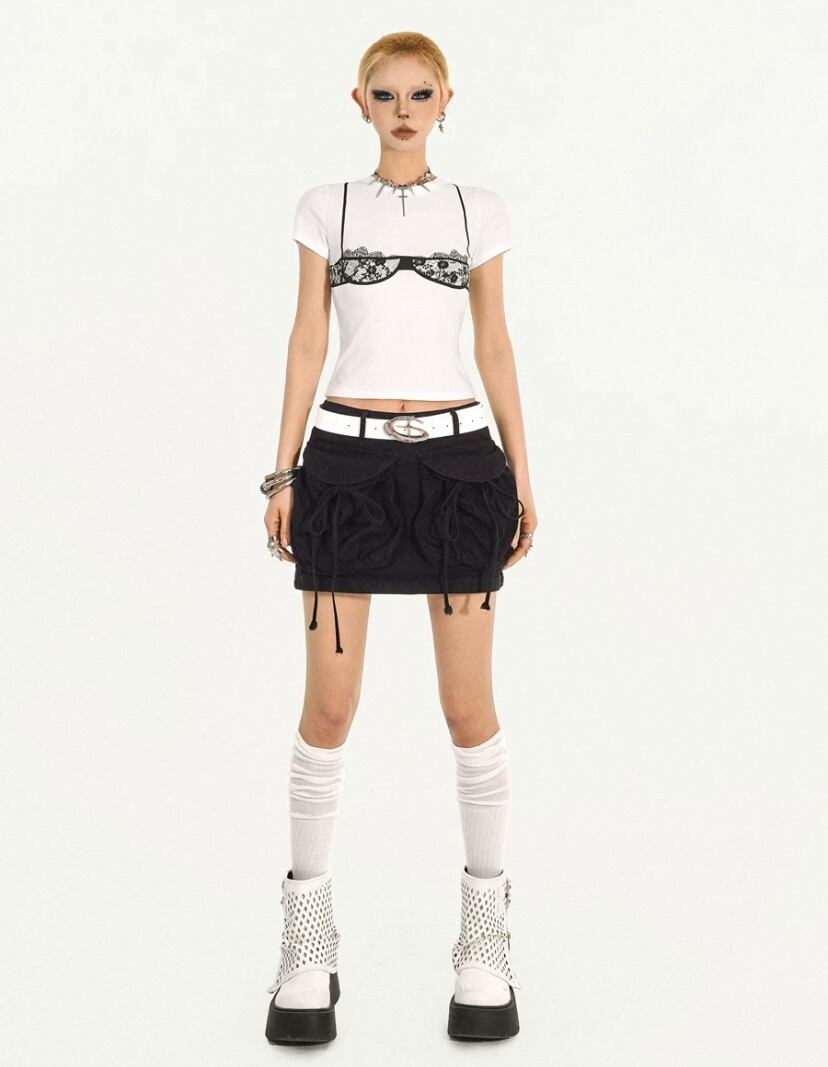 トップス 白 原宿 Tシャツ、だまし絵 Y2K
