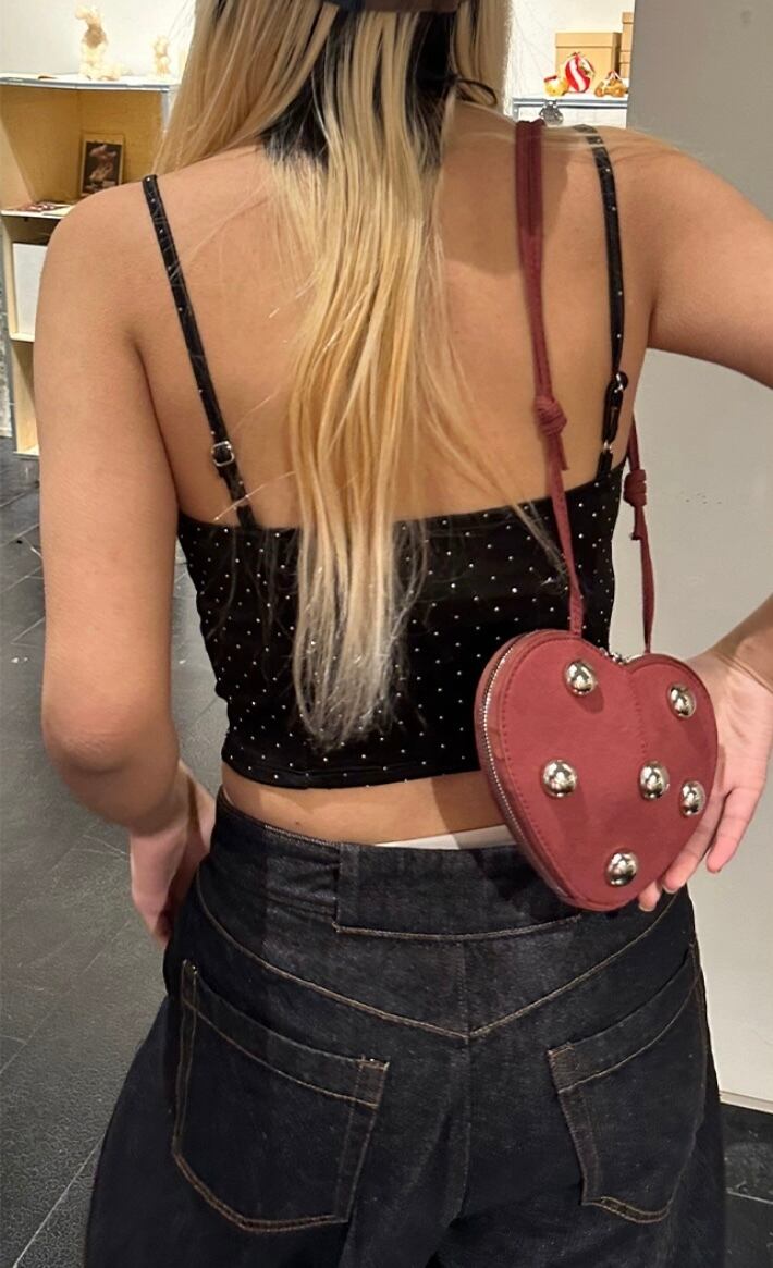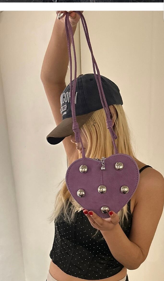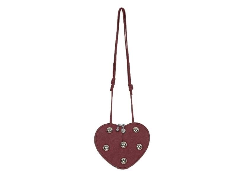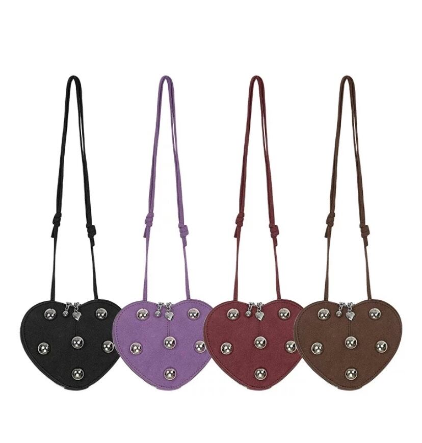 ショルダー バックハート ミニバック、紫 赤 黒 茶色