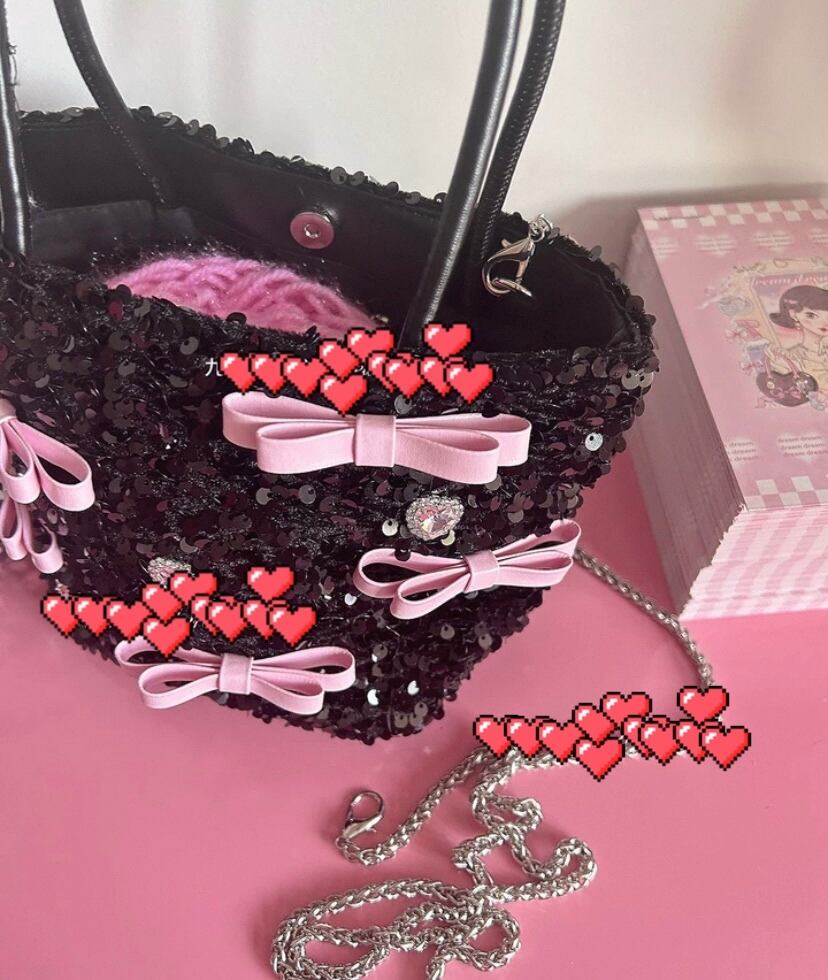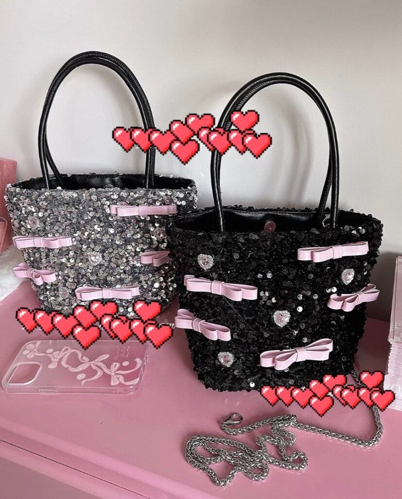 シルバー、黒 ピンク、キラキラ バック カバン
