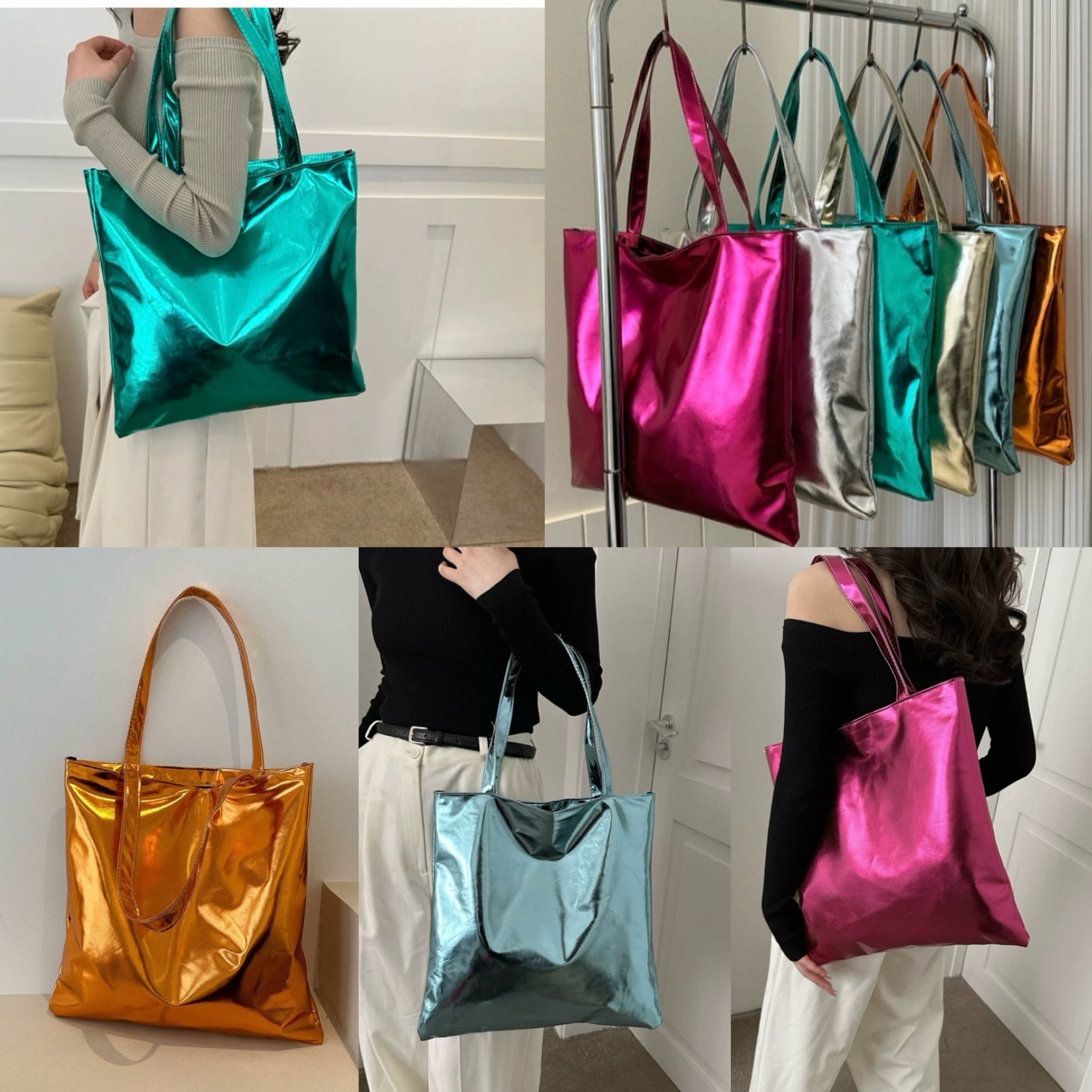 みどり、シルバー、金色 ピンク、水色 オレンジ、トートバック ミラーカラー