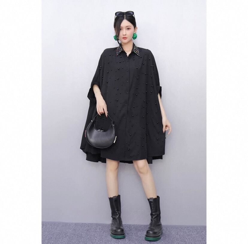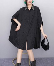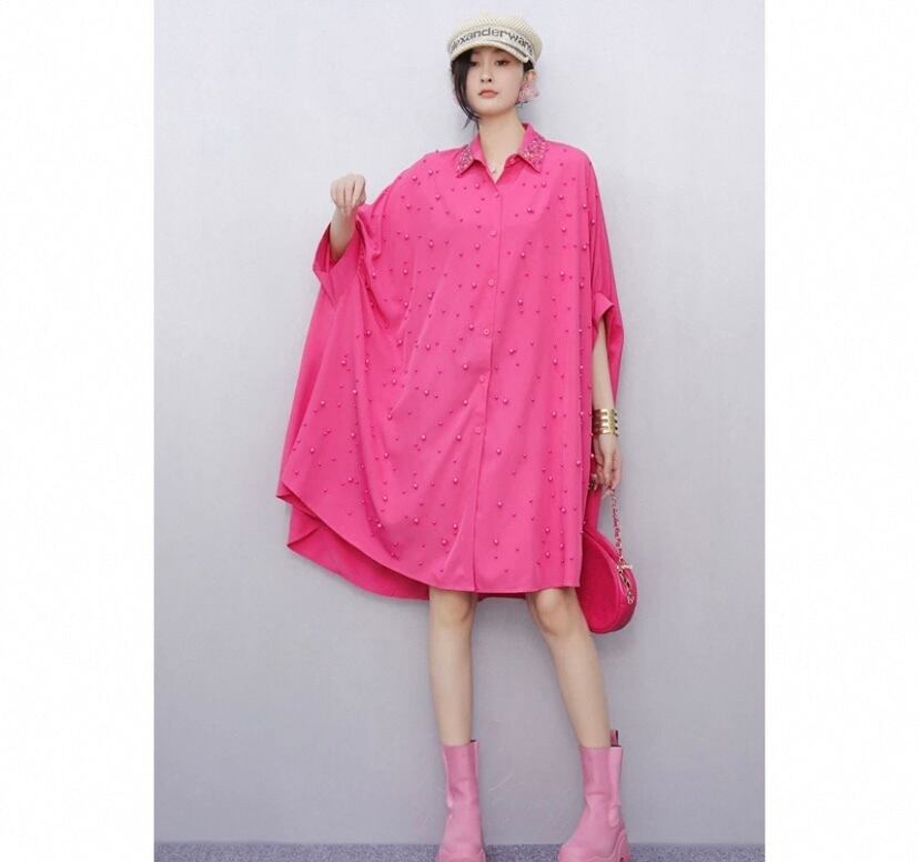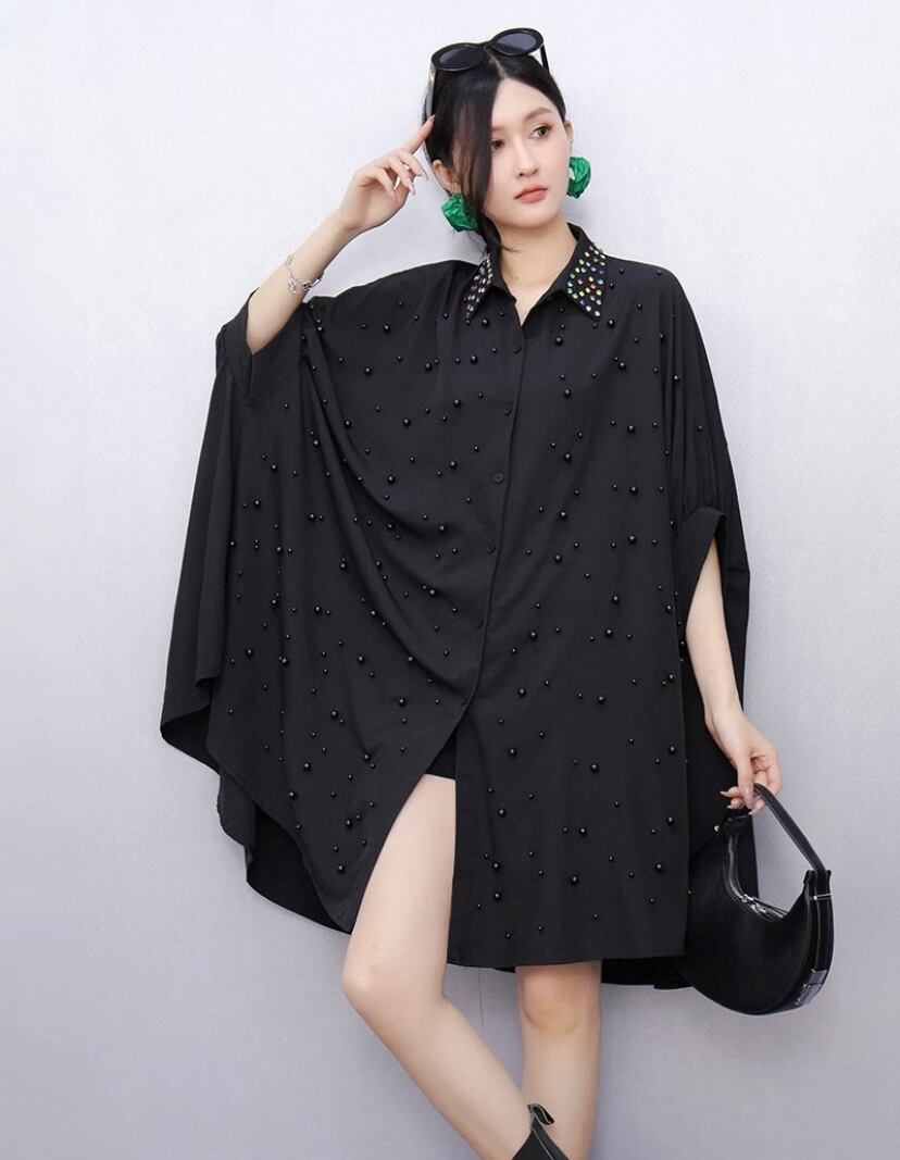 黒 ゆったり、デコレーション ピンク シャツ、ブラウス、オーバーサイズ