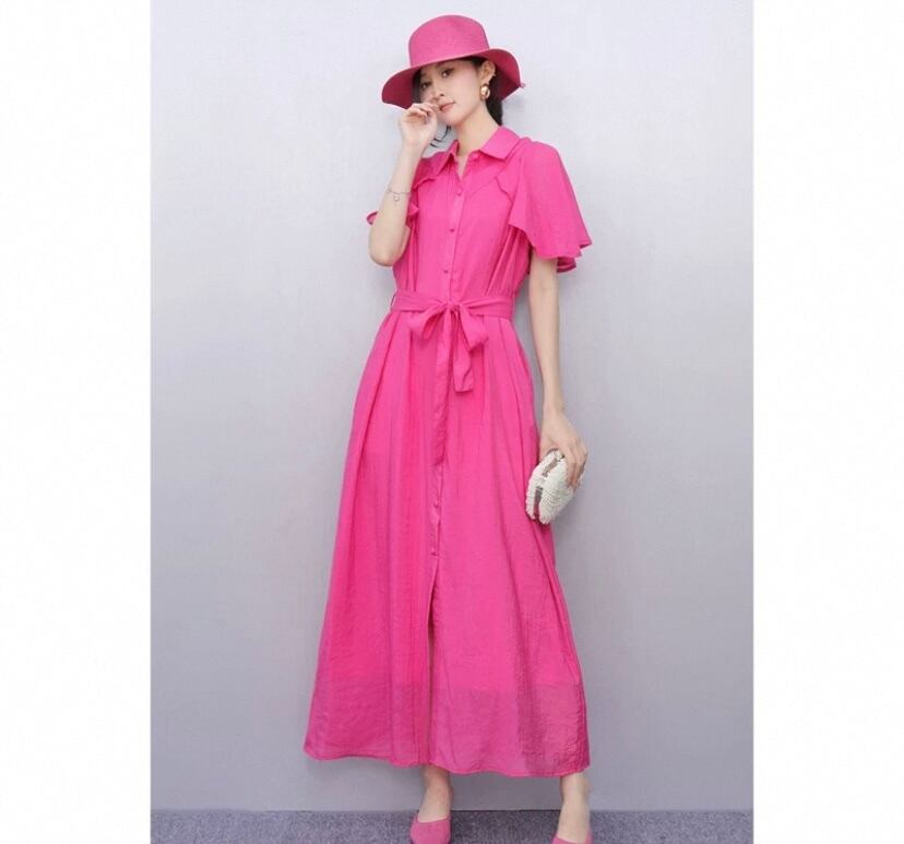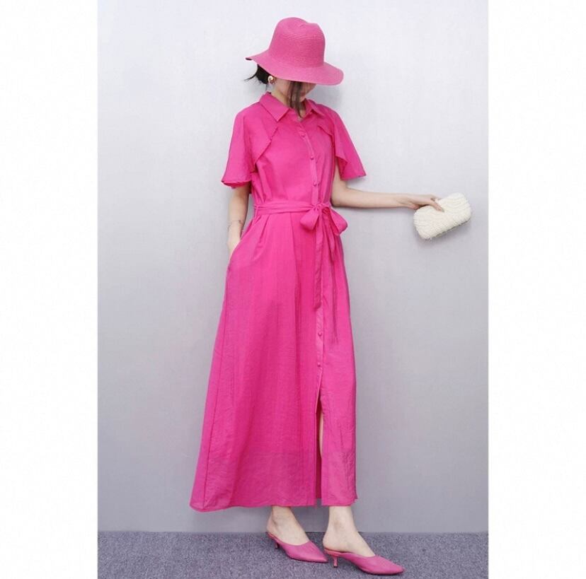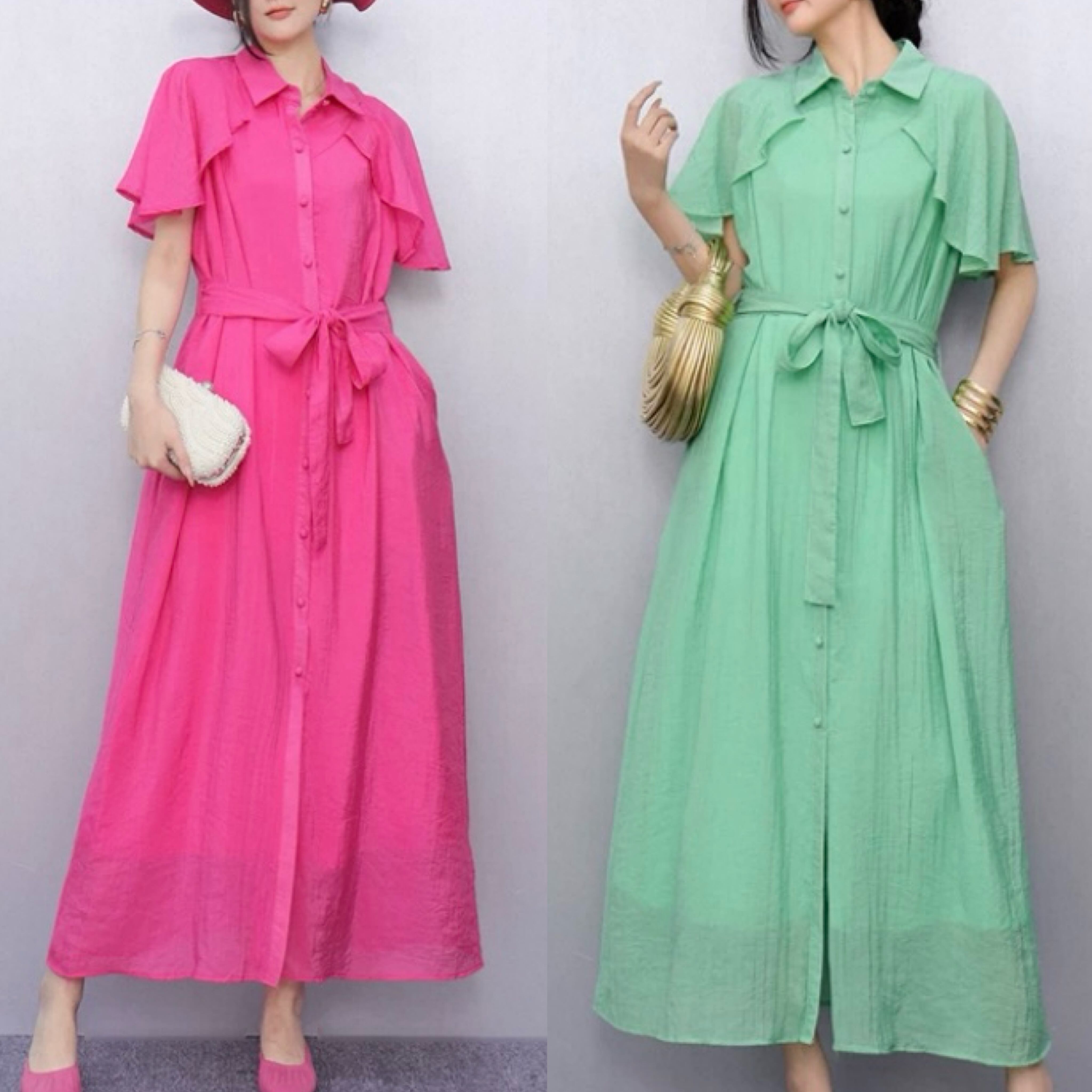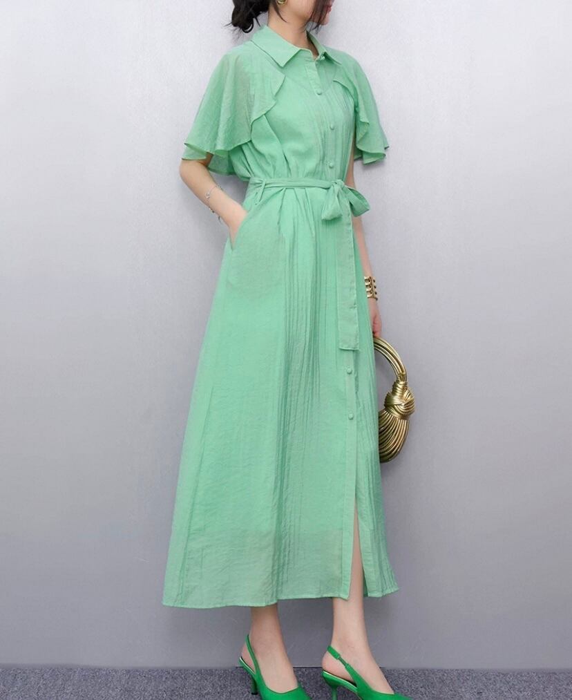 緑、ピンク、カジュアル、シンプル ワンピース ブラウス
