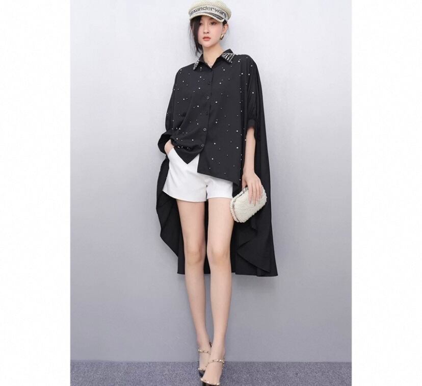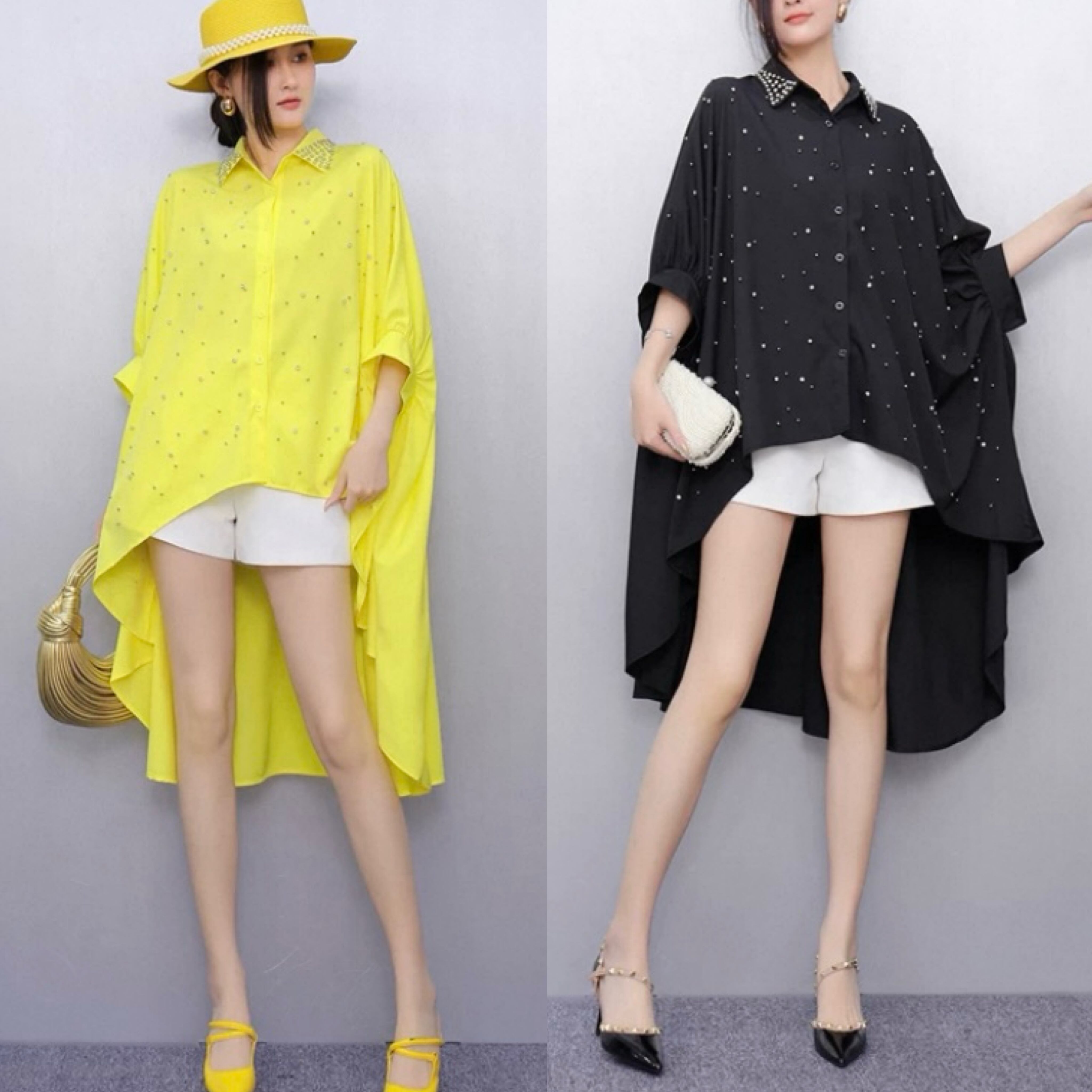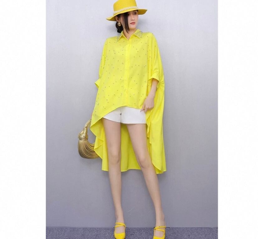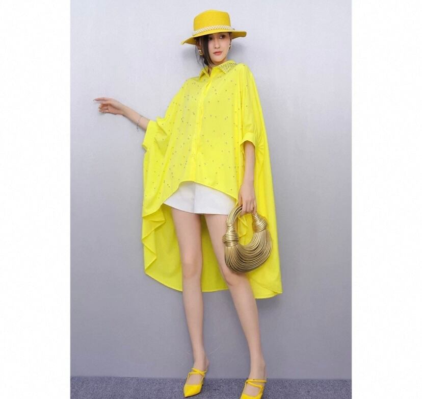 黄色 黒 シャツ、ブラウス、オーバーサイズ ゆったり