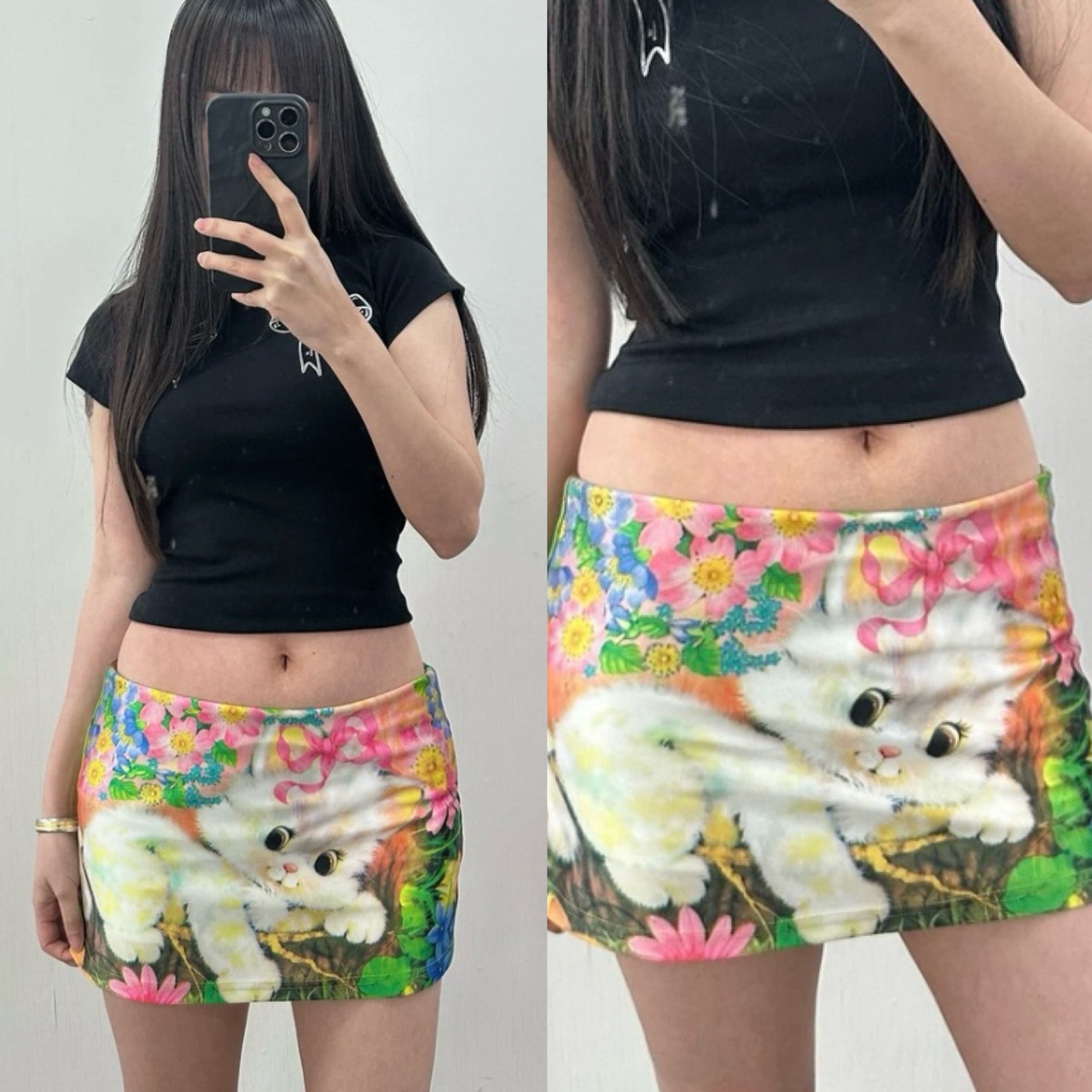 ミニスカート 猫ちゃん、総柄 かわいい ボトムス