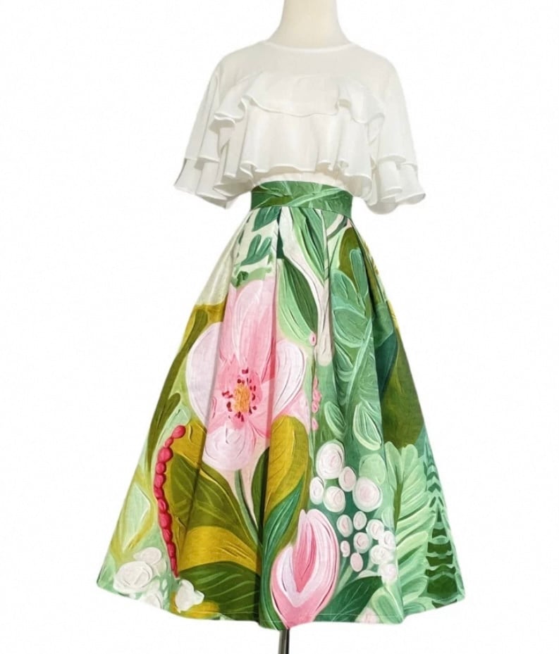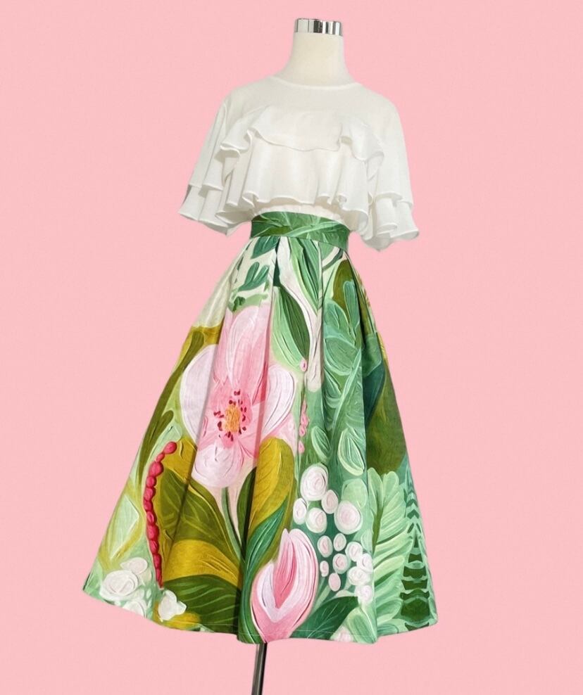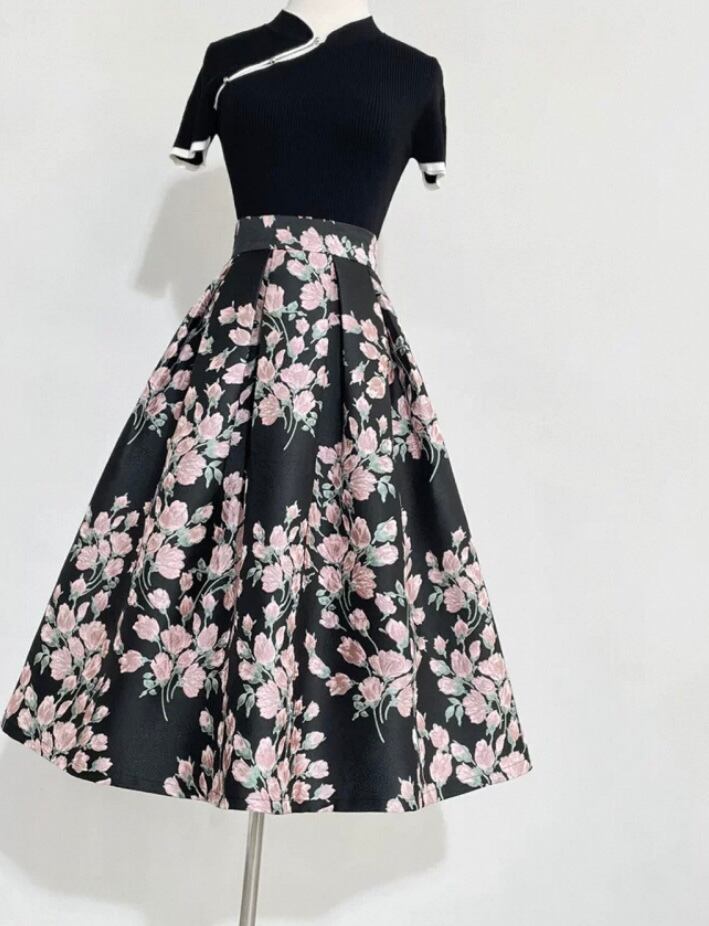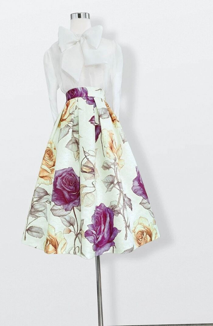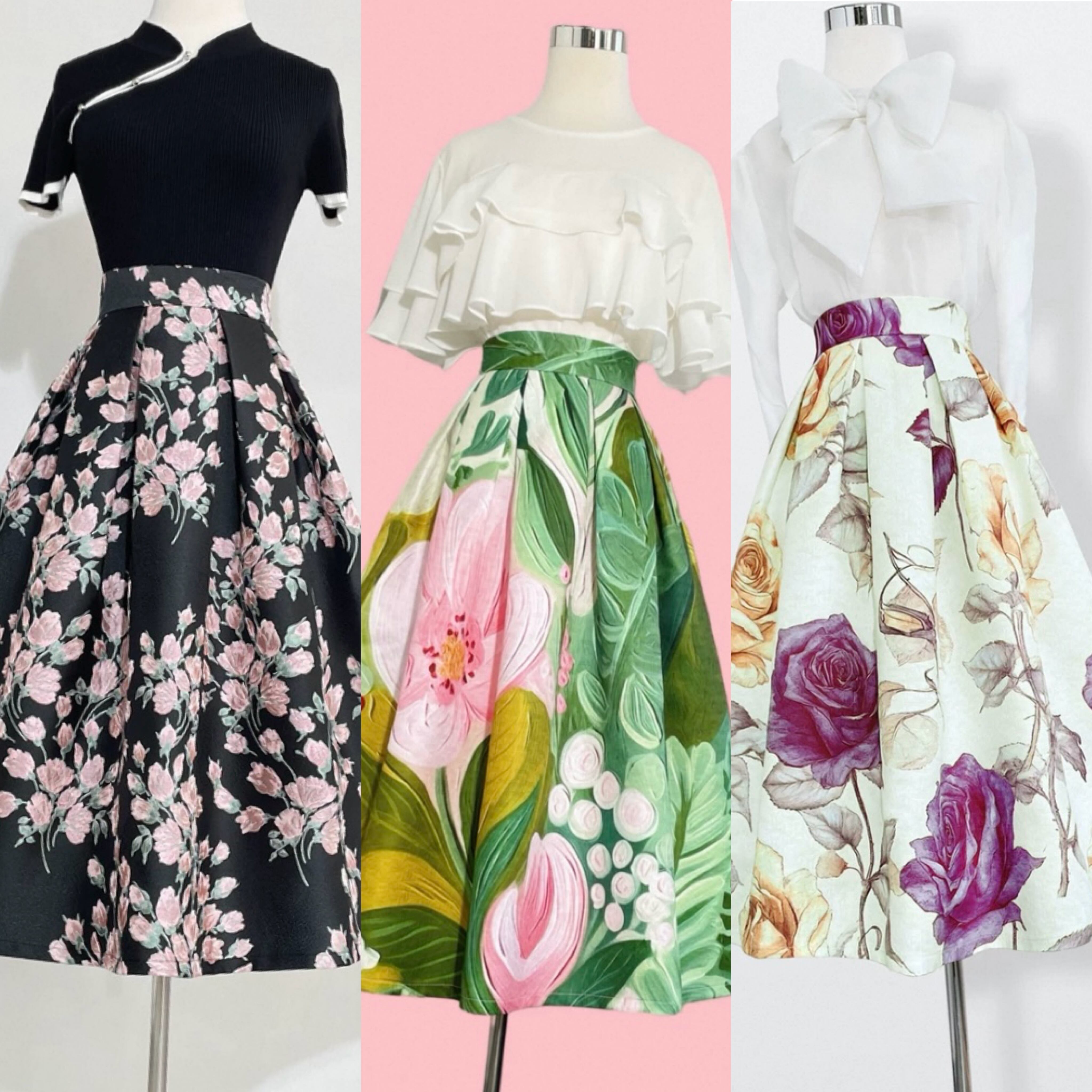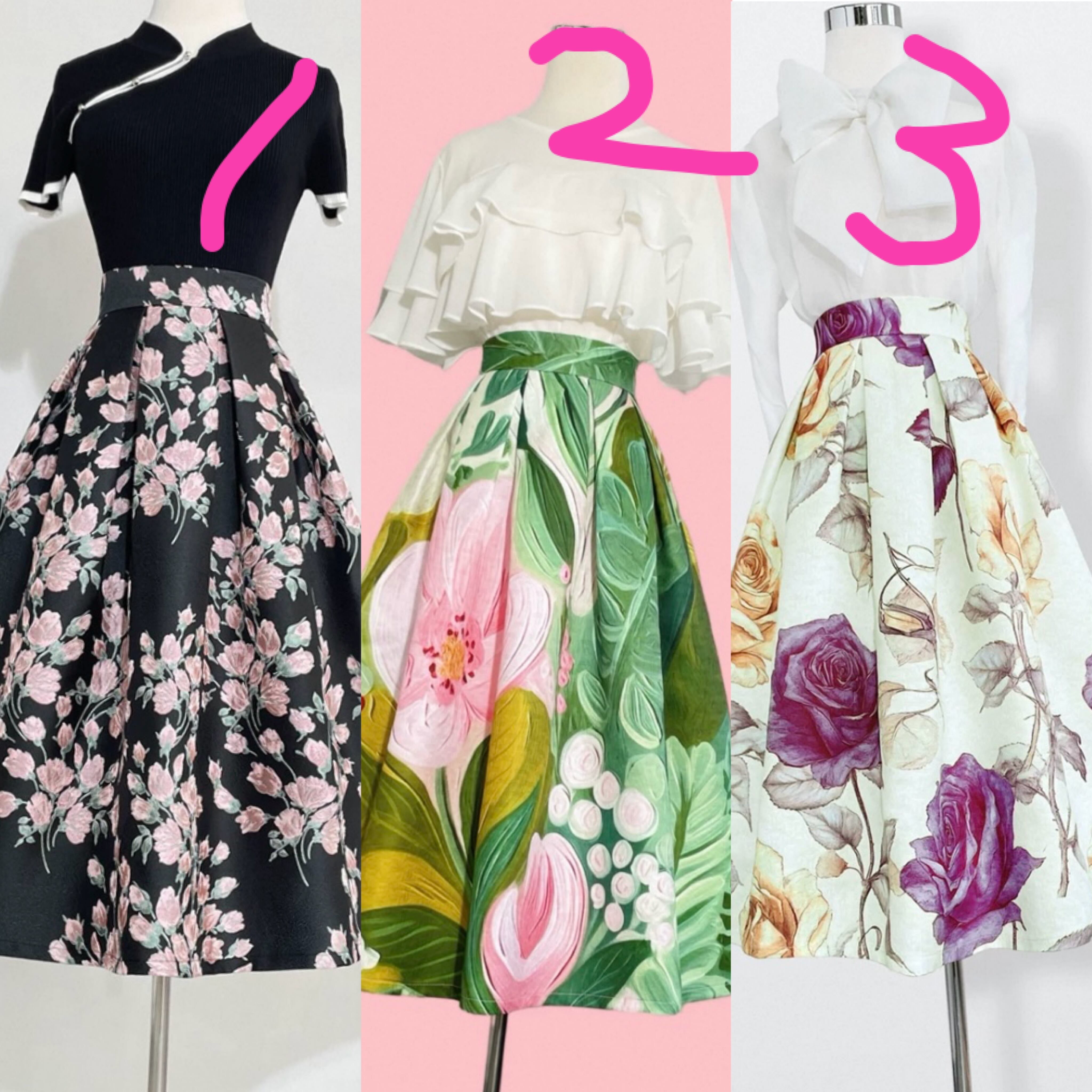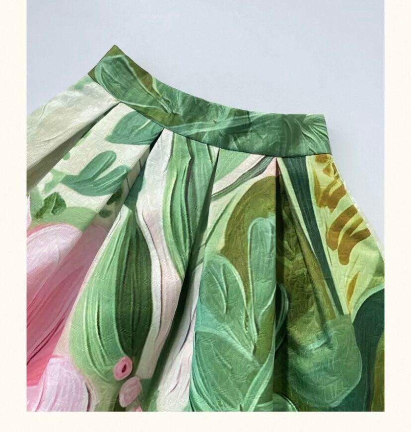 緑 葉っぱ 桜、ピンク、ボトムス スカート 紫