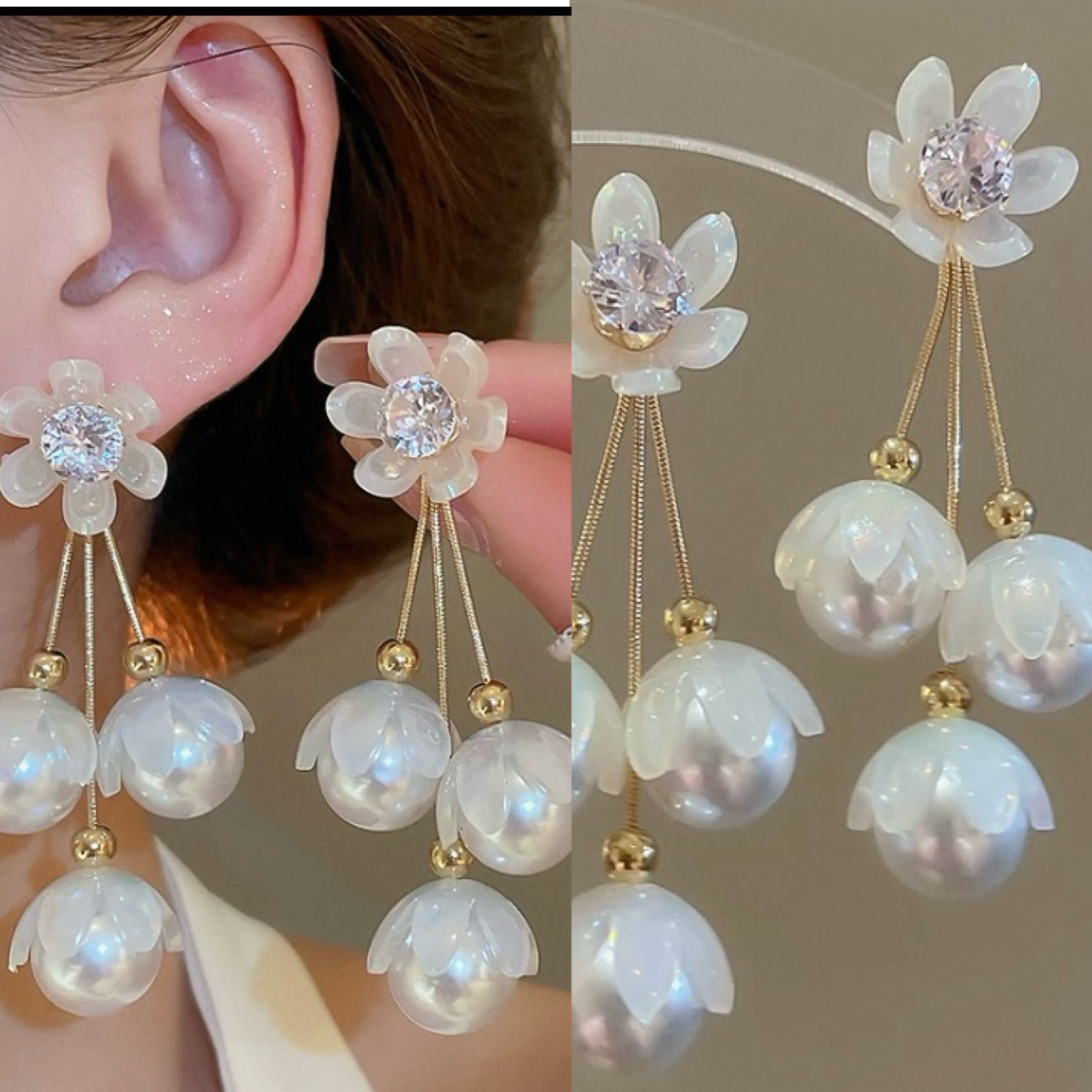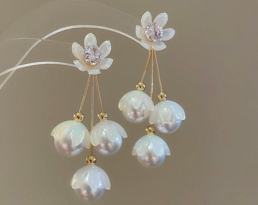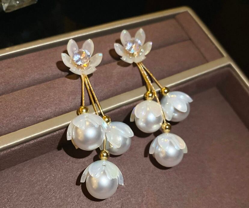ゆらゆら ロング パール ピアス、フラワー かわいい