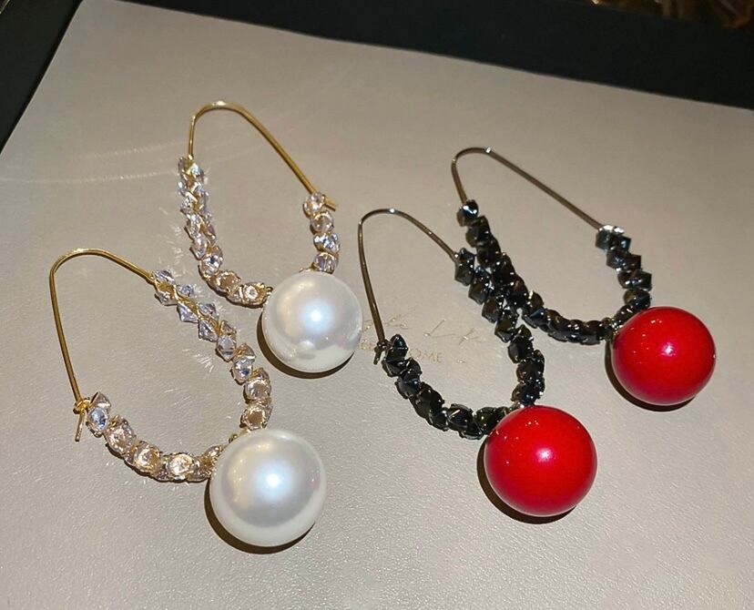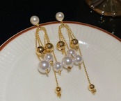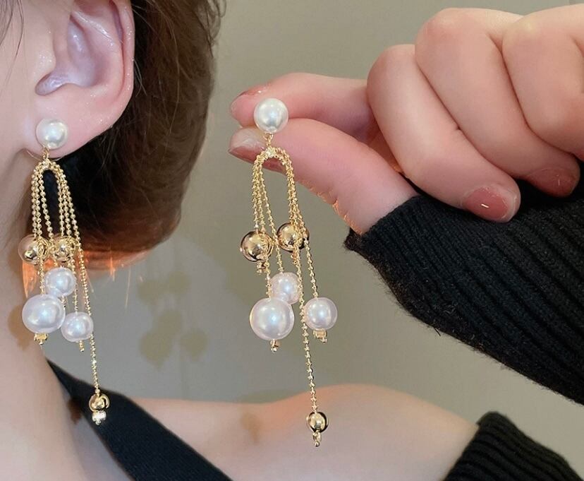 パール ゴールド ゆらゆら ロング クリアストーン ピアス、アクセサリー