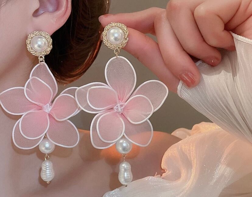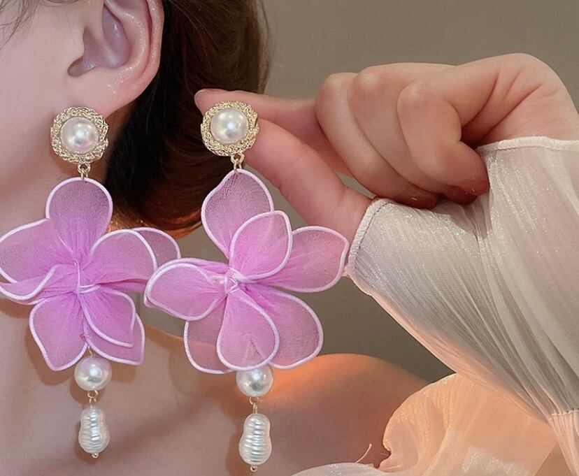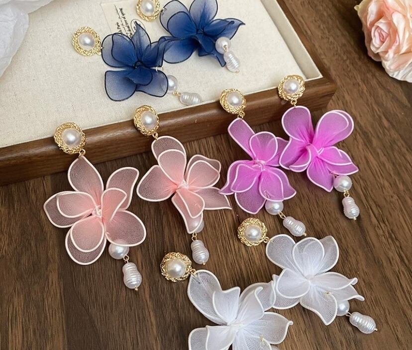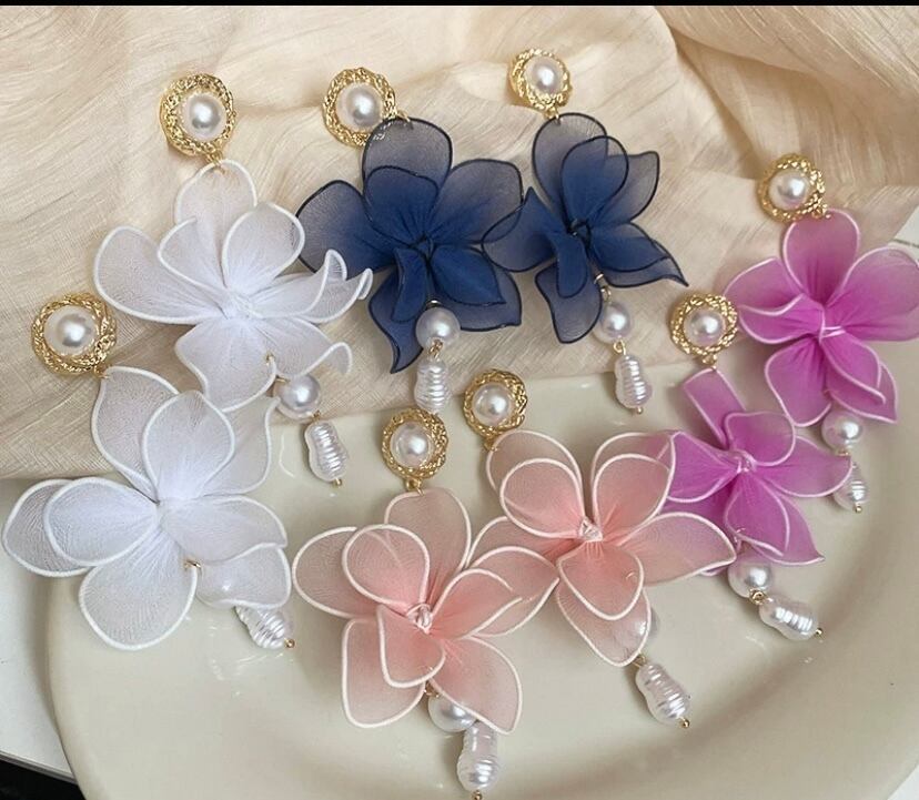 ゆらゆら ピアス、白、ピンク、紫、ネイビー 花