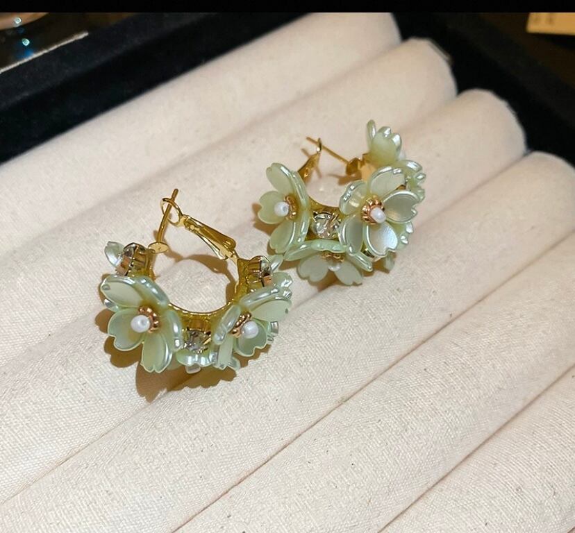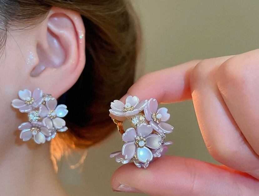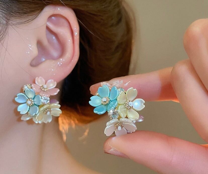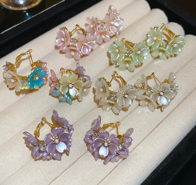 白緑、紫 ピンク、水色 カラフル 黄色 花 桜 ピアス、フープ アクセサリー