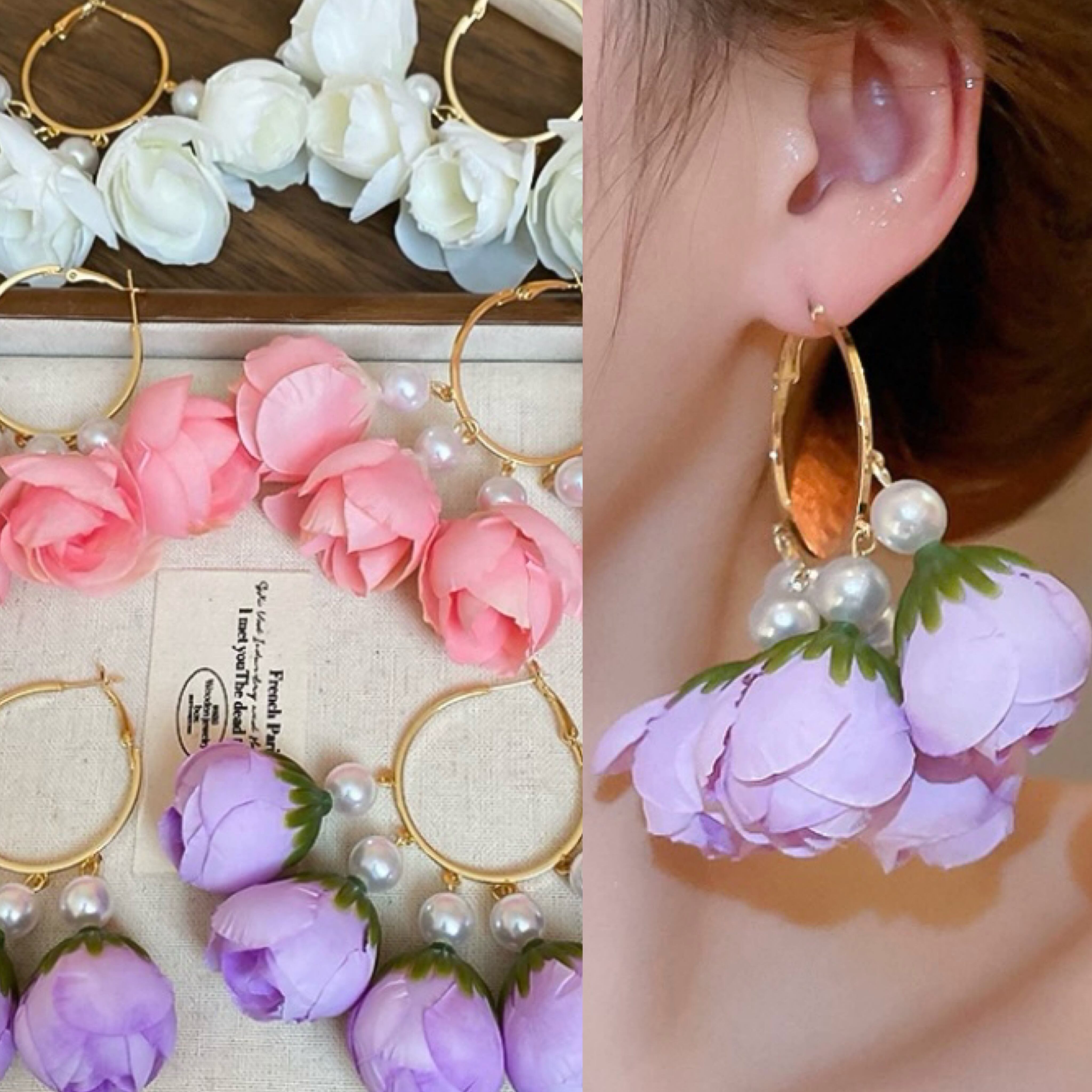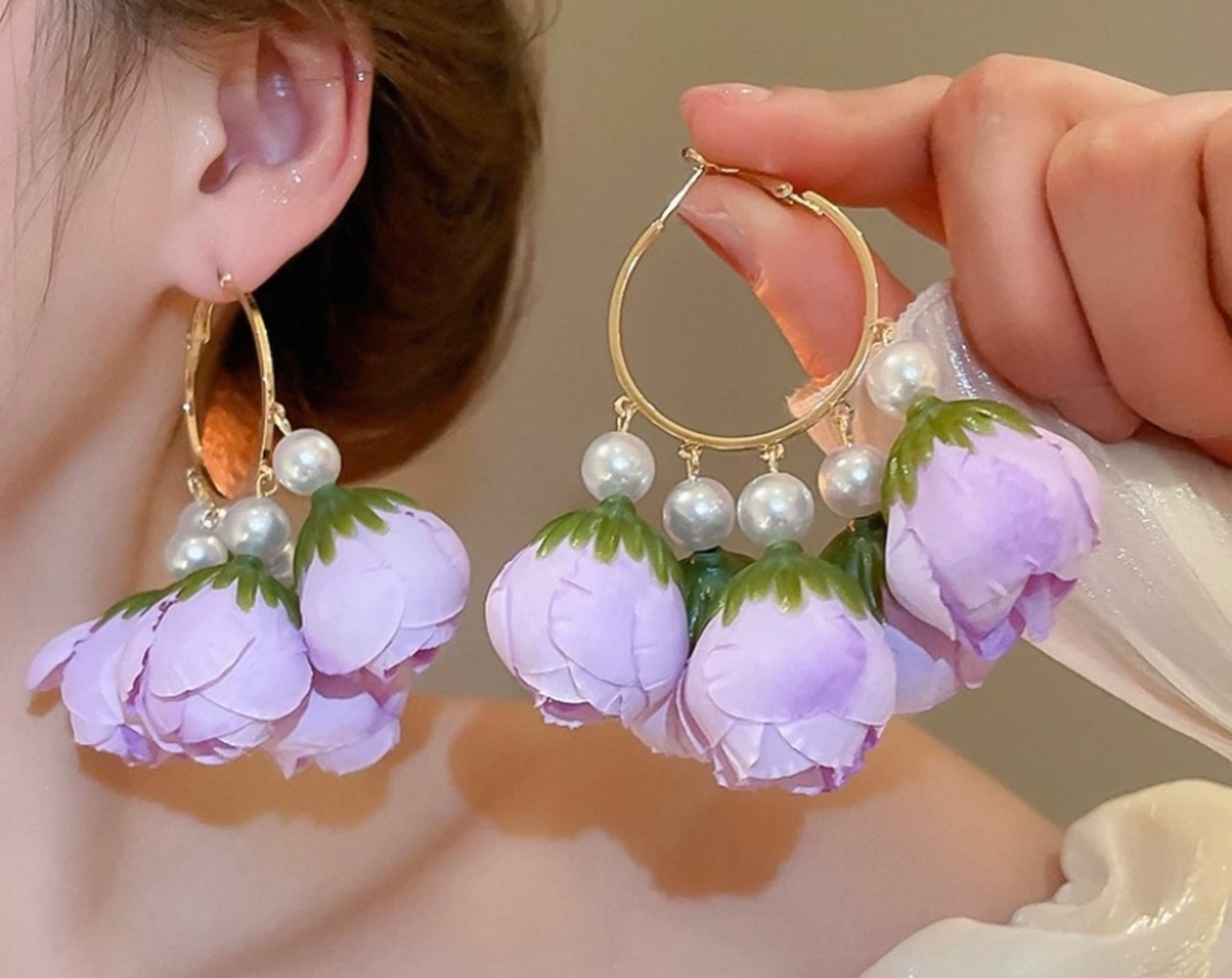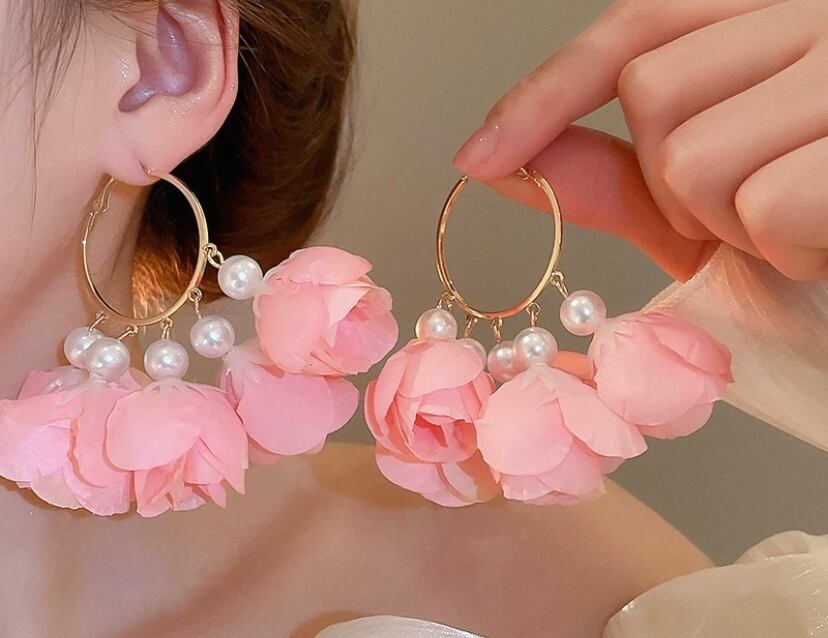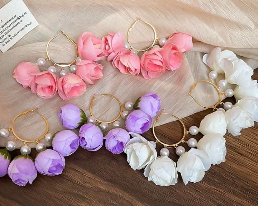 ピンク、紫 パール フープ ピアース ゆらゆら 白 フラワー