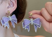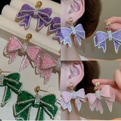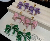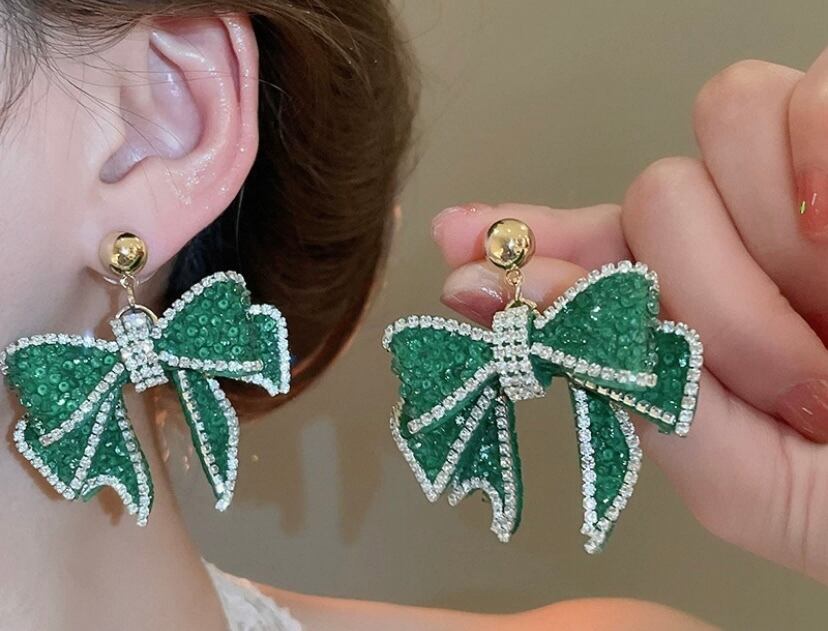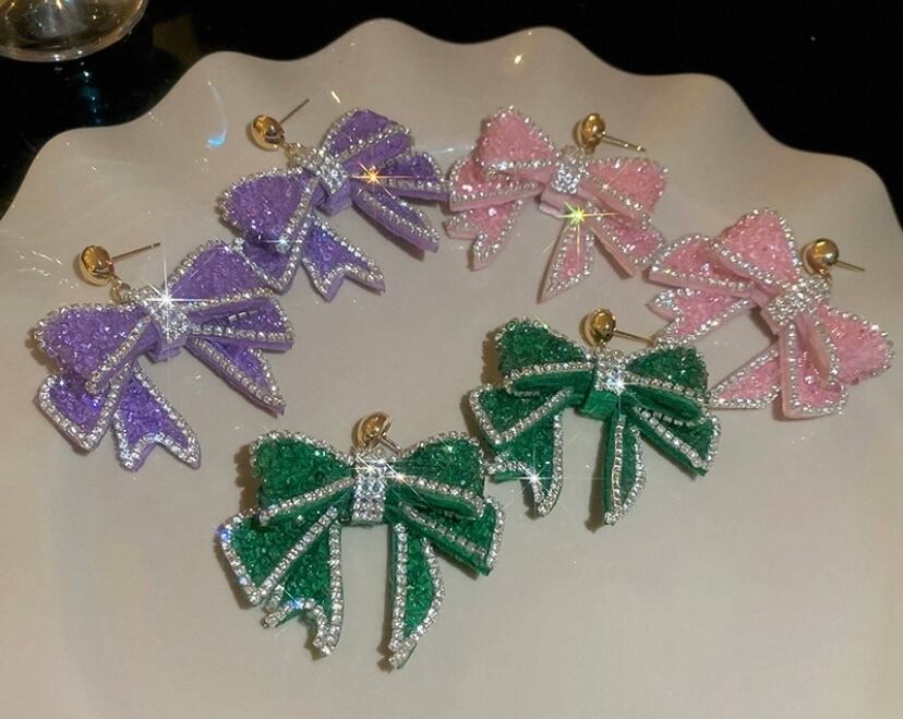 キラキラ 緑、ピンク、緑 リボン ゆらゆら ビック ピアス
