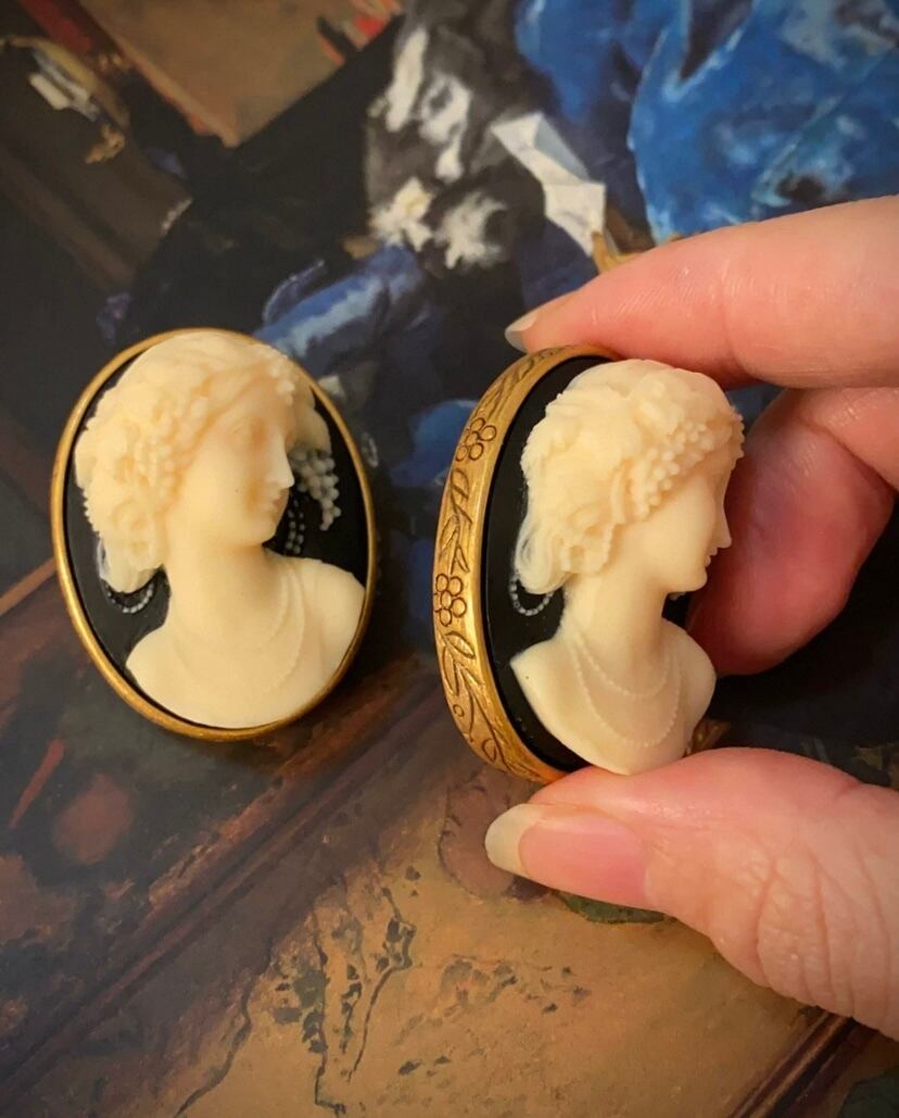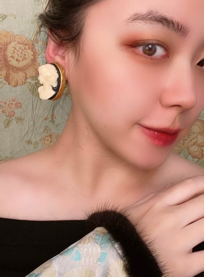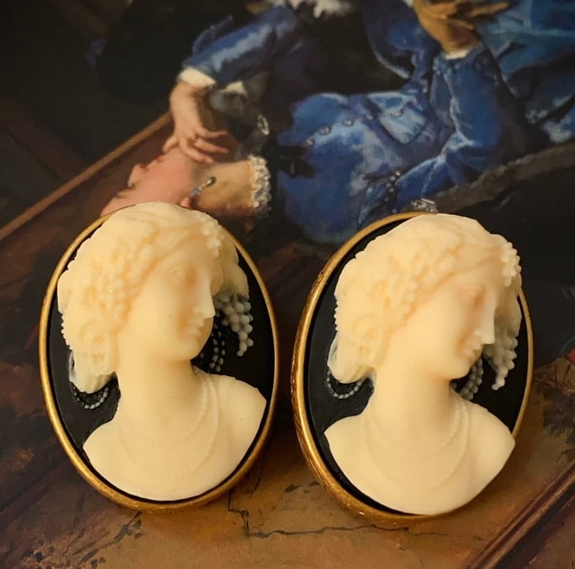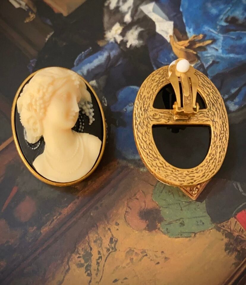 【イヤリング】カメオ風、人形、黒 ゴールド、イヤリング ピアス、アクセサリー