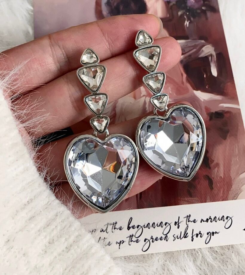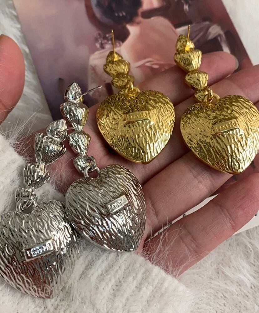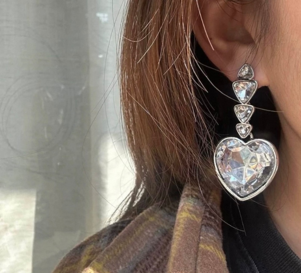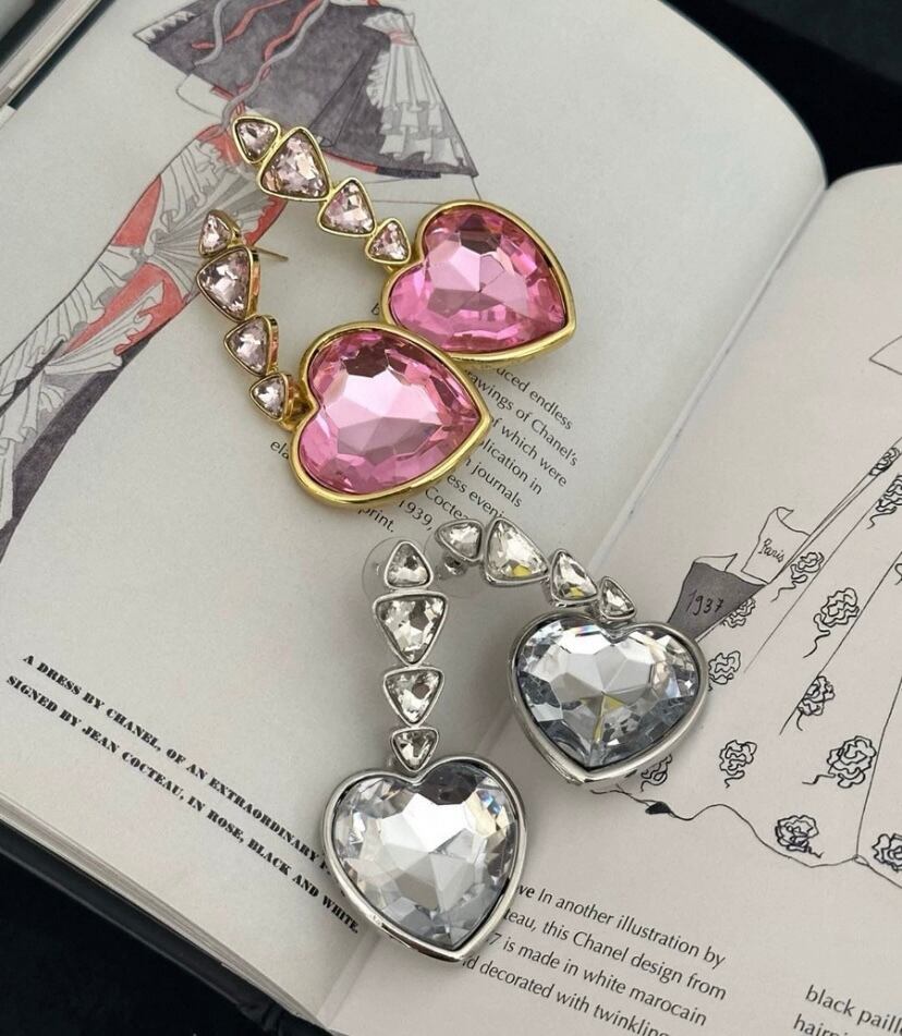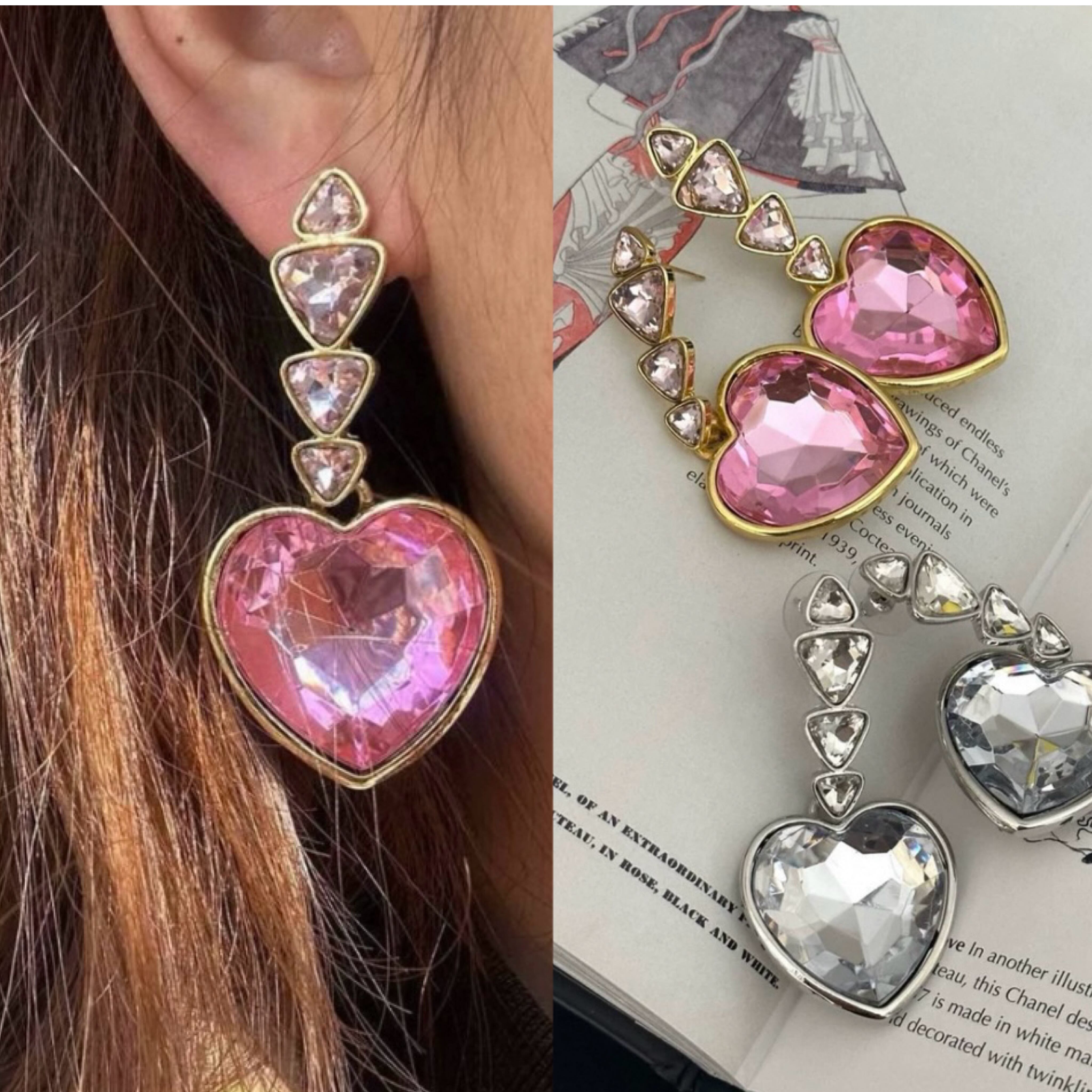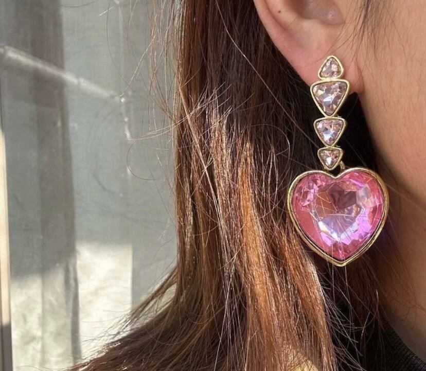 ゆらゆら ゴールド ピアス、ピンク ハート クリアストーン ロング