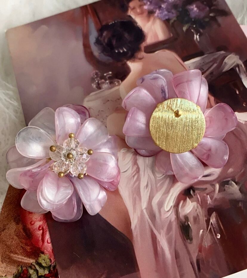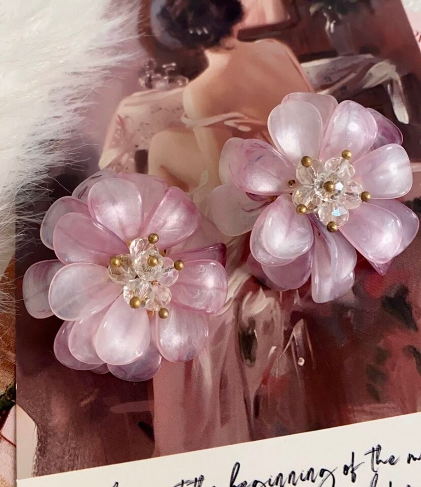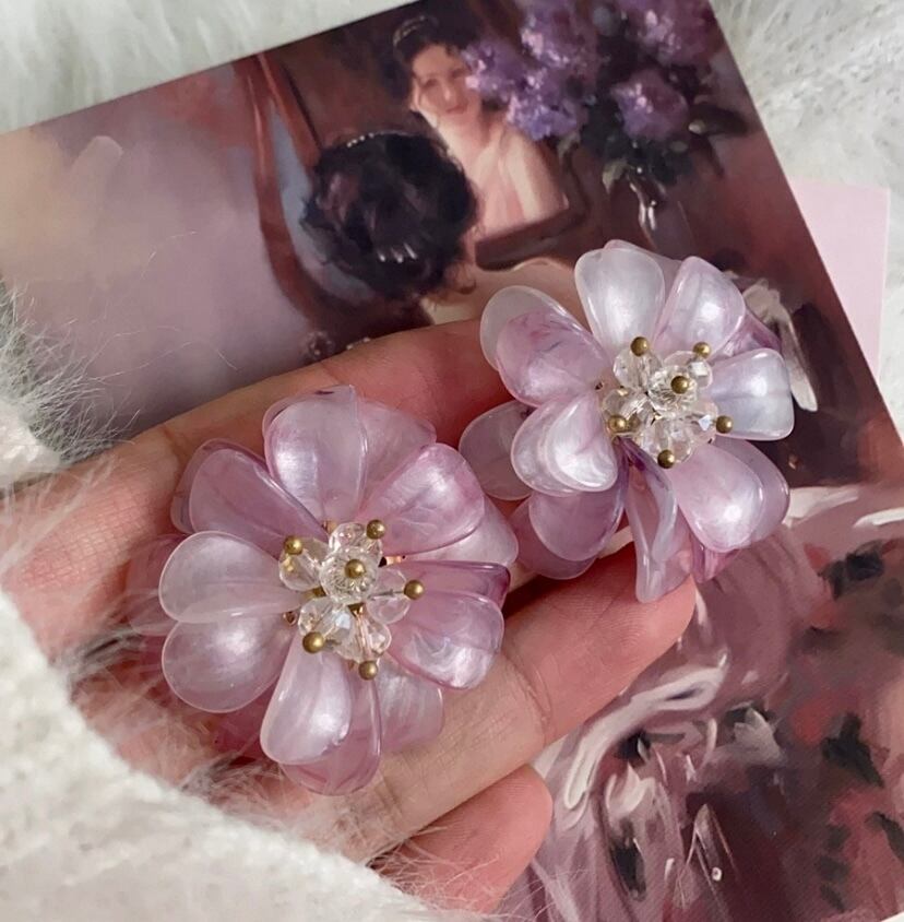 フラワー 紫、ピンク、花 ピアス、アクセサリー