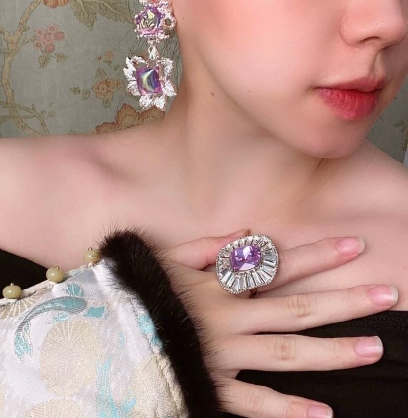ピンク 指輪 アクセサリー、ビジュー カラーストーン、紫 ピンク