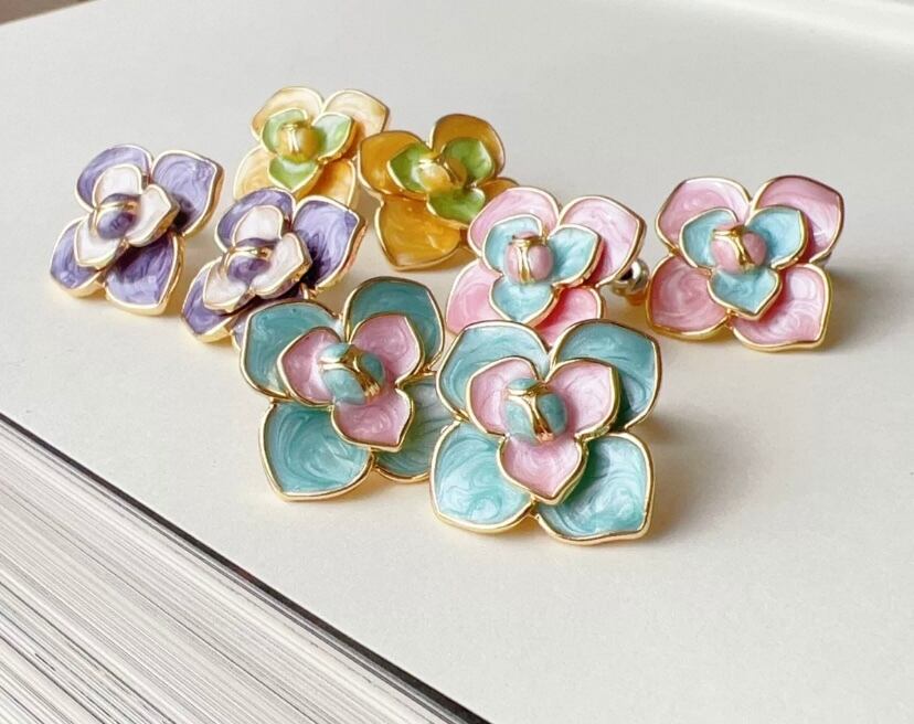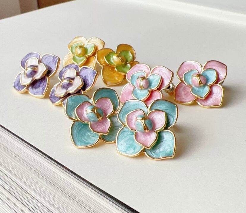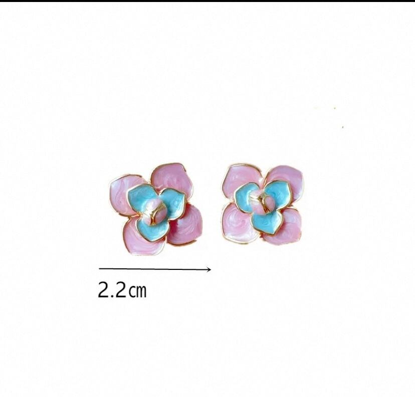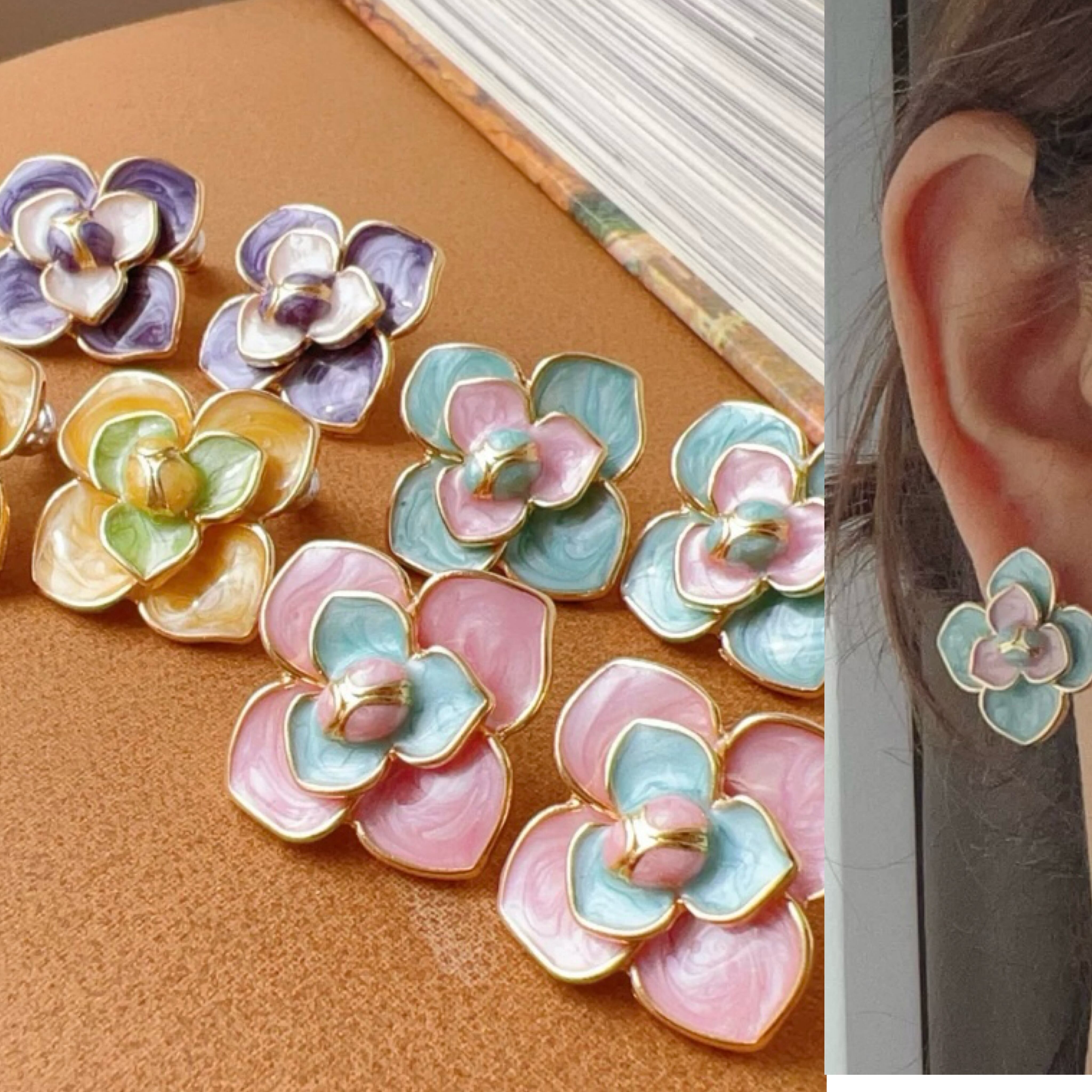 フラワー 花、黄色 水色、ピンク ピアス 紫