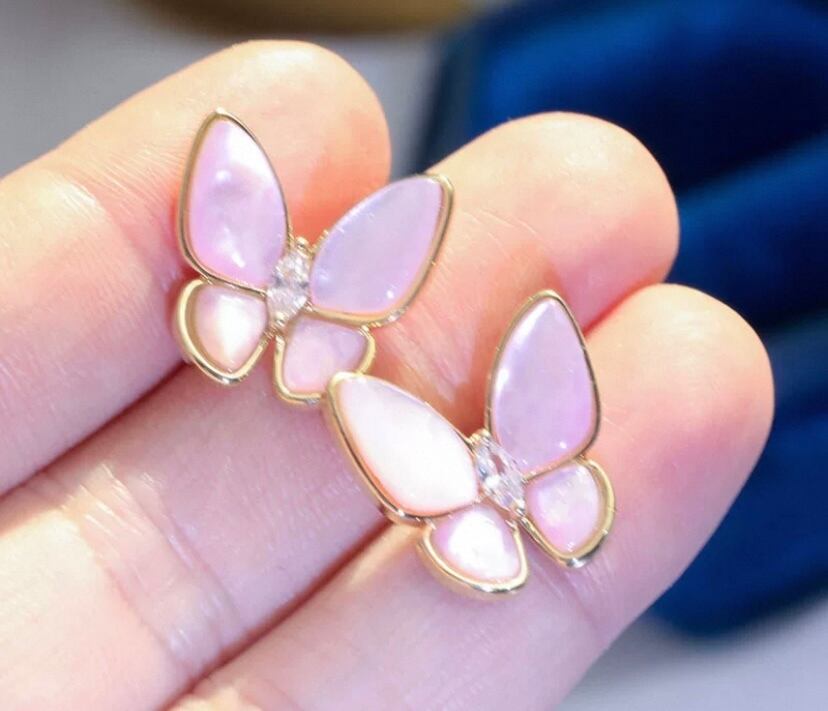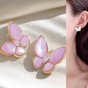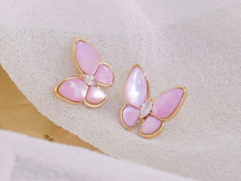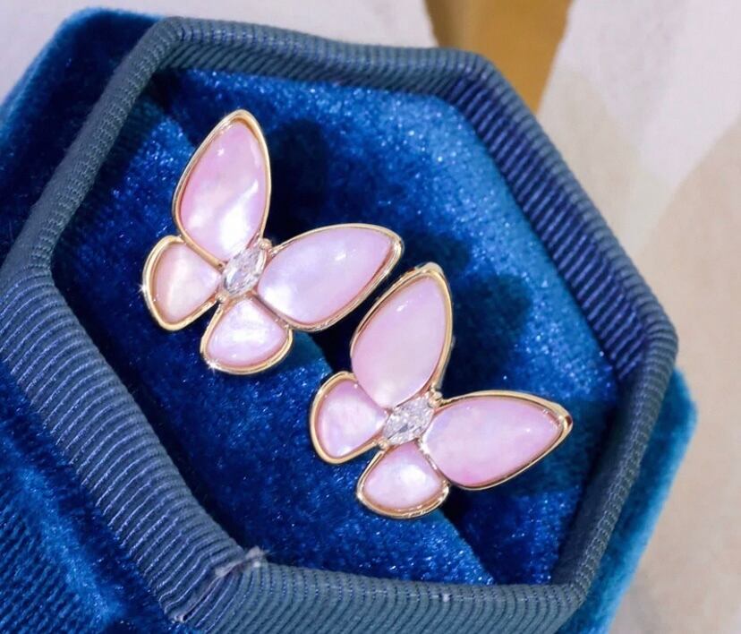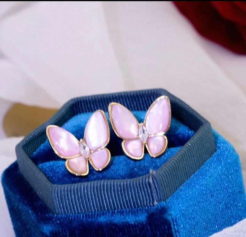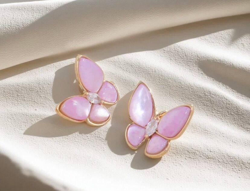 バタフライ 蝶々、ピンク、白 ピアス、エレガント