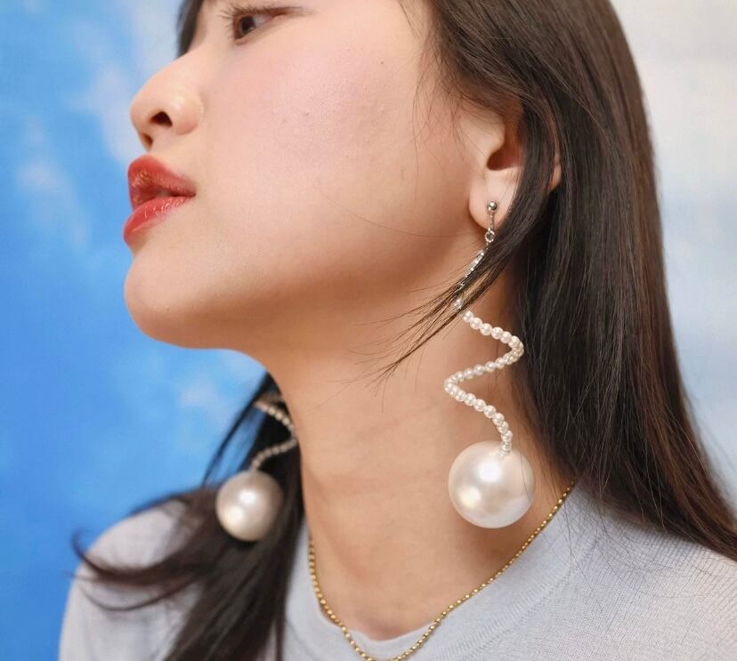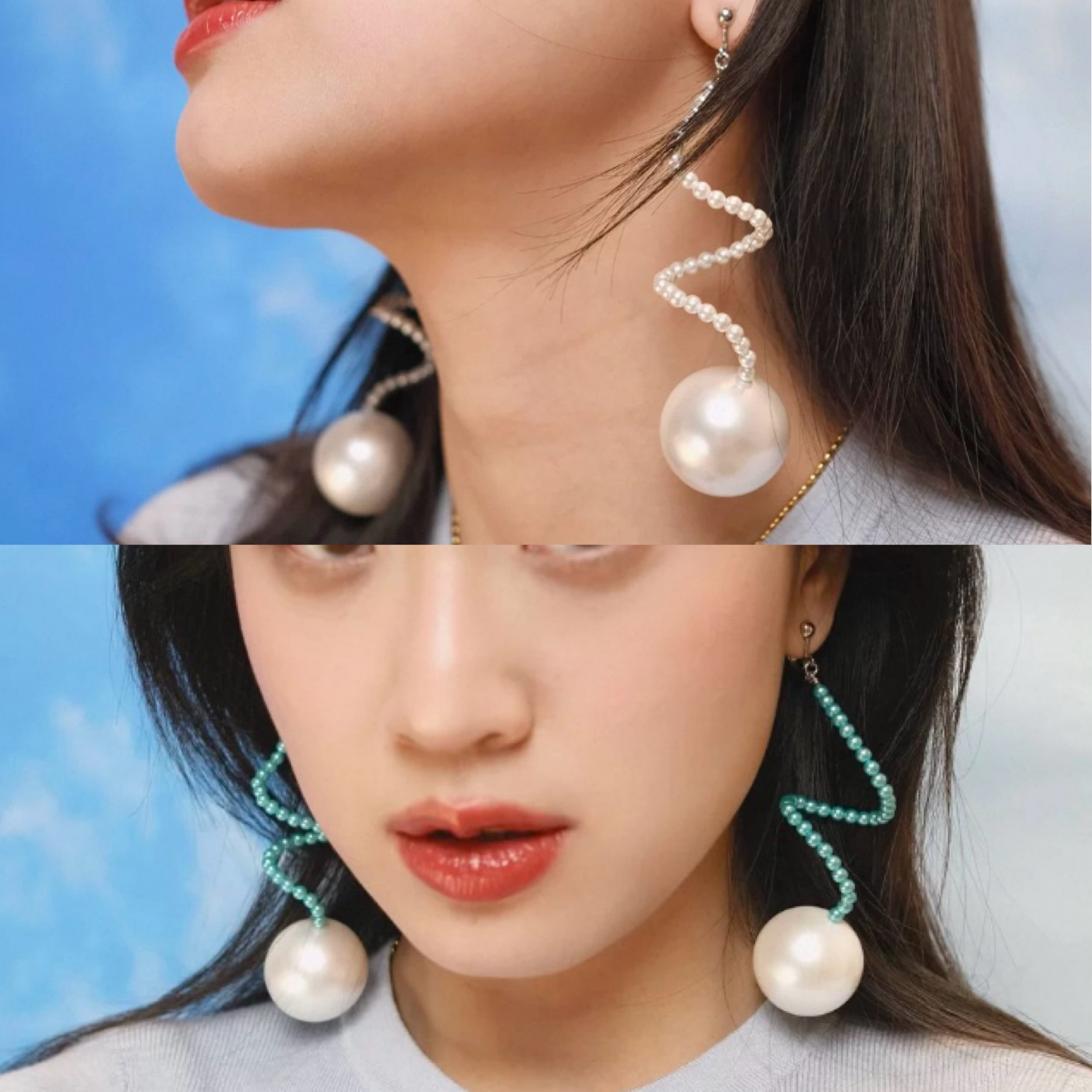 【イヤリング/ピアス】ロング ぐるぐる パール ゆらゆら