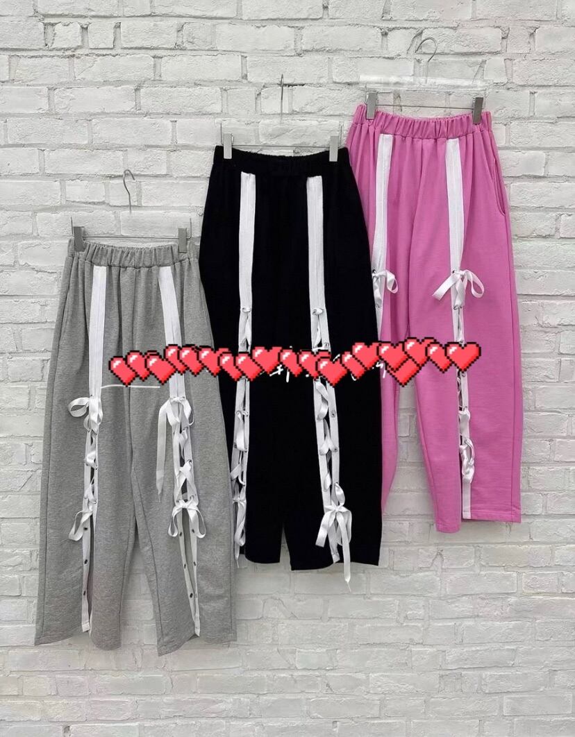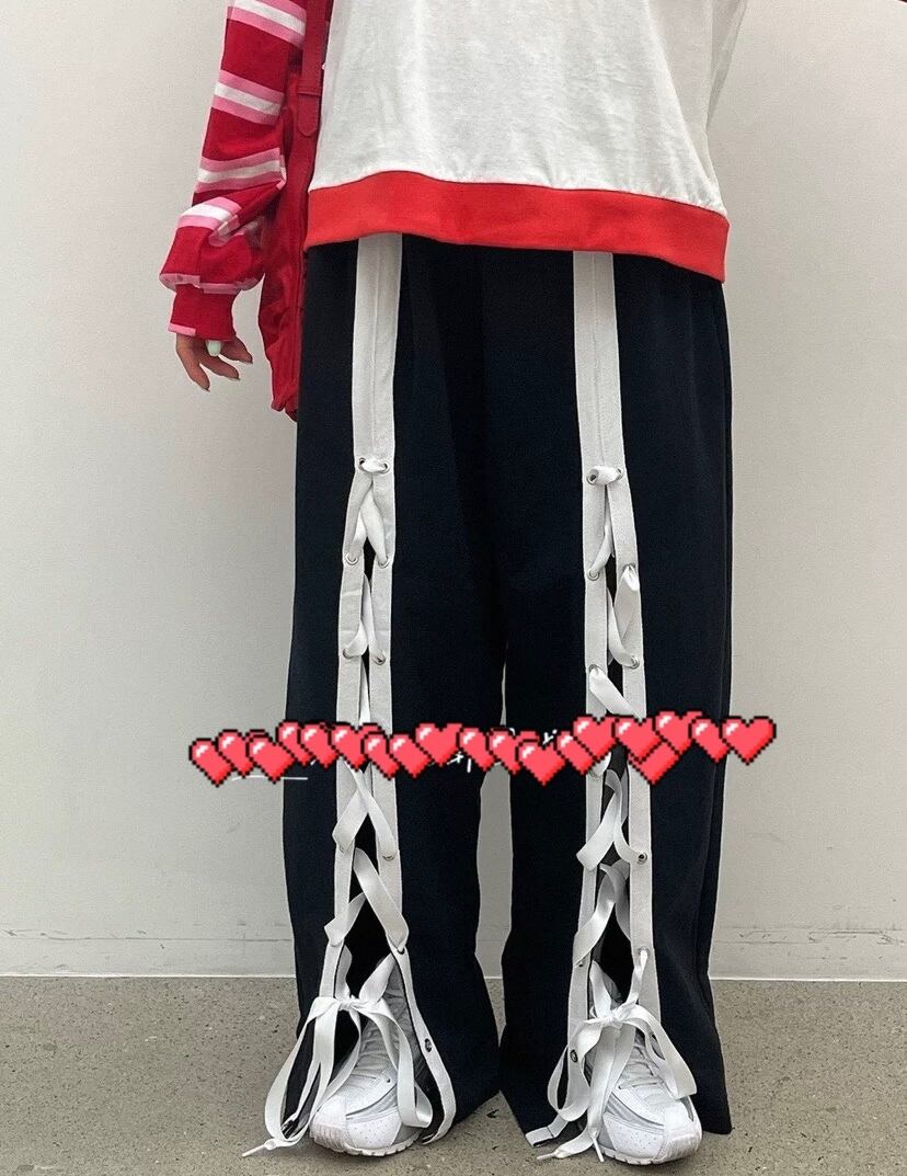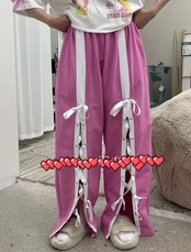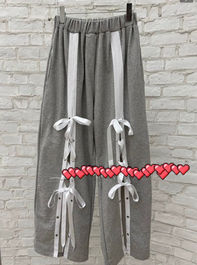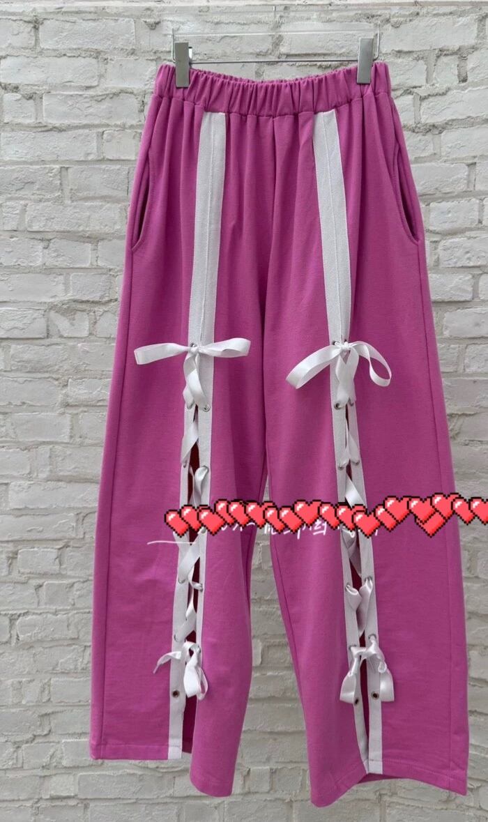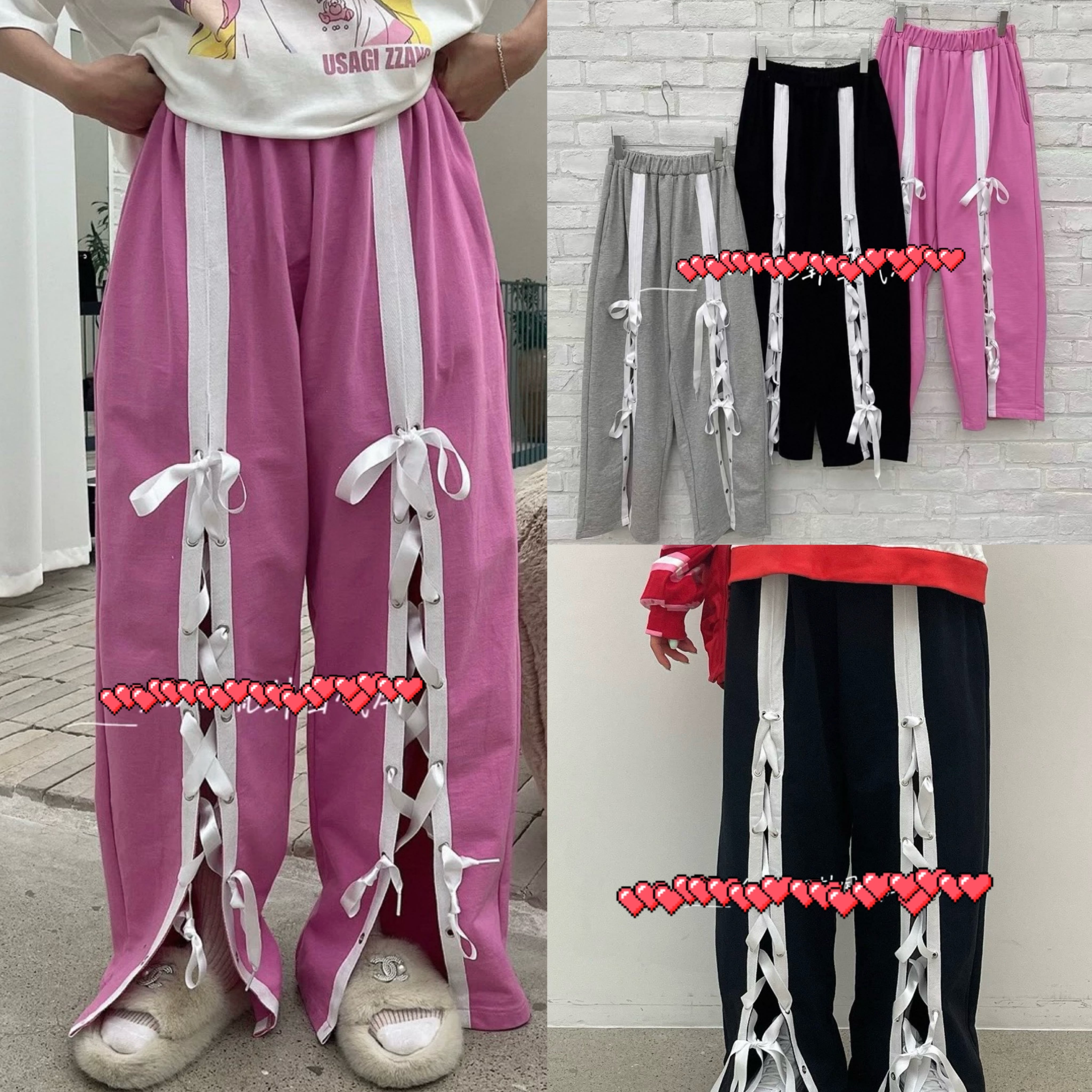 パンツ スウェット、編み上げ、リボン、ピンク、紫 グレー、黒 ボトムス