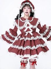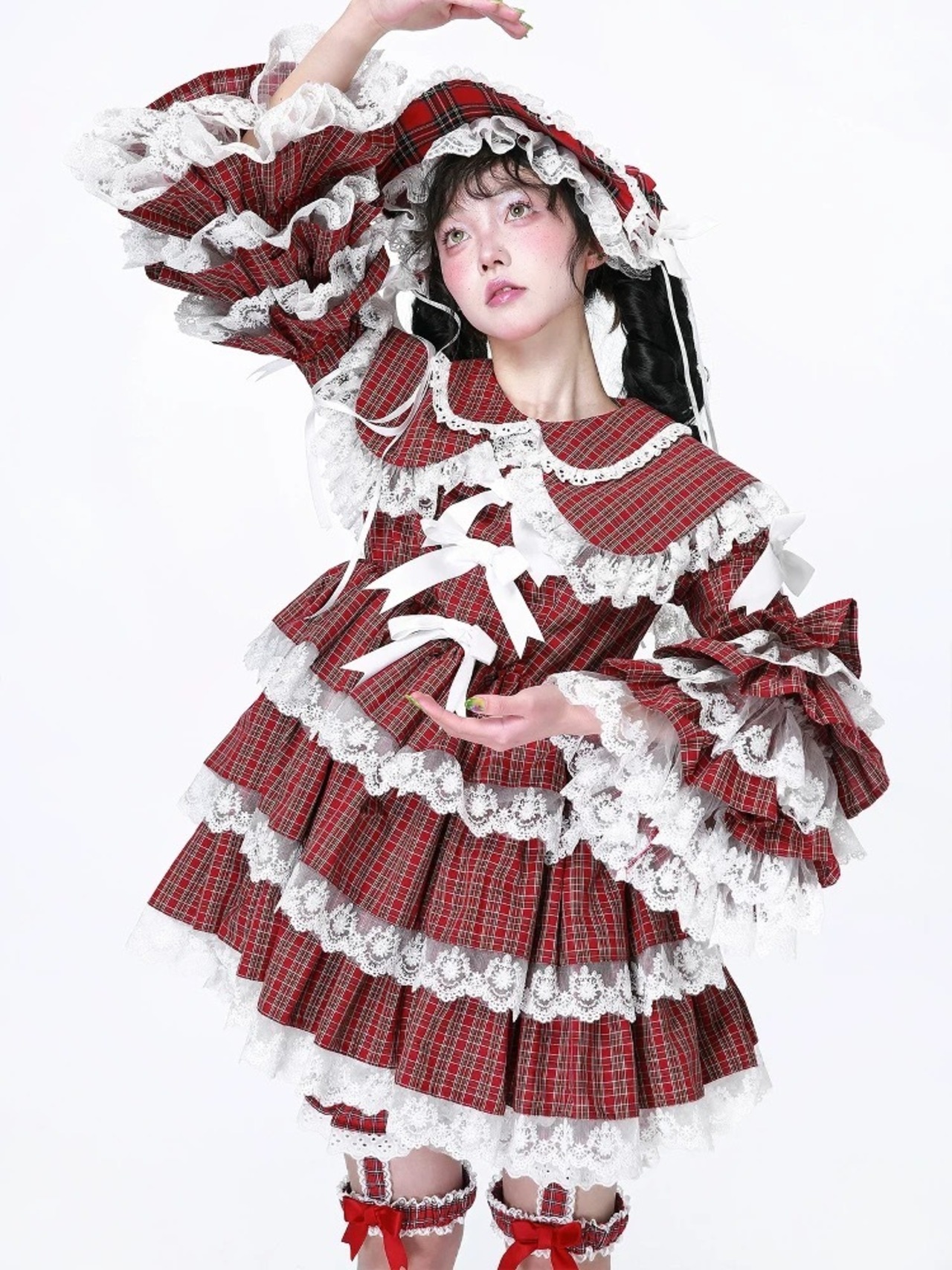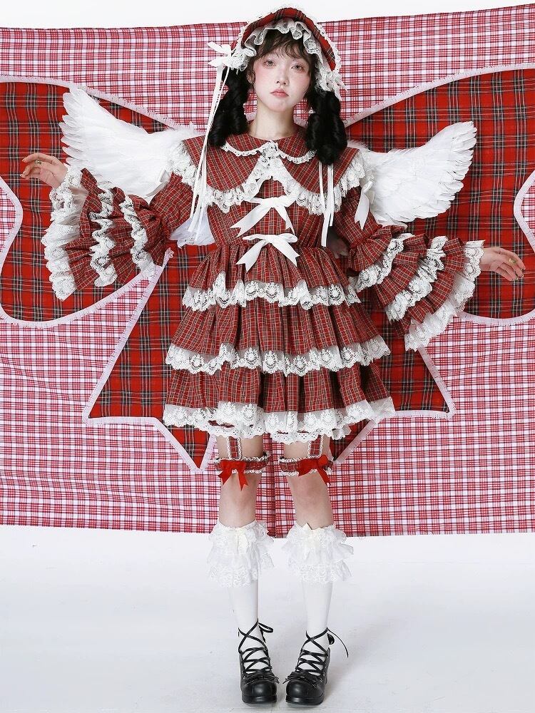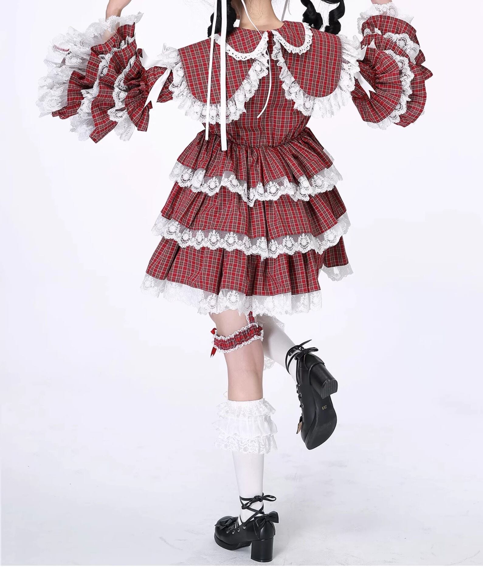 (2way【ワンピース】赤 チック リボン、かわいいフリフリ 姫 ドレス、丸襟 リボン レイ 原宿 原宿 ロリータ