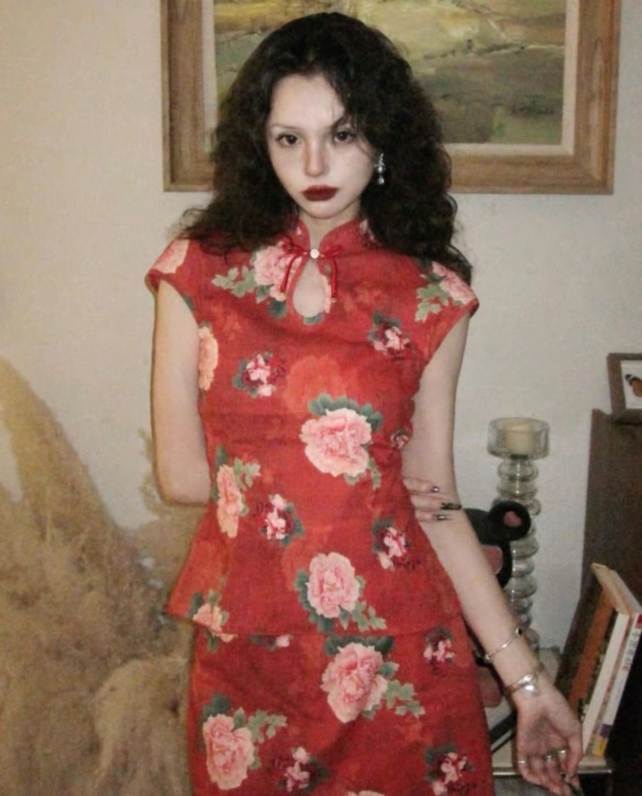 赤 レース ピンク 花柄 ワンピース セットアップ