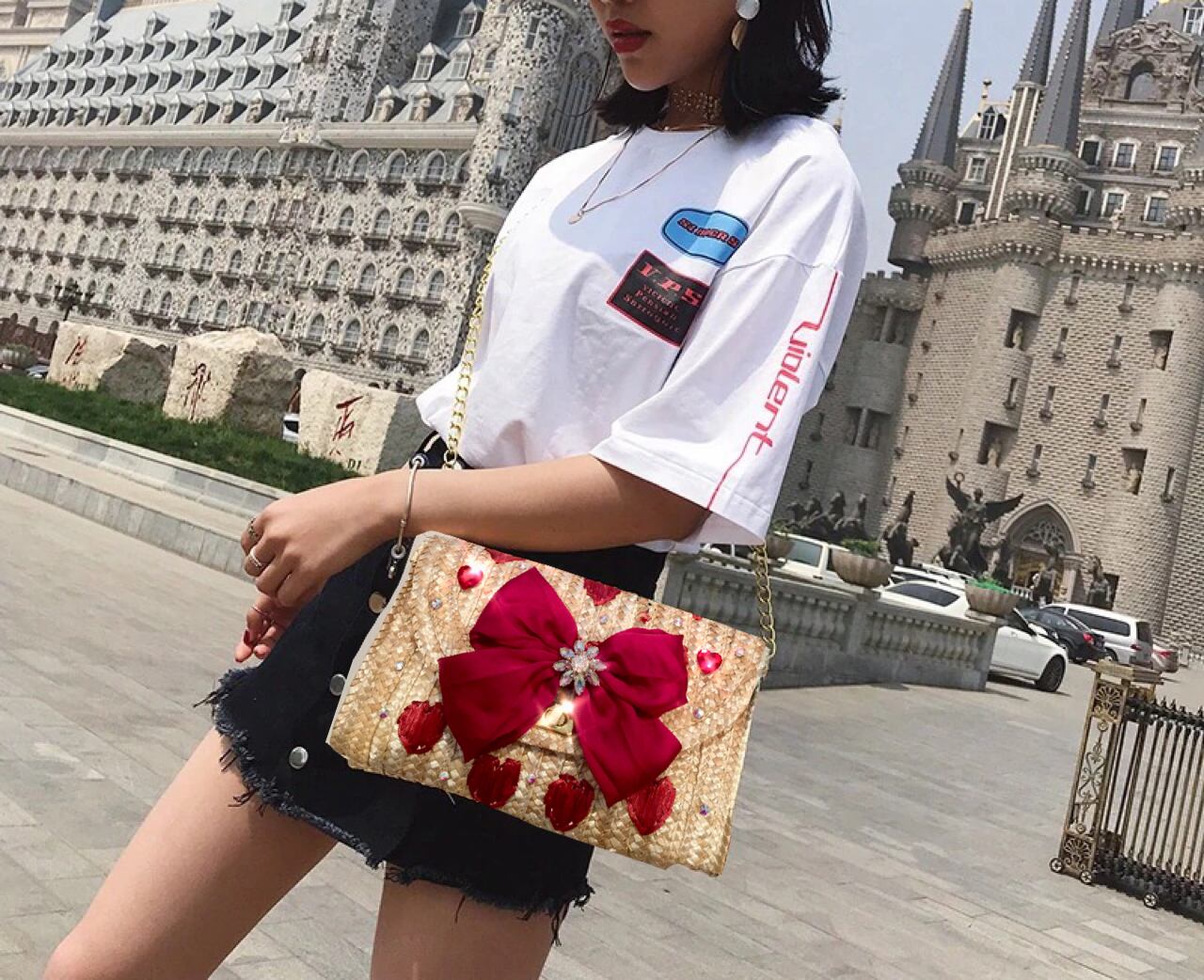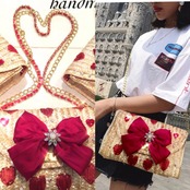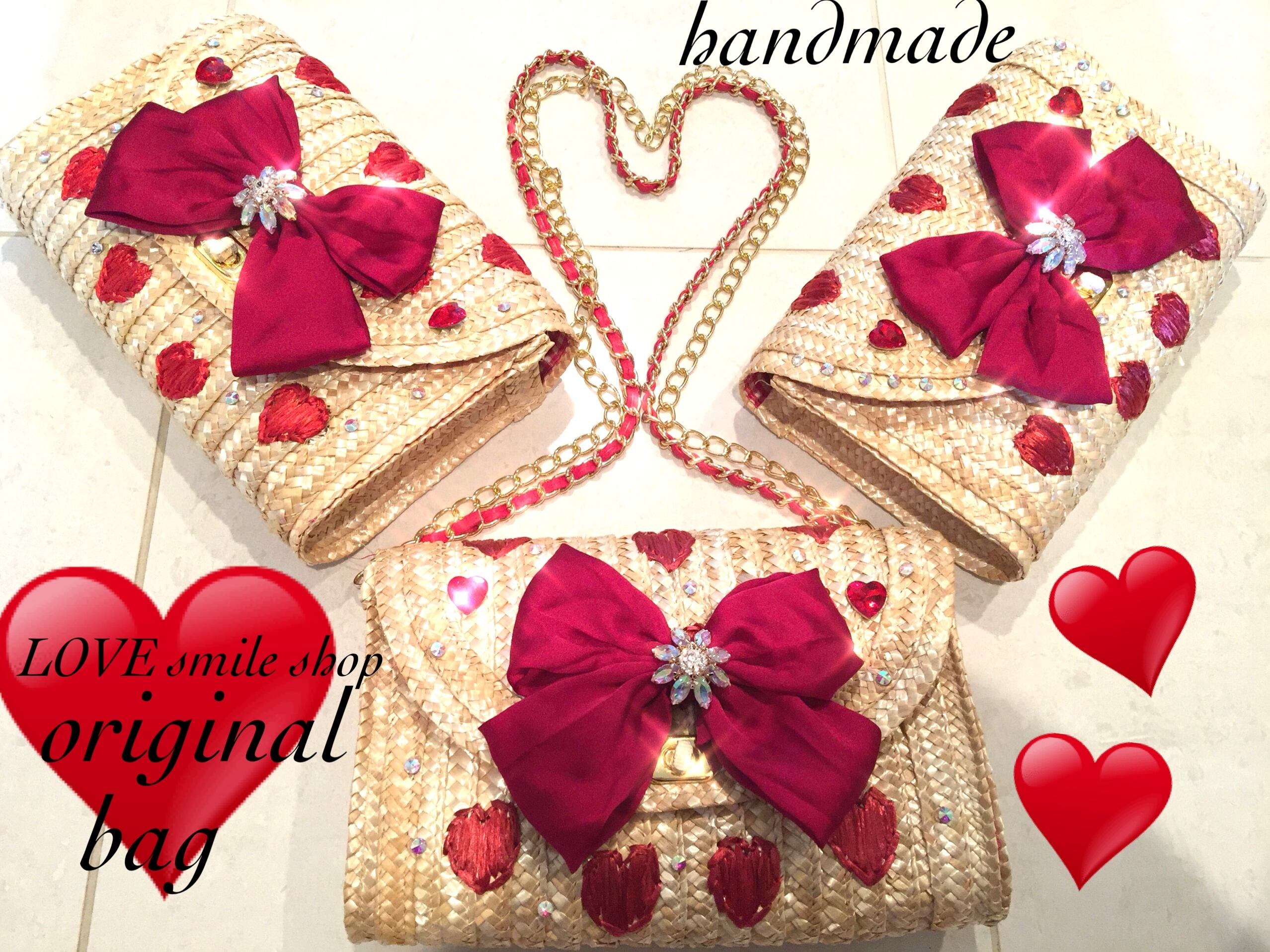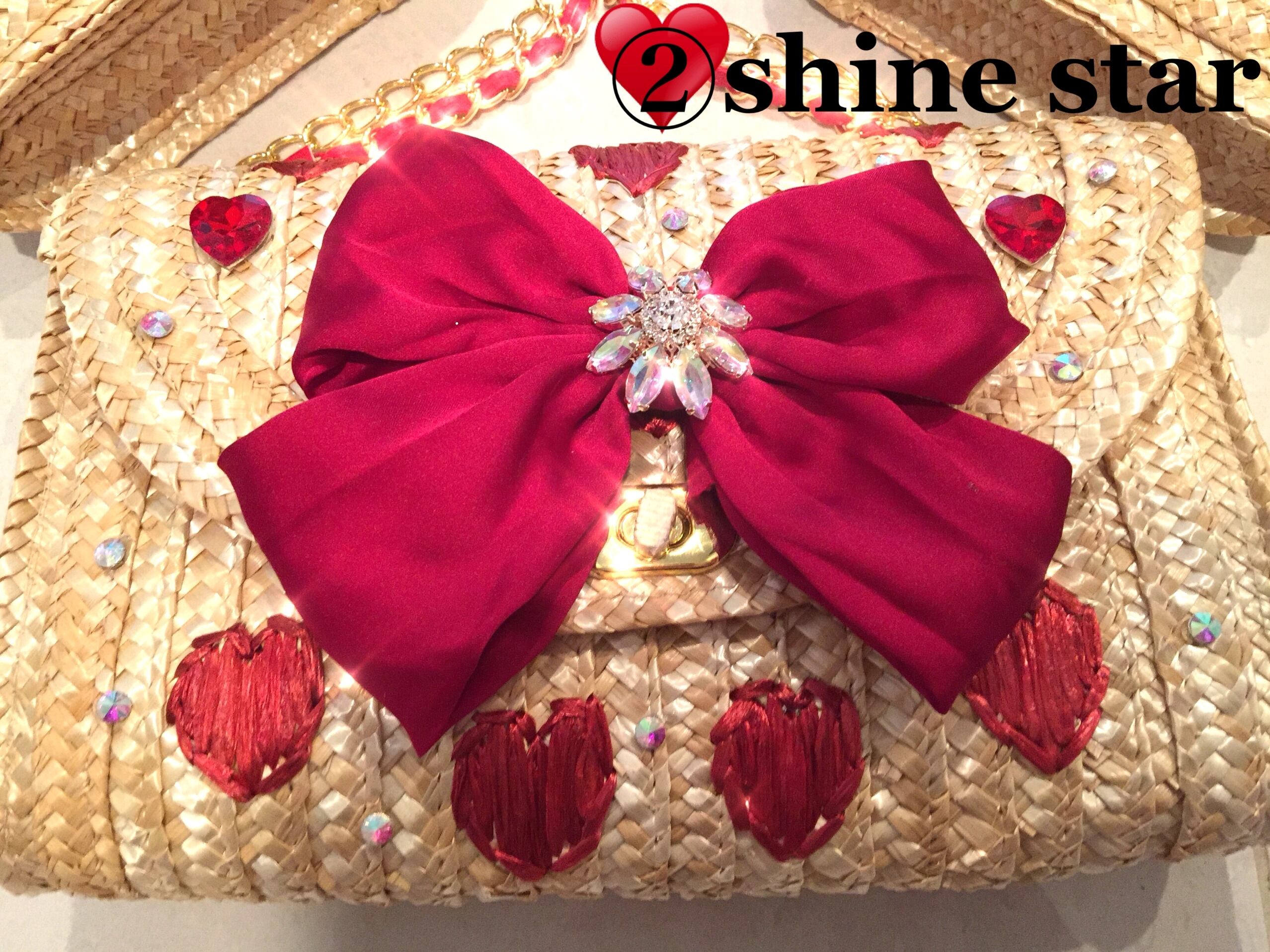 SALE❣️【即納❣️】【送料無料❣️3点のみ発売】【3way bag】リボン ハート 赤 キラキラ ショルダー バック 鞄 ガール キッズ 麦わら カゴバッグ 衣装