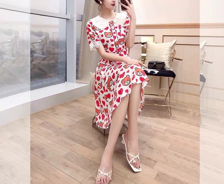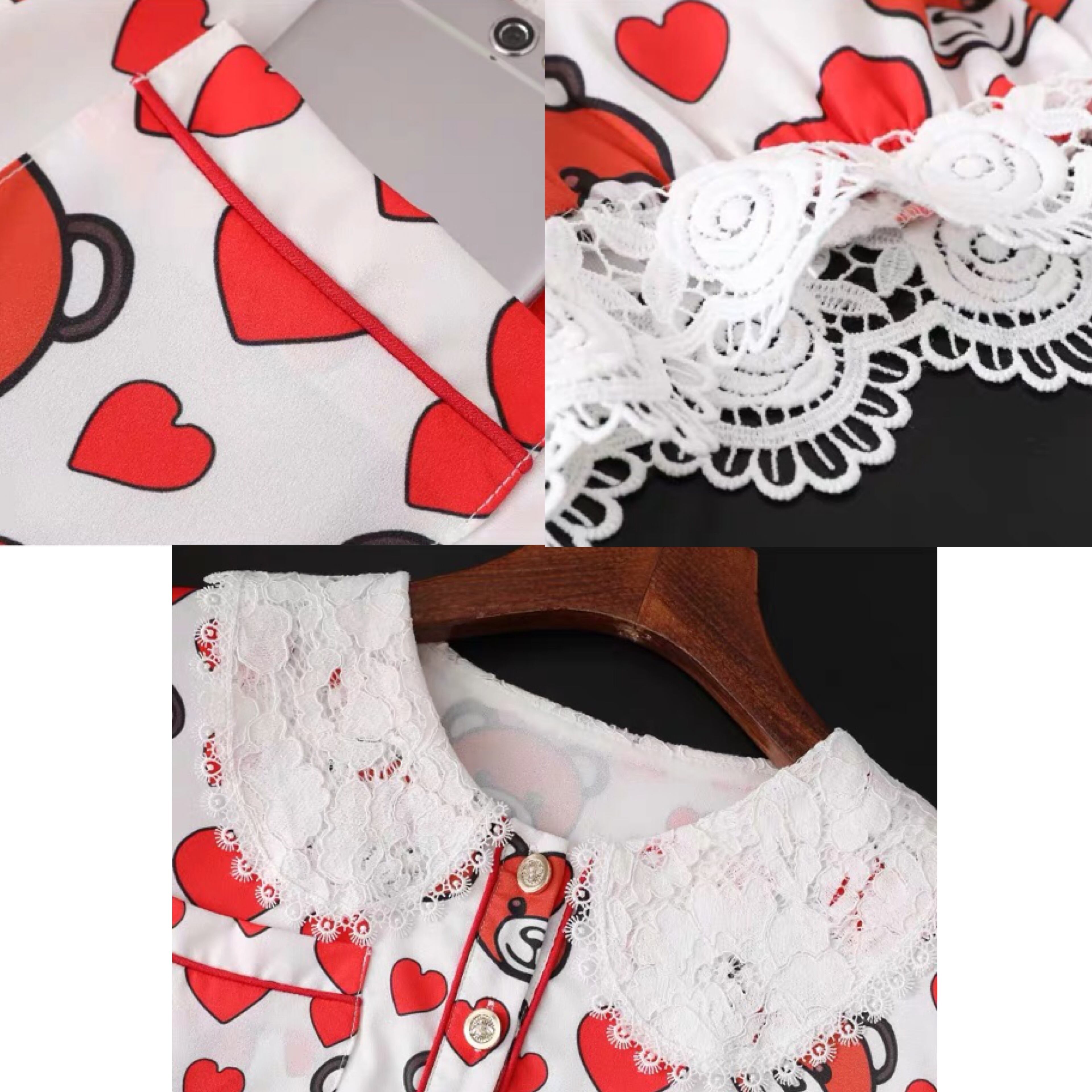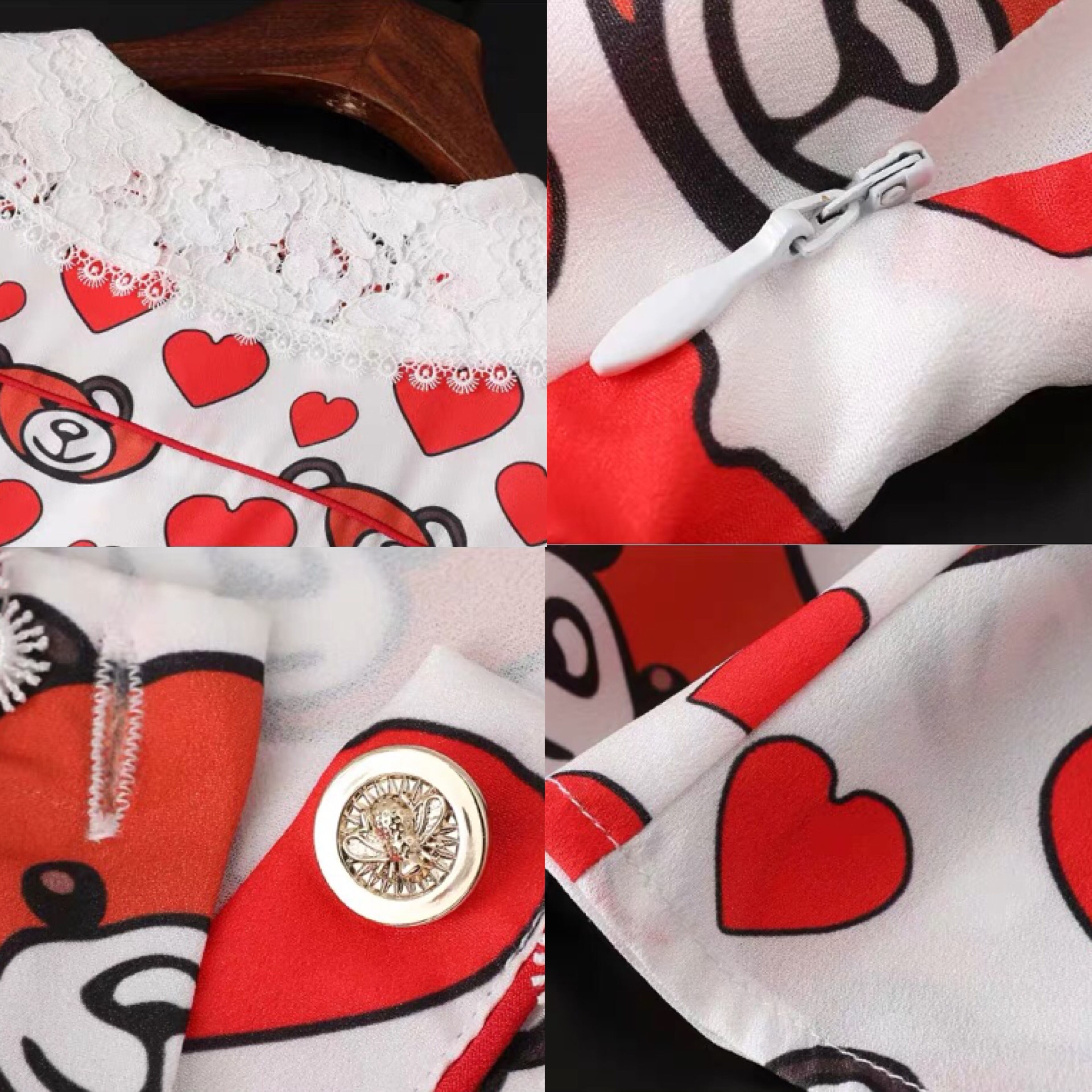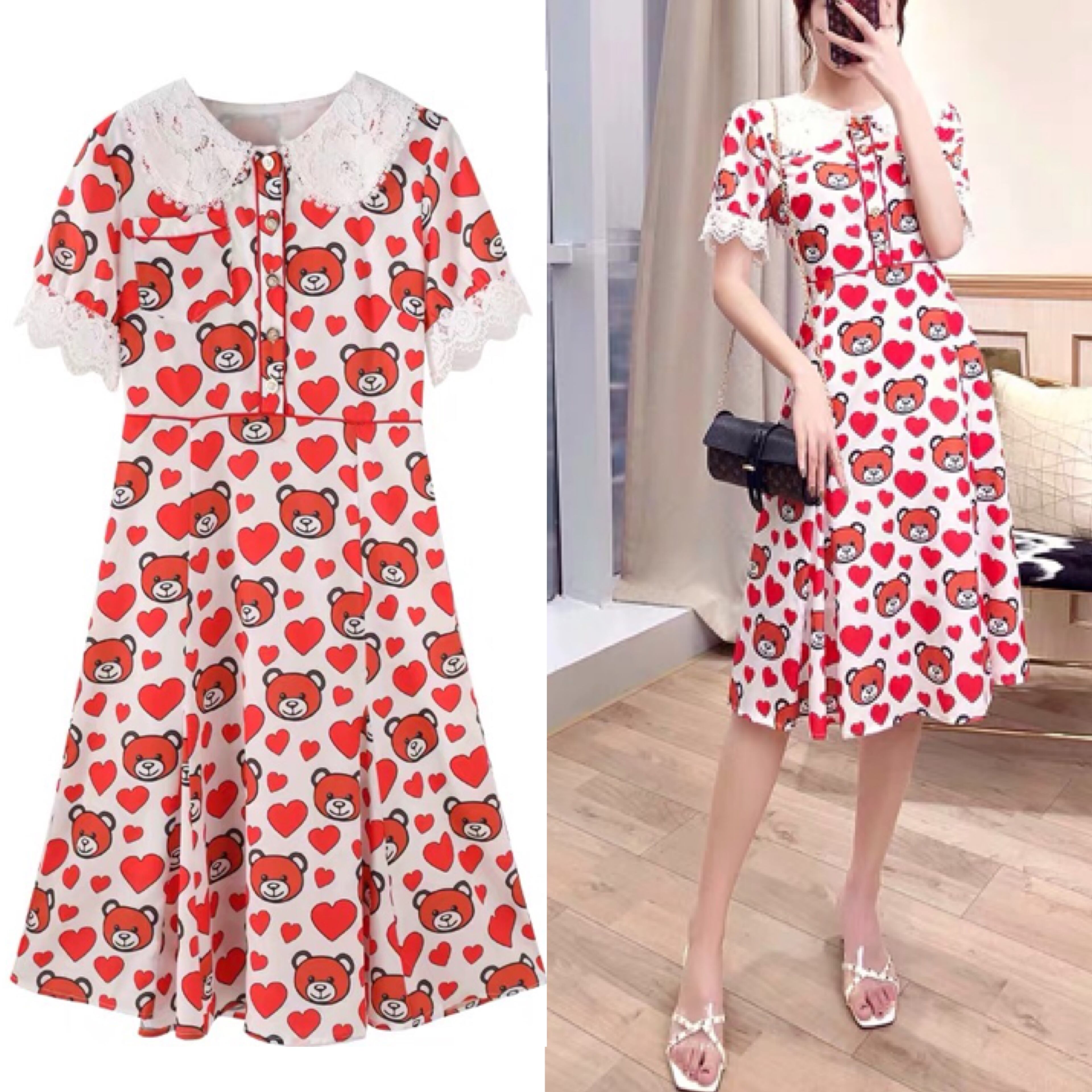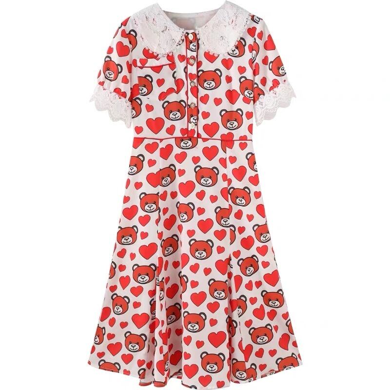ハート ワンピース 赤 熊 クマ ベア 丸襟 レース XL ブラウス フレア スカート