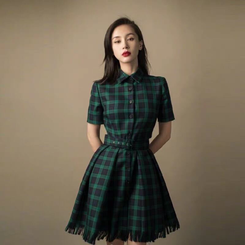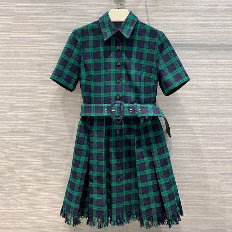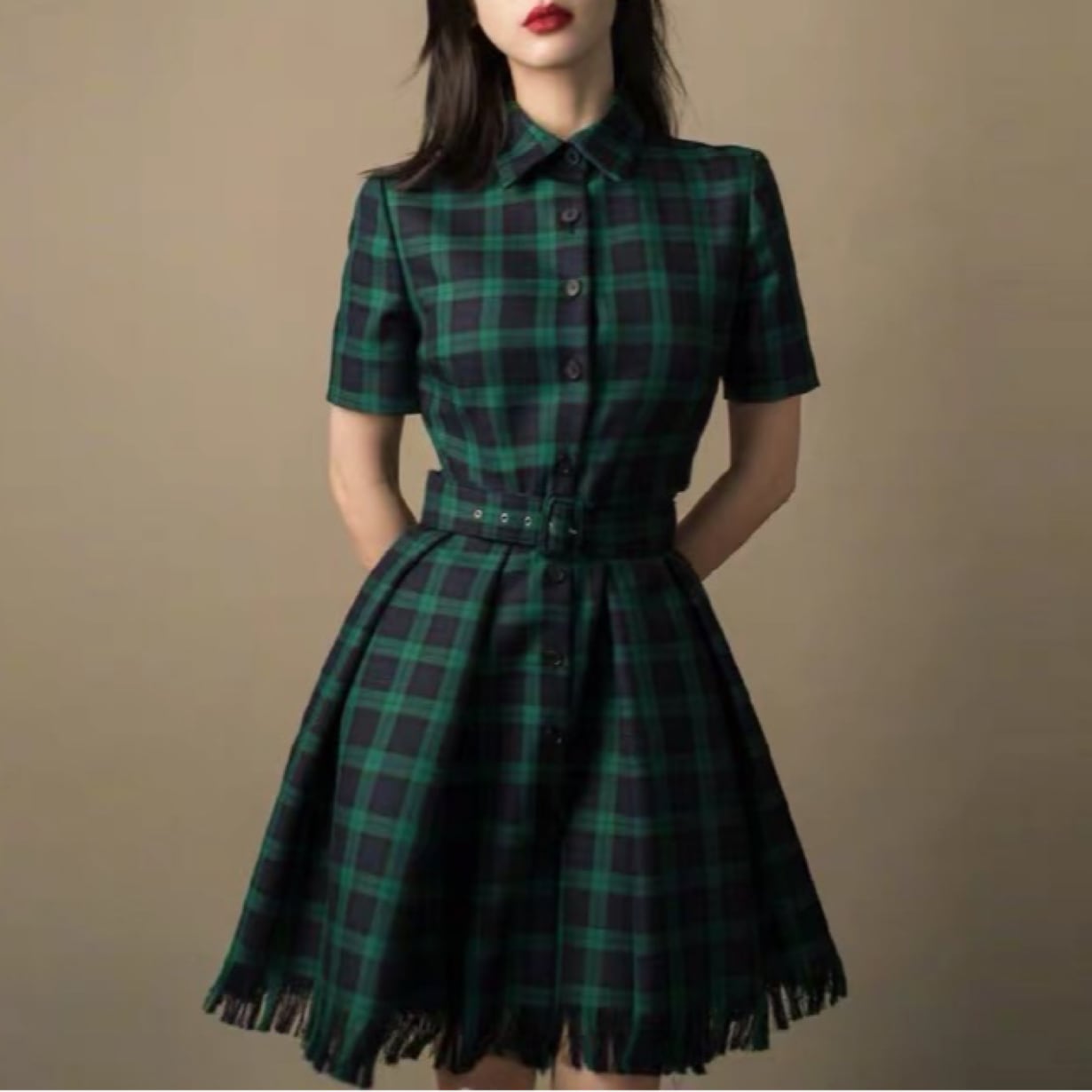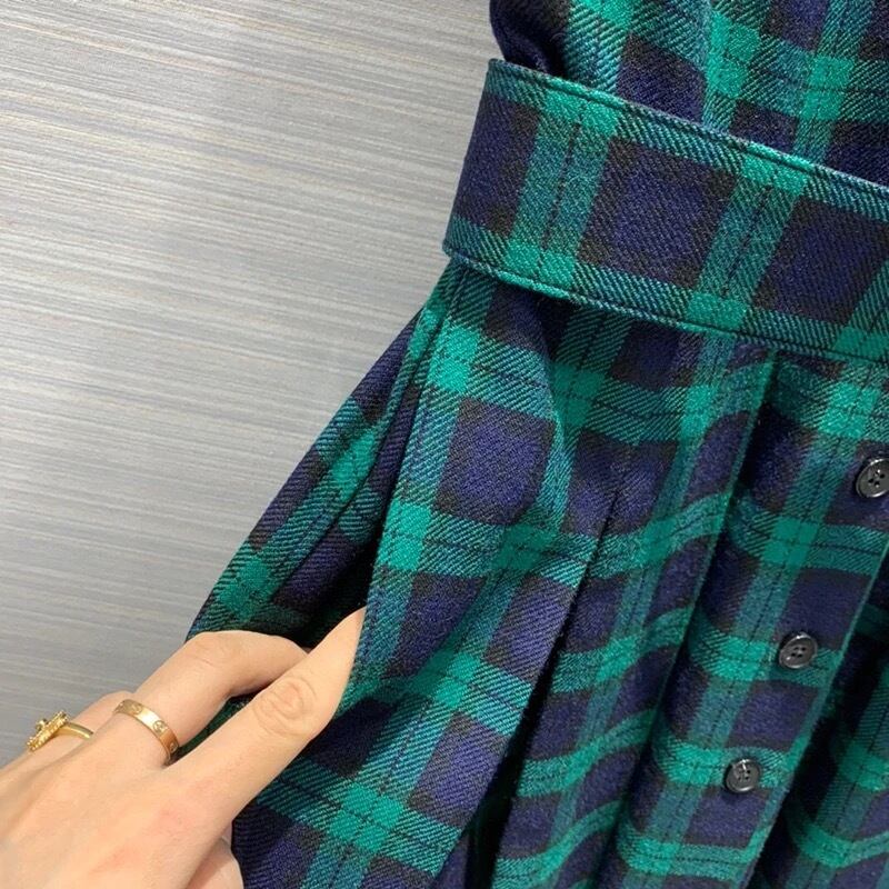 ワンピース チェック グリーン シンプル ブラウス 緑 XL