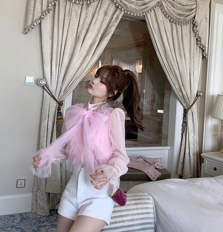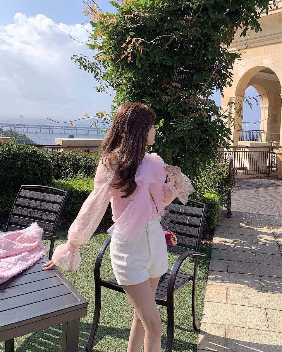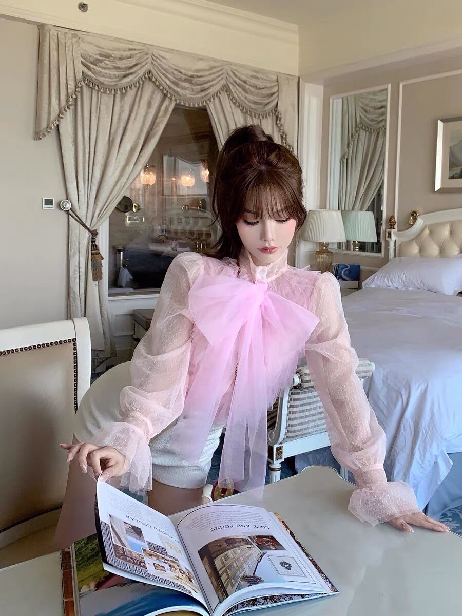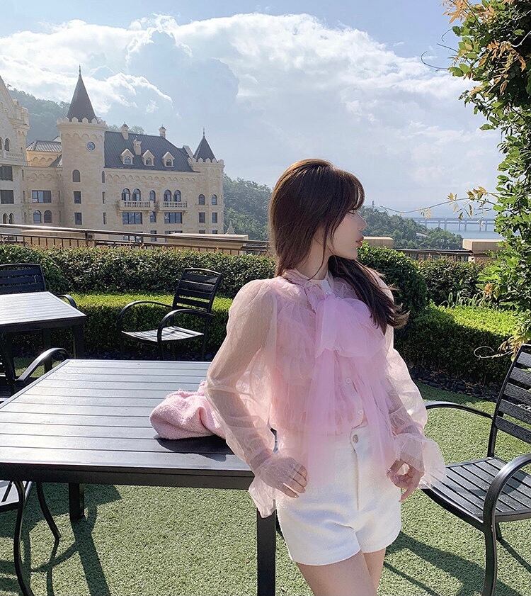 SALE❣️【即納❣️ 再販なし❣️】ピンク トップス シャツ 姫 フリル かわいい ブラウス キャミソール カーディガン アウター シースルー オーガンジー ヌーディー セクシー ドレス ゴージャス 表参道 青山 銀座 リボン ブラウス 可愛い ガーリー