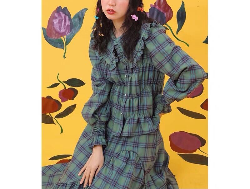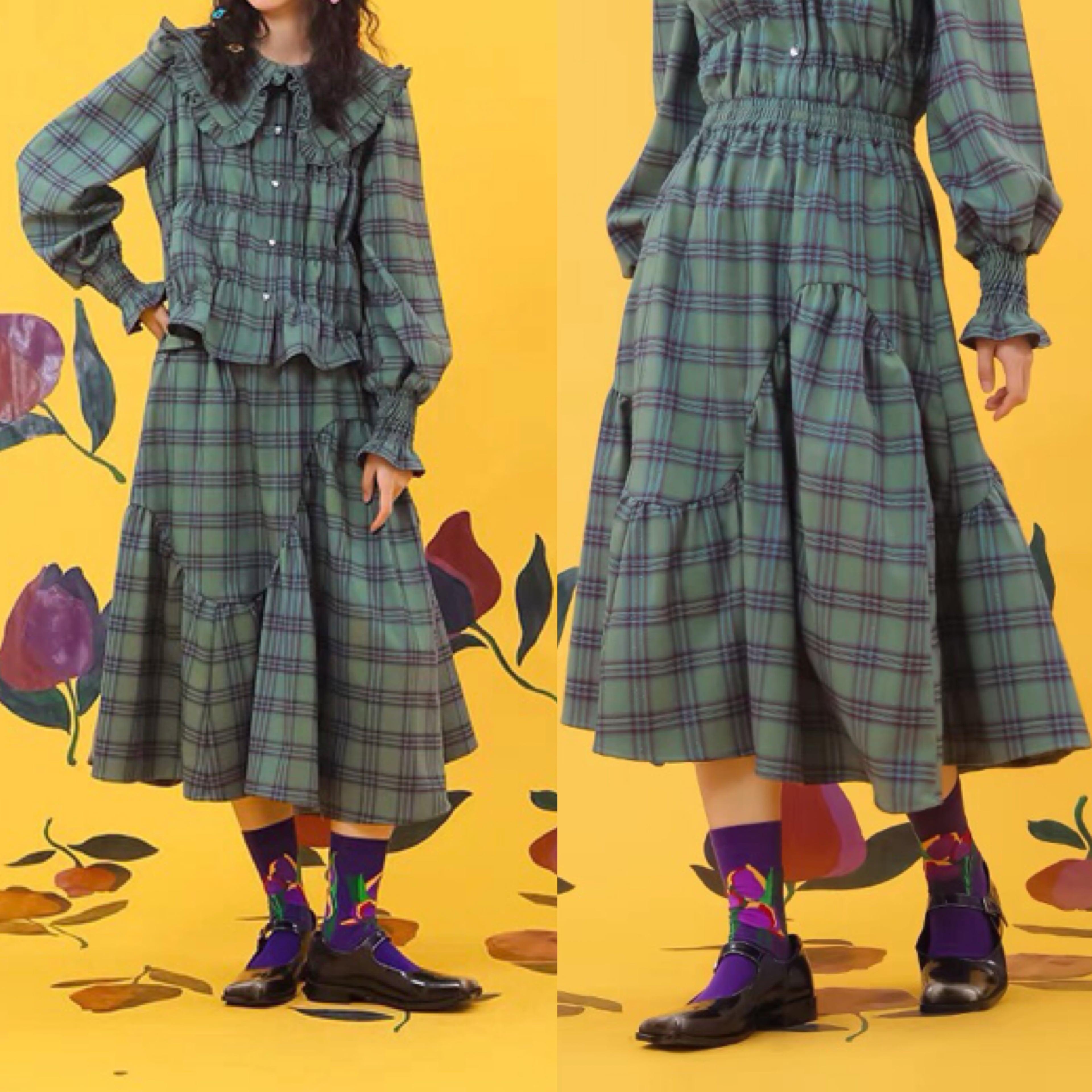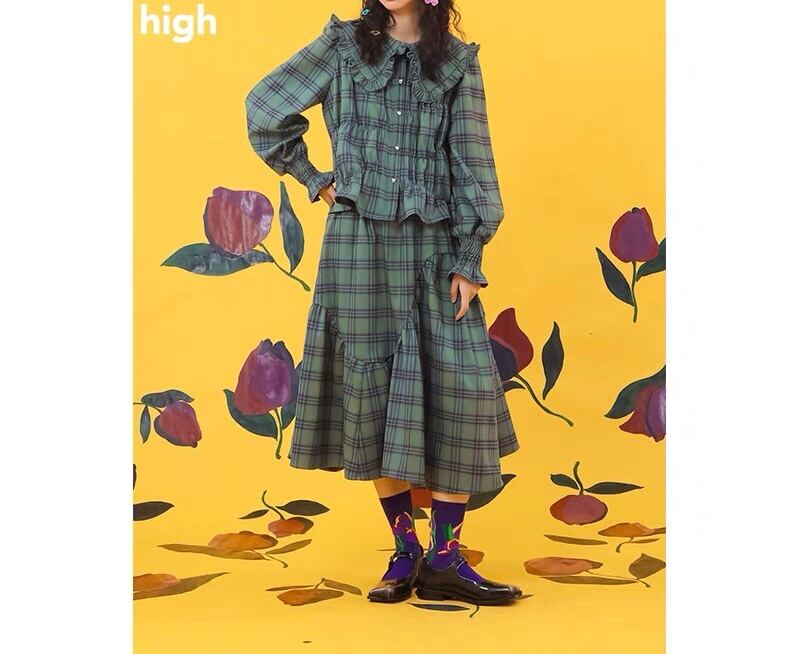【スカート 】グリーン 緑 チェック スカート ボトムス セットアップ