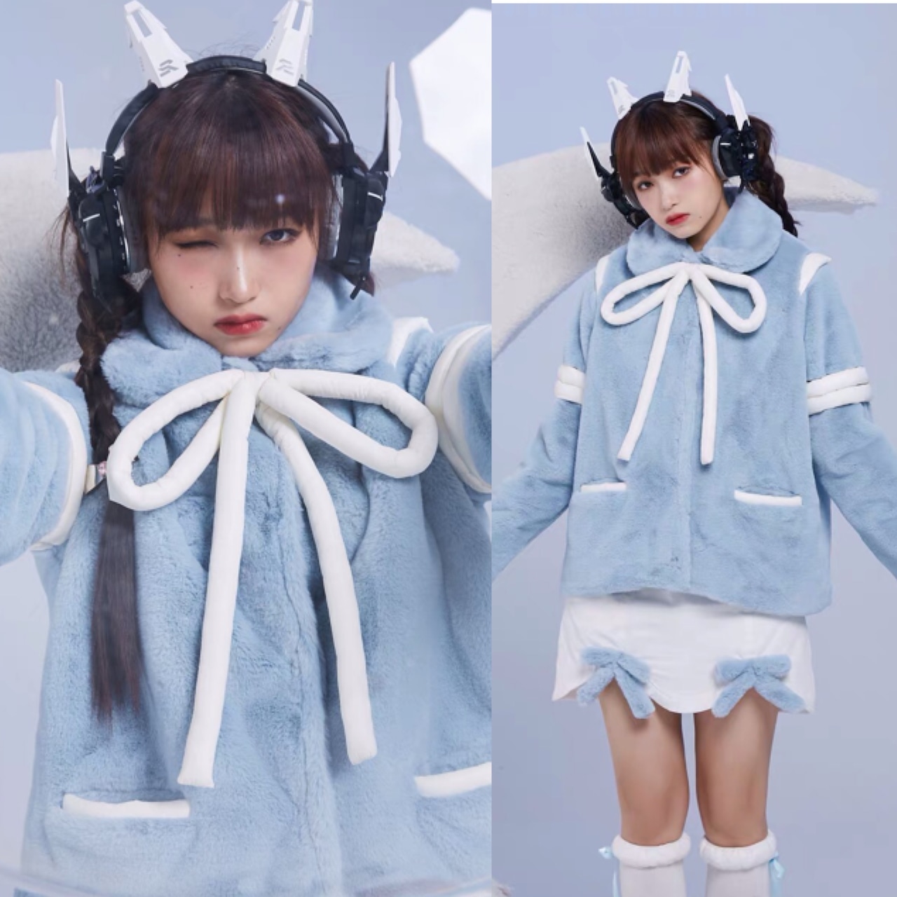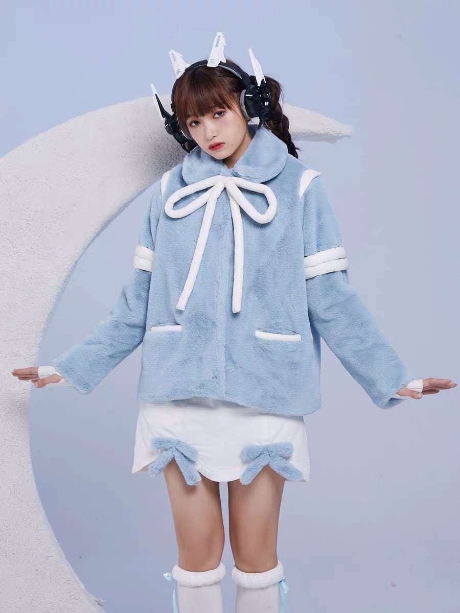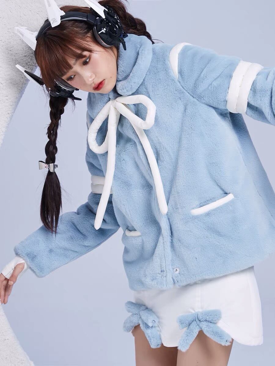 【1点のみ❣️】水色 ジャケット アウター リボン 白 ガーリー トップス カーディガン アウター ジャケット コート