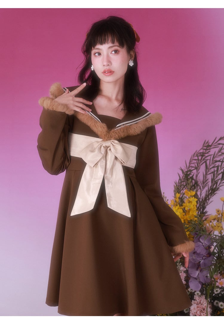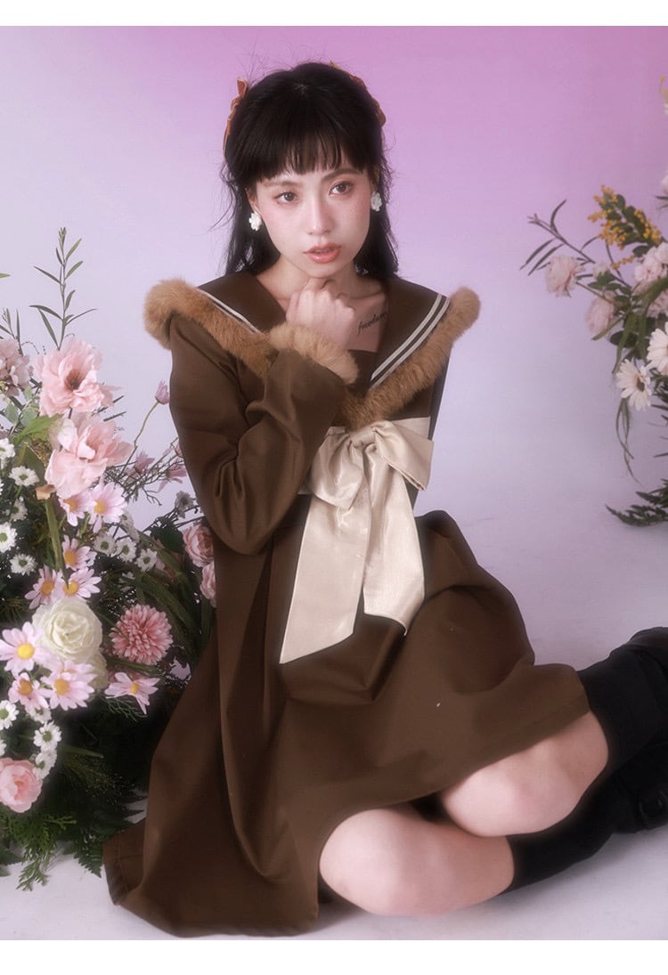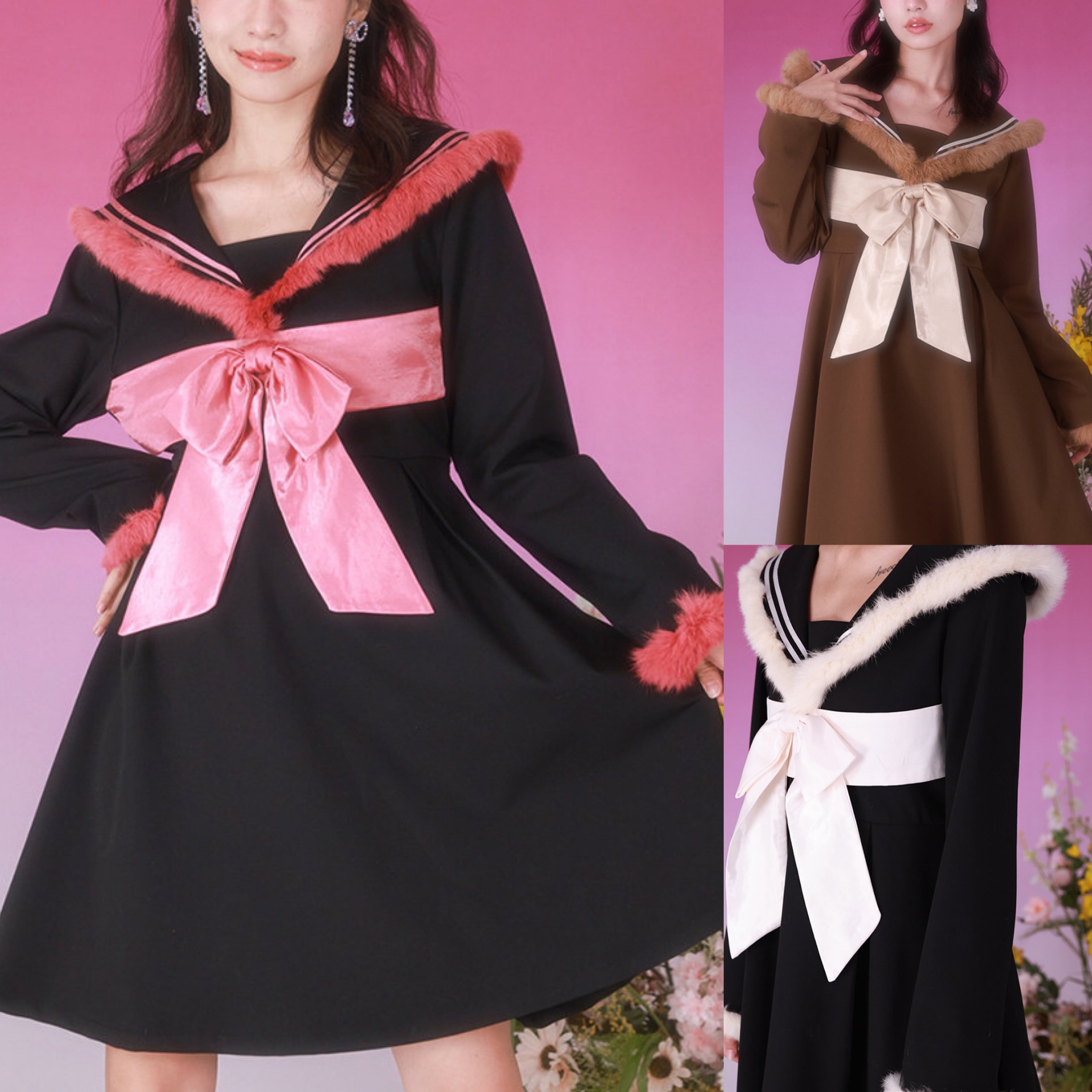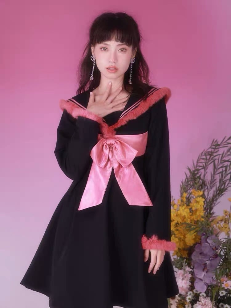 【今季のみの販売❣️】【3カラー】セーラー服 茶 ピンク リボン ワンピース ガーリー 制服 ジャケット ワンピース ピンク 黒 可愛い ガーリー 丸襟 コート【3カラー】