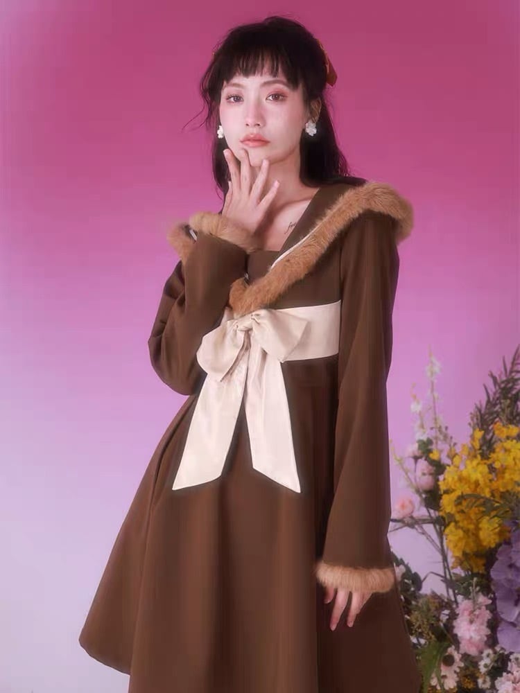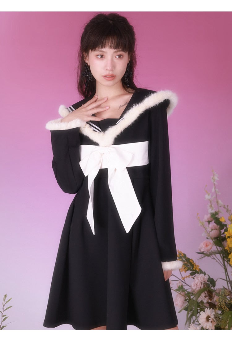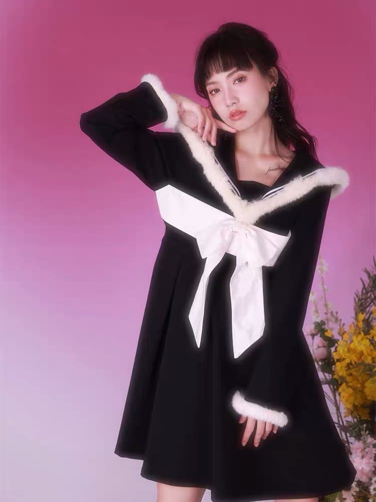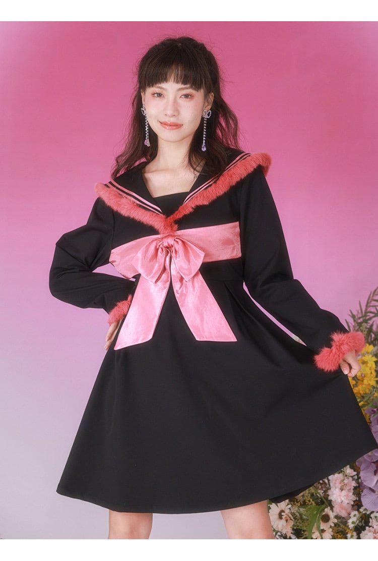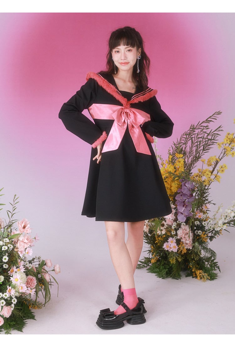 【今季のみの販売❣️】【3カラー】セーラー服 茶 ピンク リボン ワンピース ガーリー 制服 ジャケット ワンピース ピンク 黒 可愛い ガーリー 丸襟 コート【3カラー】