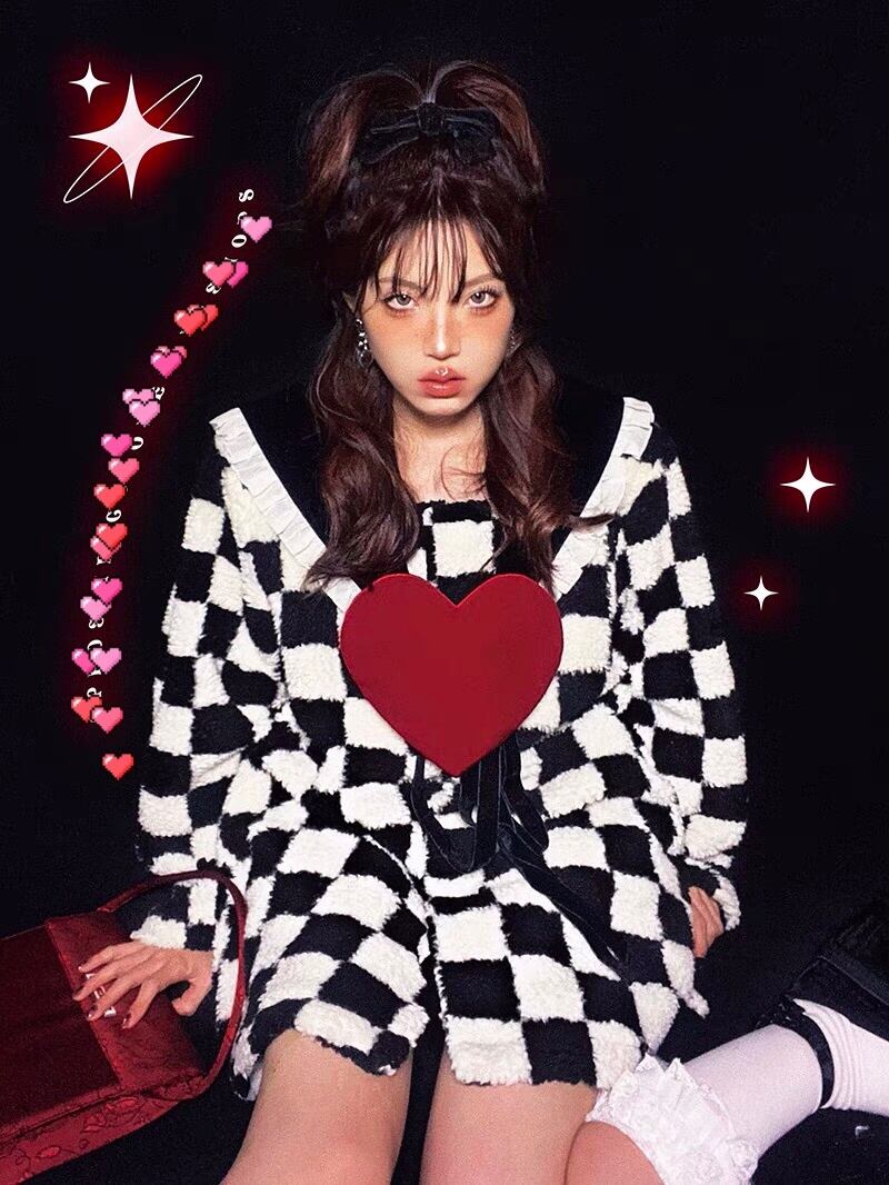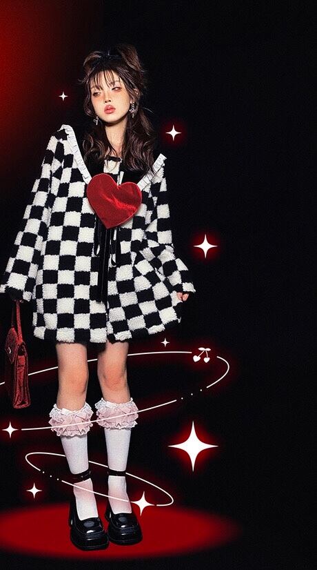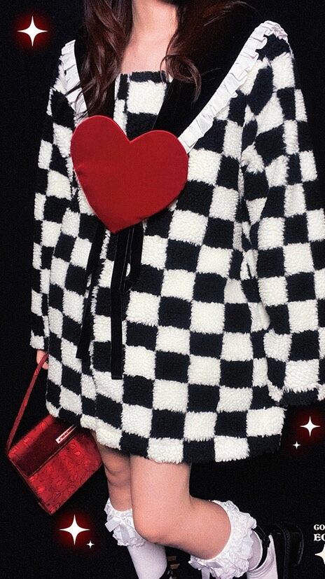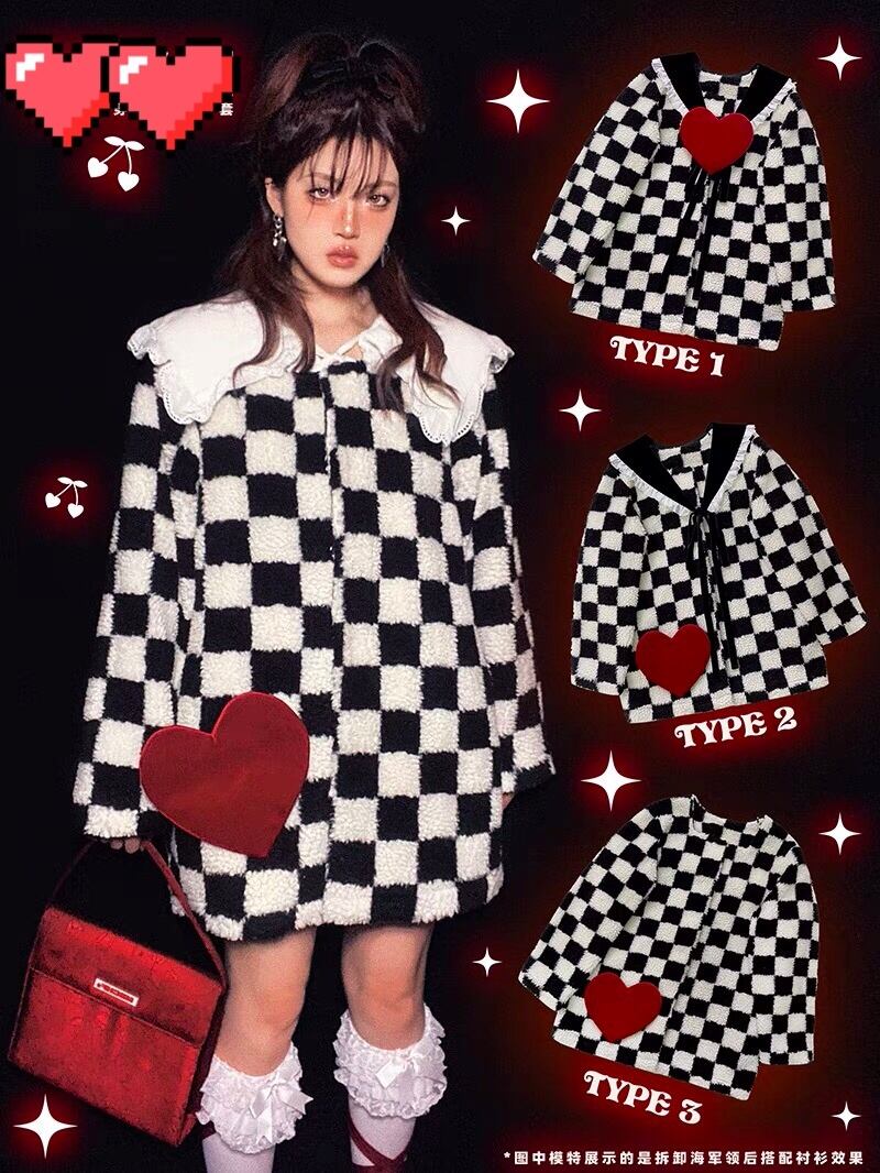 【ラスト1点のみ❣️】コート チェック ハート アウター ジャケット カーディガン ワンピース