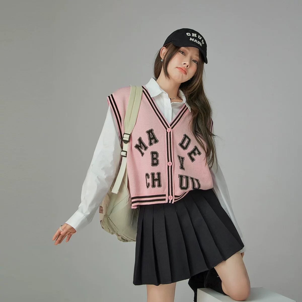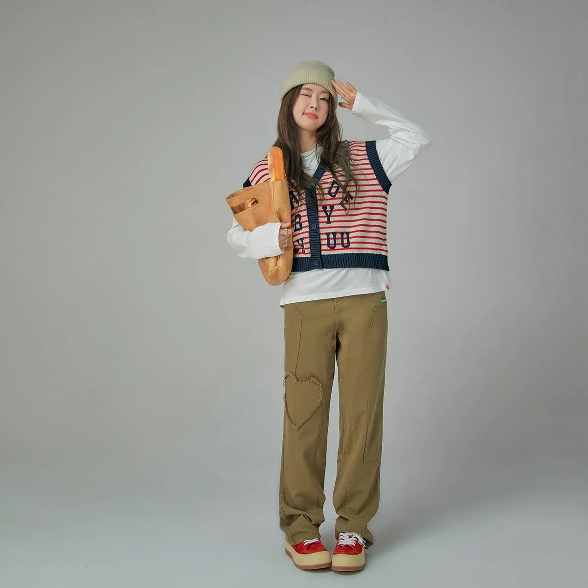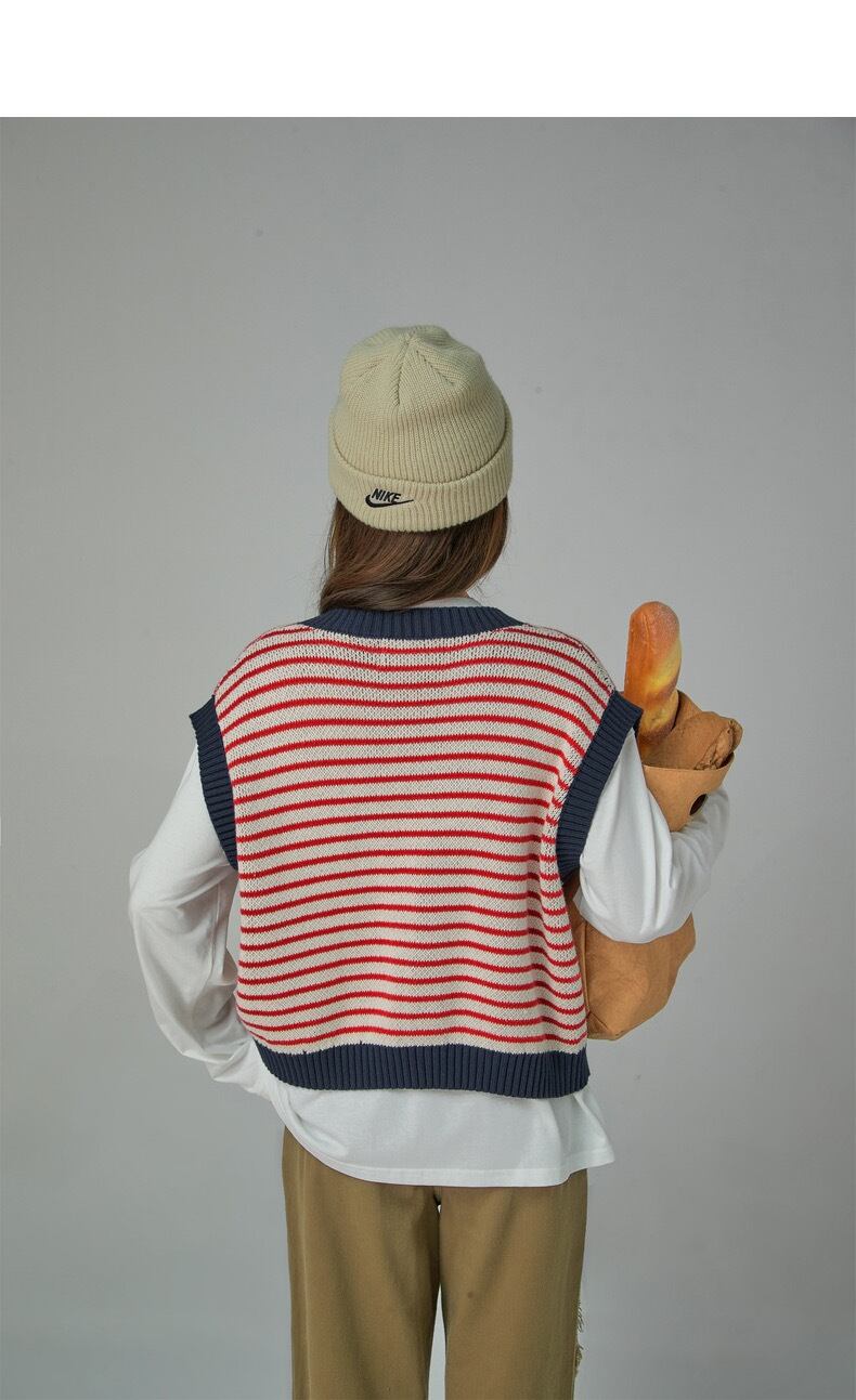 ベスト チェック ボーダー 赤 トップス カジュアル ピンク オフショルダー 茶色 カーディガン ブラウス トップス Y2K セーター Tシャツ キャミソール セーター ストリート カジュアル 原宿 渋谷 制服 スクール