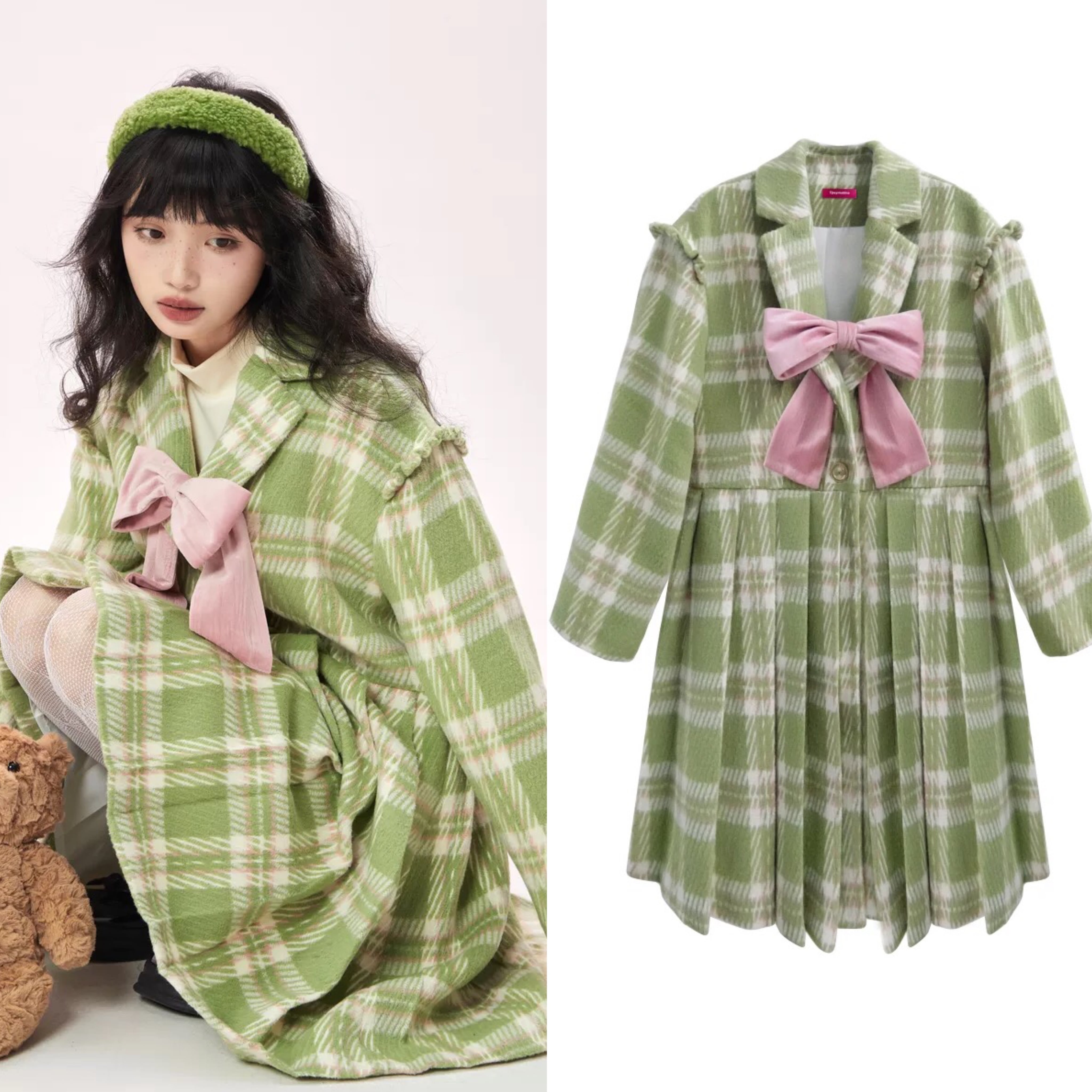 コート ピンク 緑 チェック ワンピース アウター ジャケット カーディガン 姫 可愛い ガーリー ピンク 原宿 ロリータ Y2K セクシー 渋谷 韓流 トップス Tシャツ ベージュ 赤 ピンク 姫 可愛い 原宿