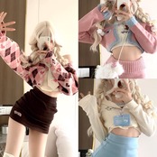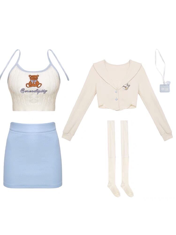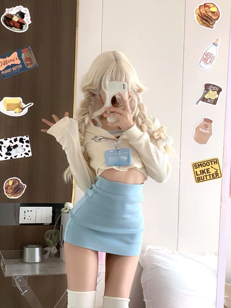 【水色set】Y 2K ロック 水色 原宿 スウェット 秋葉原 アニメ カーディガン ファー デコレーション ブラウス 紫 白 黒 ピンク セクシー 衣装 渋谷 トップス アウター ジャケット カーディガン トップス セーター ニット ニット ガーリー エレガント 姫 ダンス 衣装 アウター ジャケット コート ツイード ドレス キャミソール ゴージャス 姫 ロリータ 原宿 銀座 パーティー セレブ フリル リボン エレガント コスプレ ゴスロリ スカート ブラウス シャツ トップス