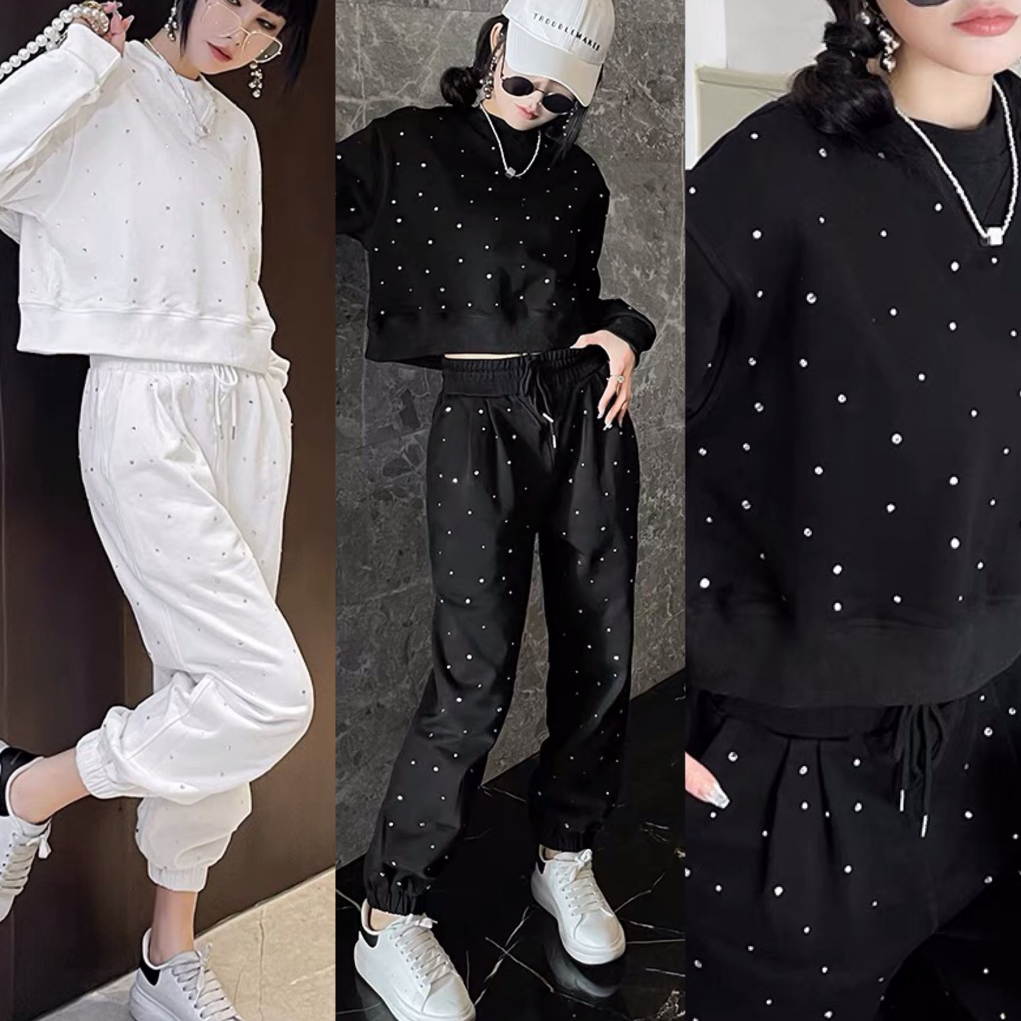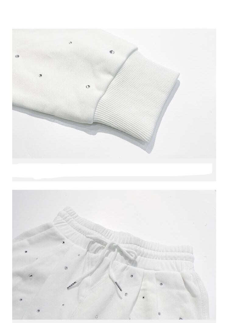 【セットアップ】スウェット 黒 ブラック ストリート 白 ラインストーン キラキラ パンツ パーカー トレーナー ルームウェア ジム カジュアル