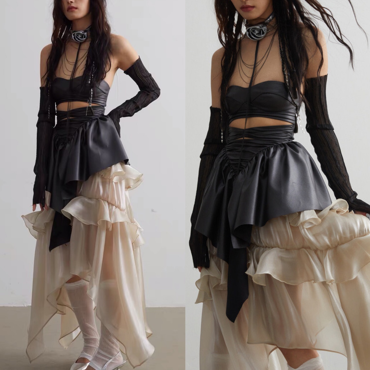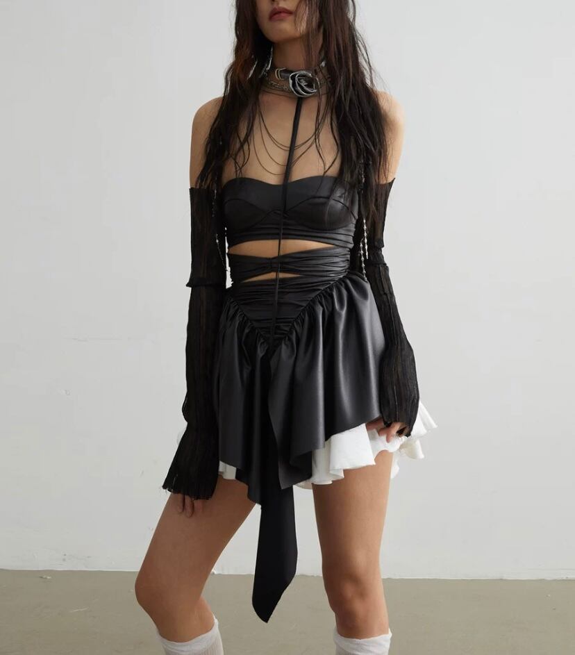 【スカート】レザー 黒 ブラック モード パーティー ドレス カーディガン トップス アウター ジャケット ワンピース ガーリー ピンク お嬢様 スーツ リボン ブラウス ガーリー エレガント 原宿 渋谷 ワンピース スカート レザー 革 ブラック