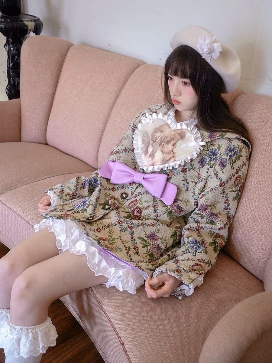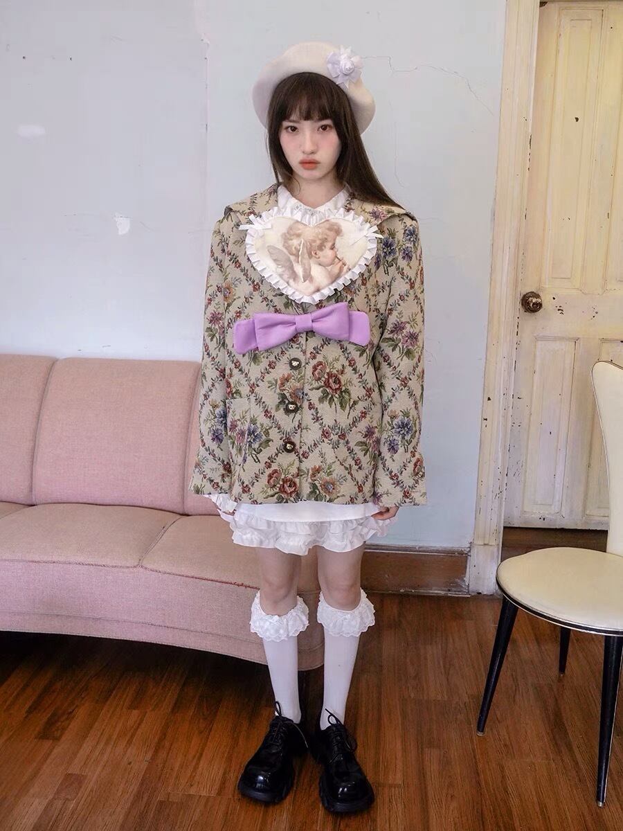 【白】ホワイト ハート 天使 猫 リボン 襟 ジャケット お嬢様 ベージュ 黒 フリル コート アウター ジャケット ブルゾン カーディガン ワンピース チェック ピンク ガーリー アウター リボン ガーリー 可愛い 原宿 渋谷 フード お嬢様 姫 エレガント ジャケット ジャンパー スーツ
