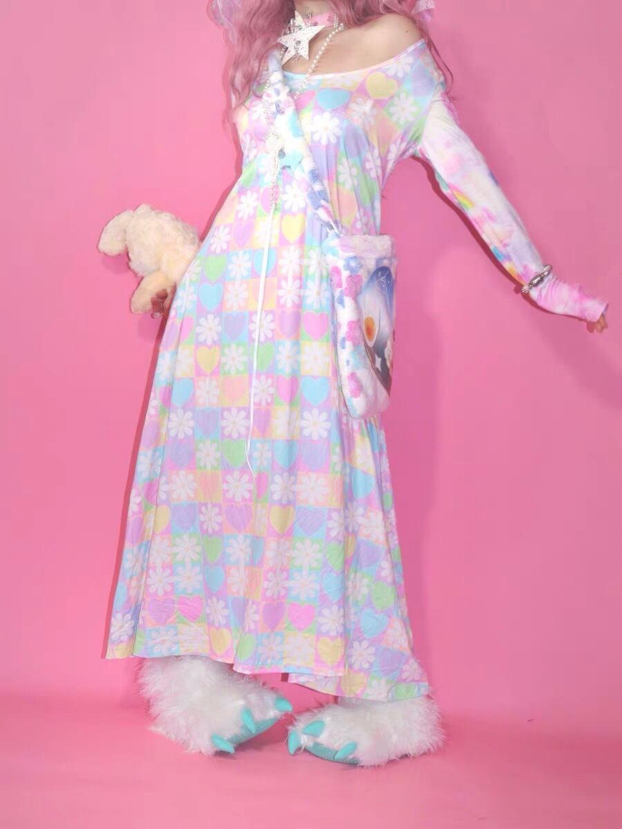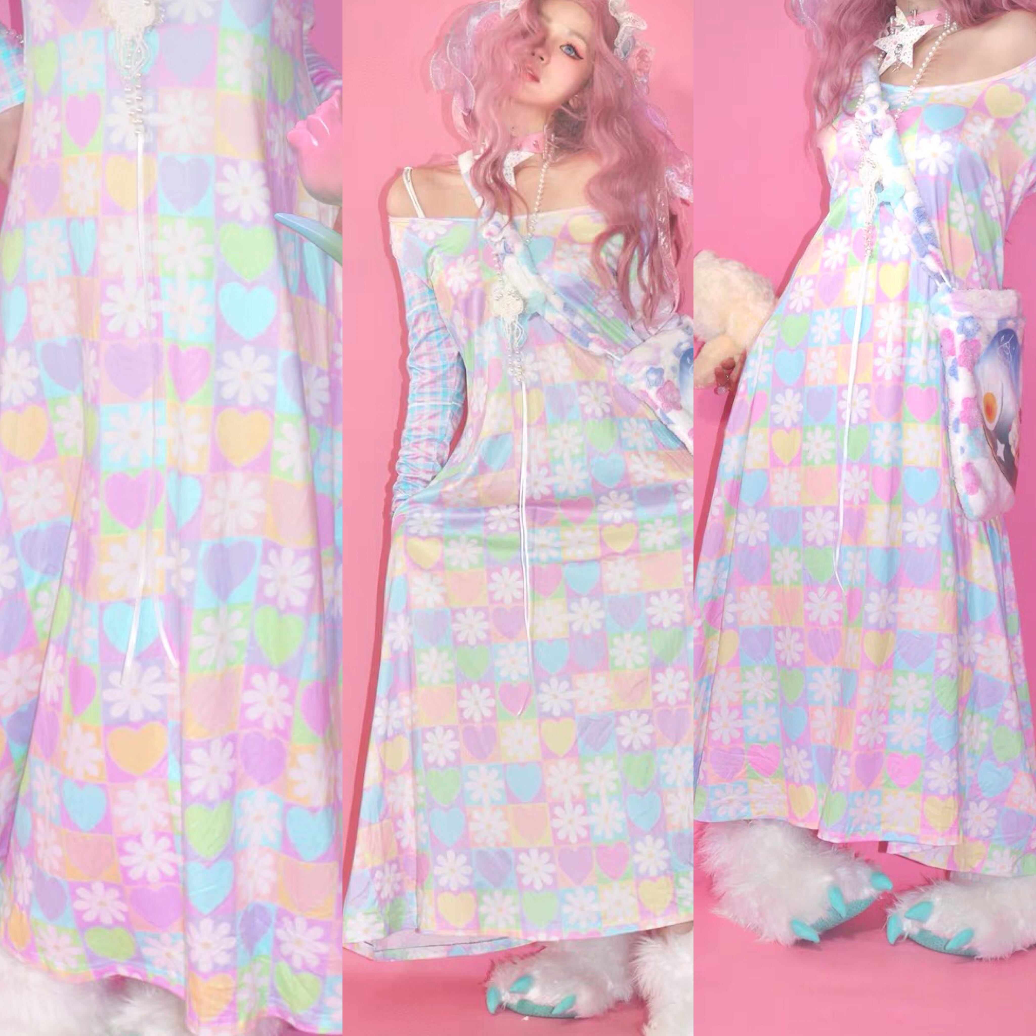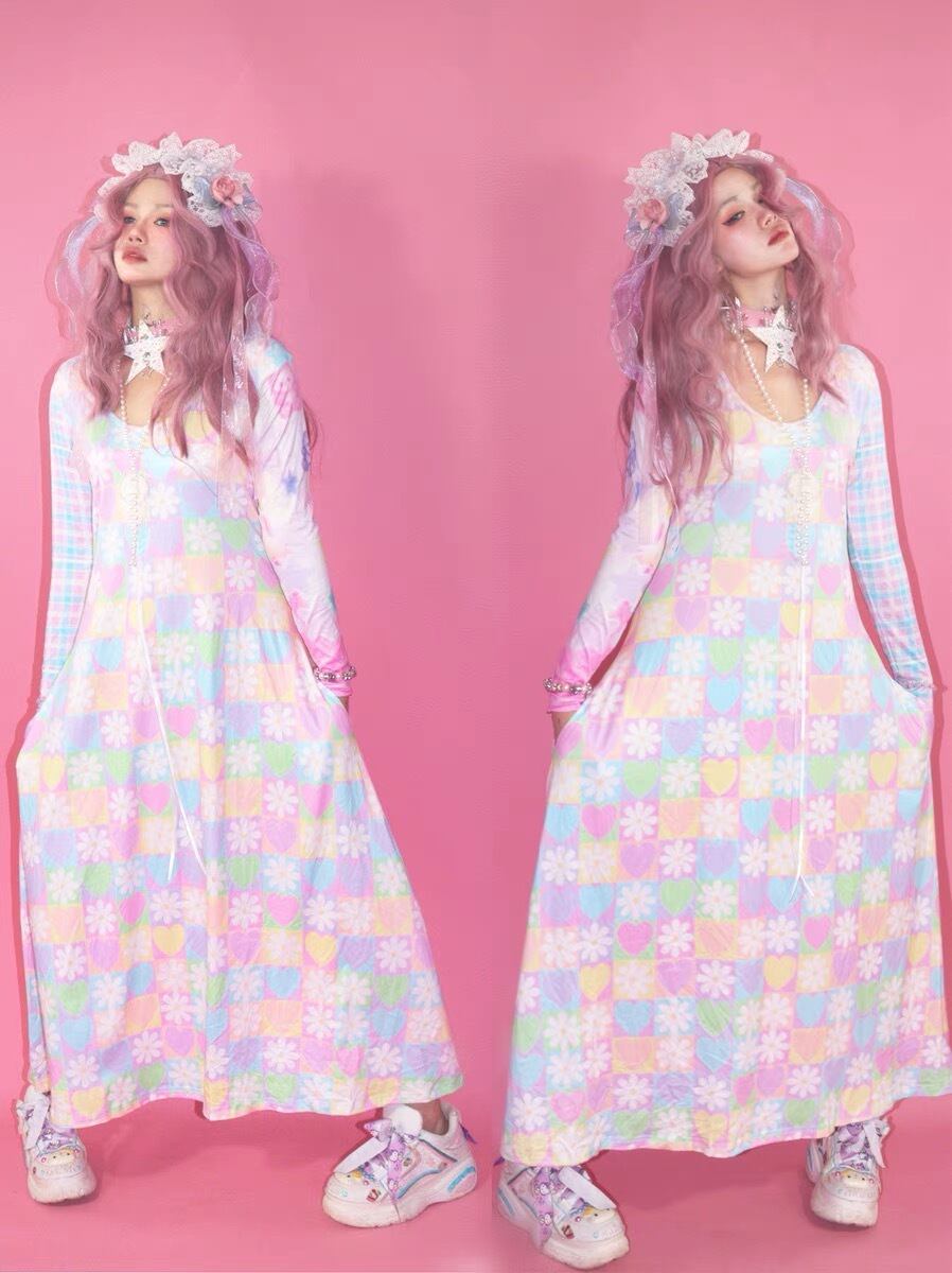 ワンピース カラフル パッチワーク マキシ 原宿 渋谷 可愛い パンツ ボトムス デニム ダメージ クラッシュ ストリート ヒップホップ 原宿 渋谷 ロック スウェット ストリート カジュアル ズボン パンツ スカート ゆったり