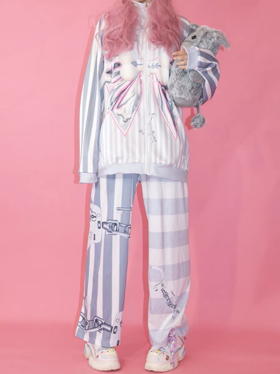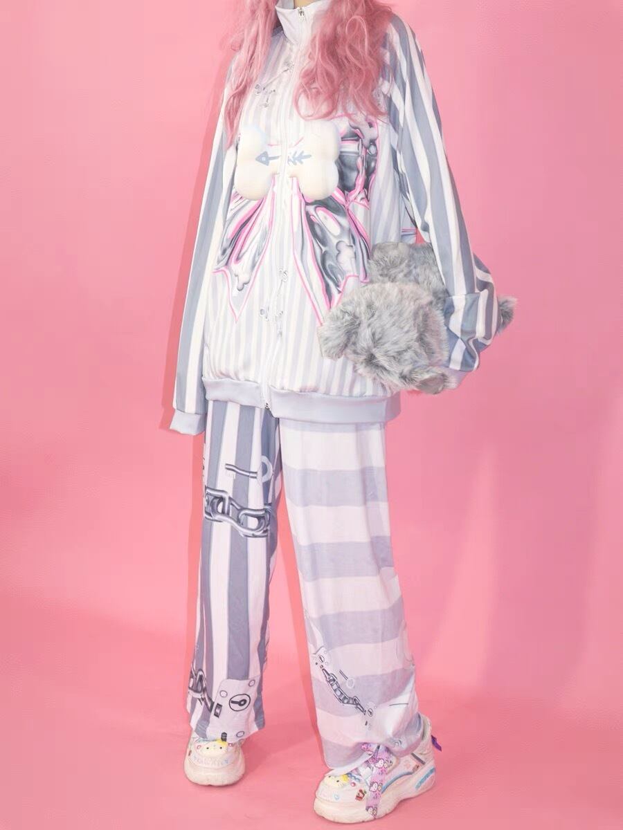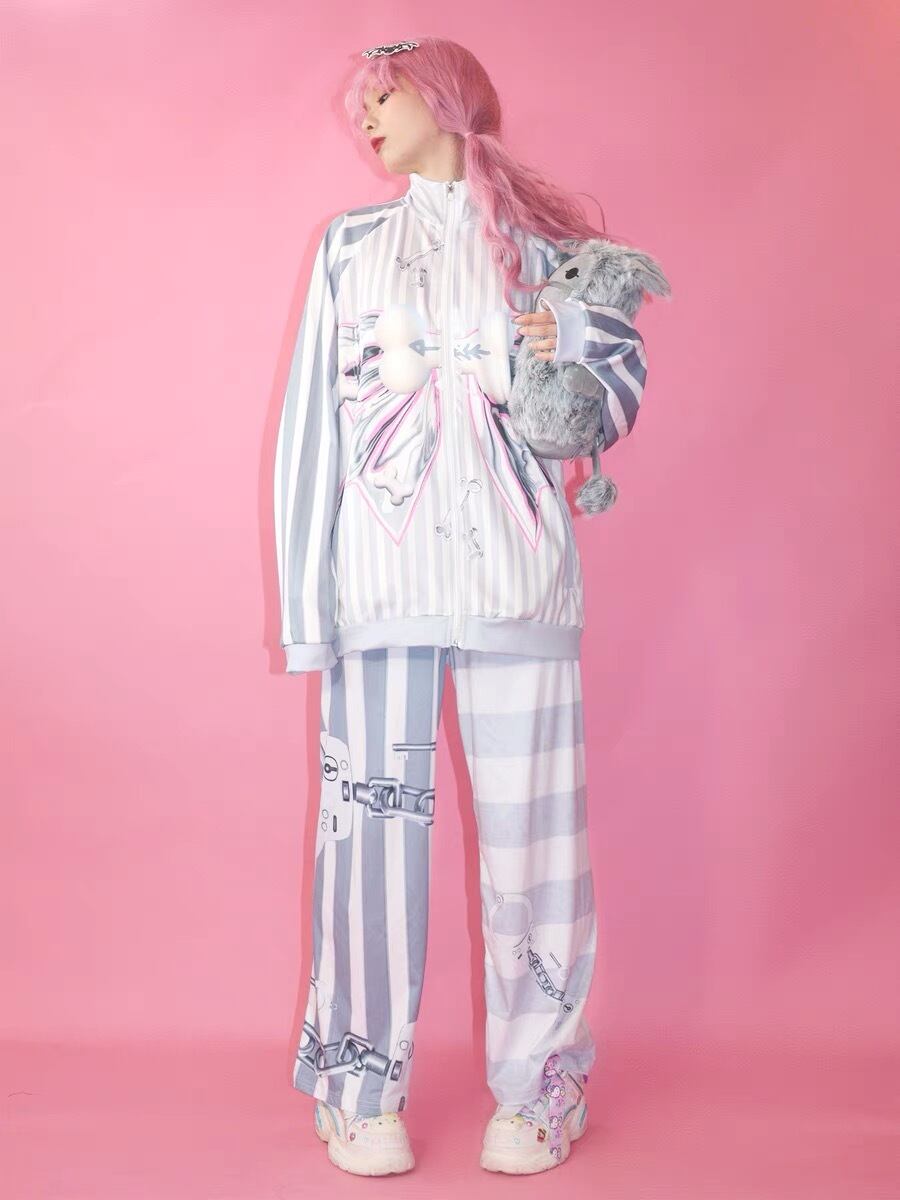 【ジャケット】グレー シルバー スウェット ジャージ コート アウター ジャケット ブルゾン カーディガン ワンピース チェック ピンク ガーリー アウター リボン ガーリー 可愛い 原宿 渋谷 フード お嬢様 姫 エレガント ジャケット ジャンパー