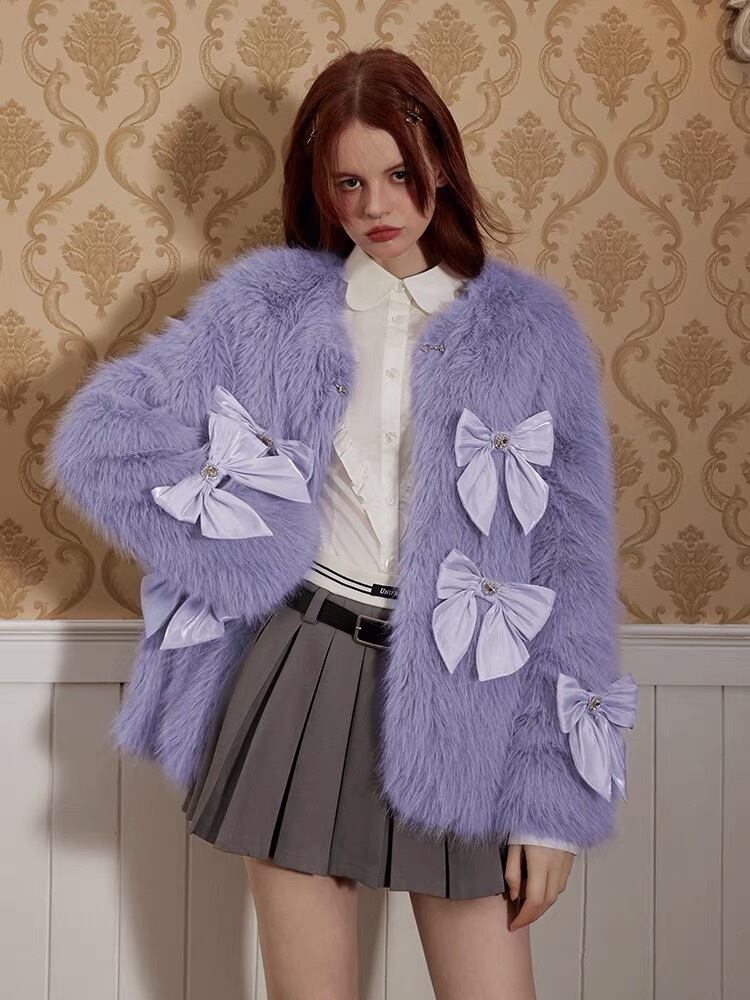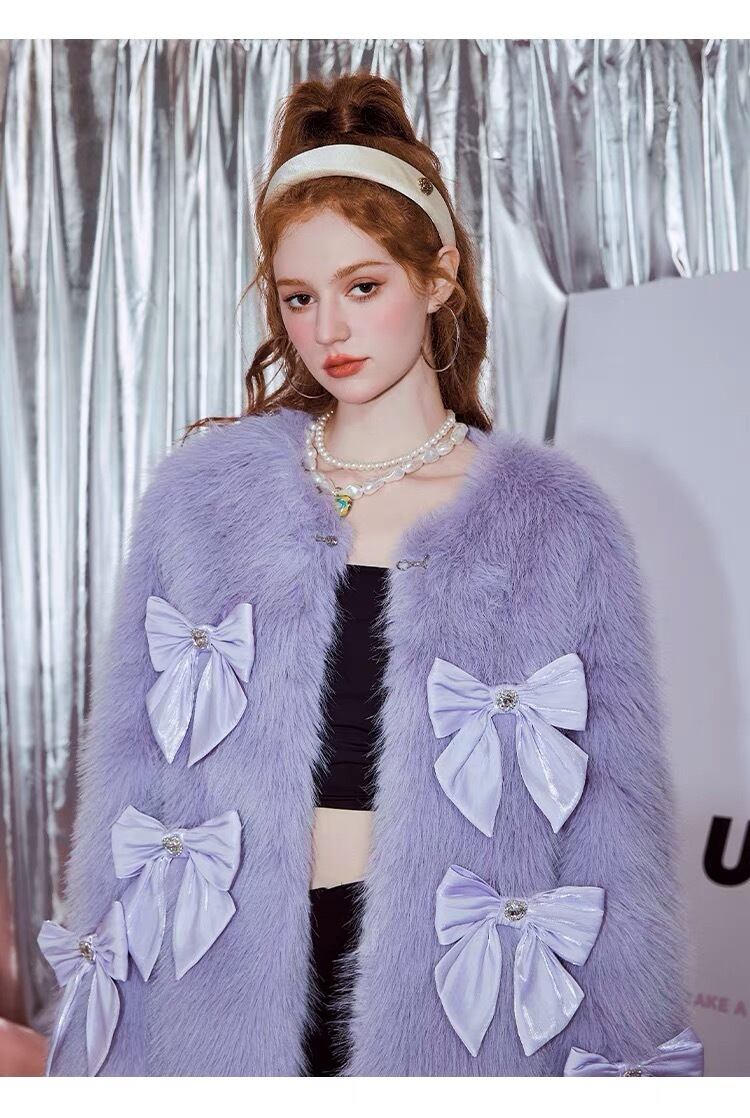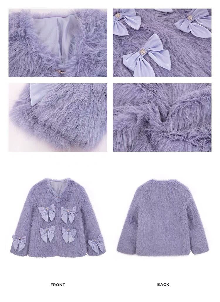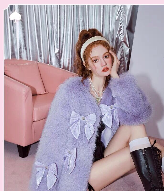 コート ファー 紫 リボン コート アウター ジャケット ブルゾン カーディガン ワンピース チェック ピンク ガーリー アウター リボン ガーリー 可愛い 原宿 渋谷 フード お嬢様 姫 エレガント ジャケット ジャンパー