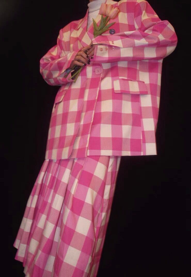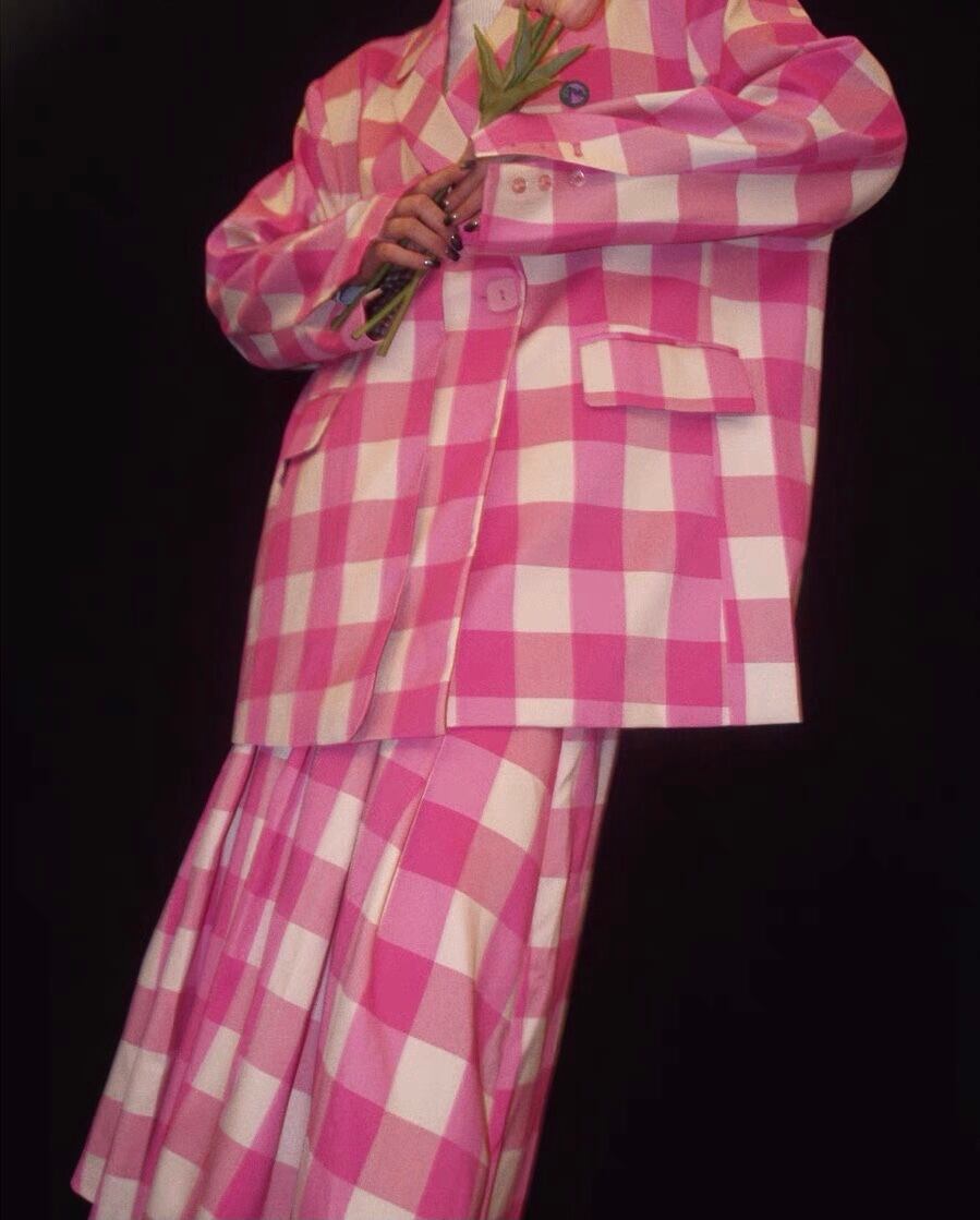【ジャケット】ゆったり ピンク チェック オーバーサイズ コート アウター ジャケット ブルゾン カーディガン ワンピース チェック ピンク ガーリー アウター リボン ガーリー 可愛い 原宿 渋谷 フード お嬢様 姫 エレガント ジャケット ジャンパー